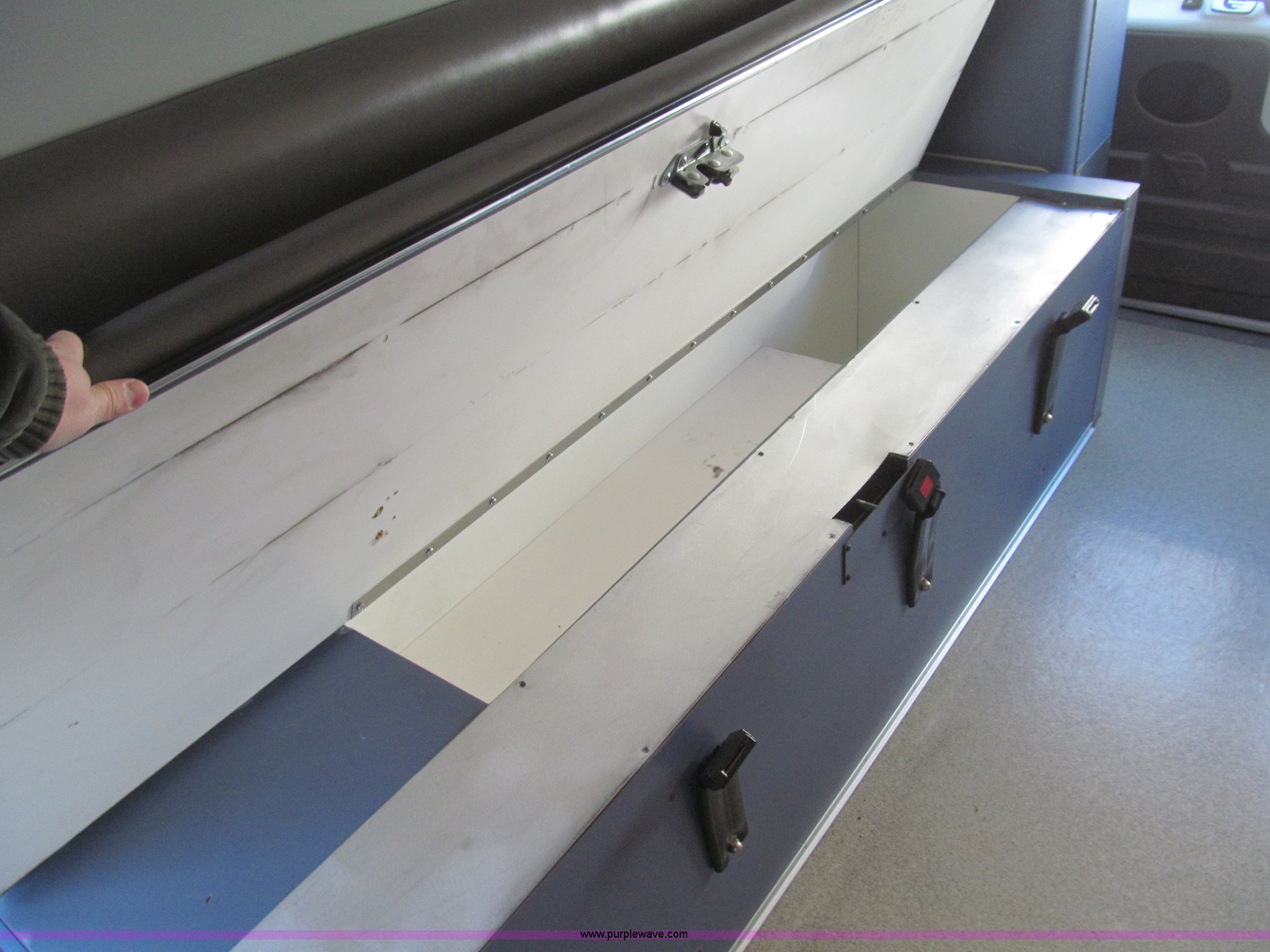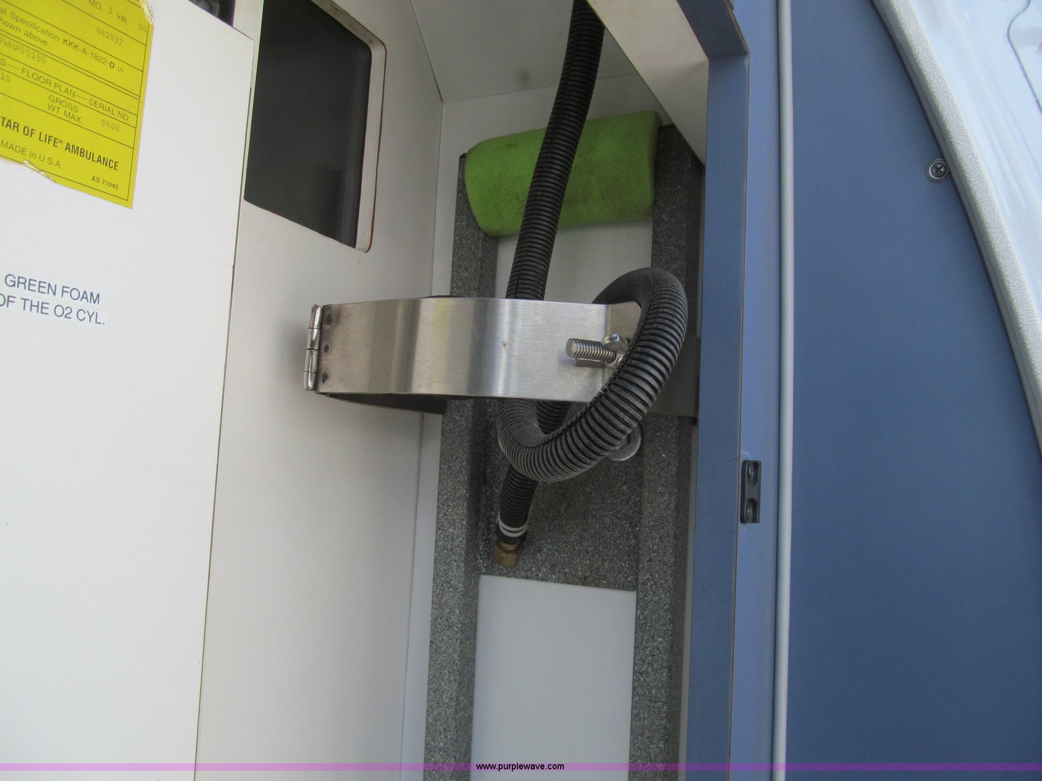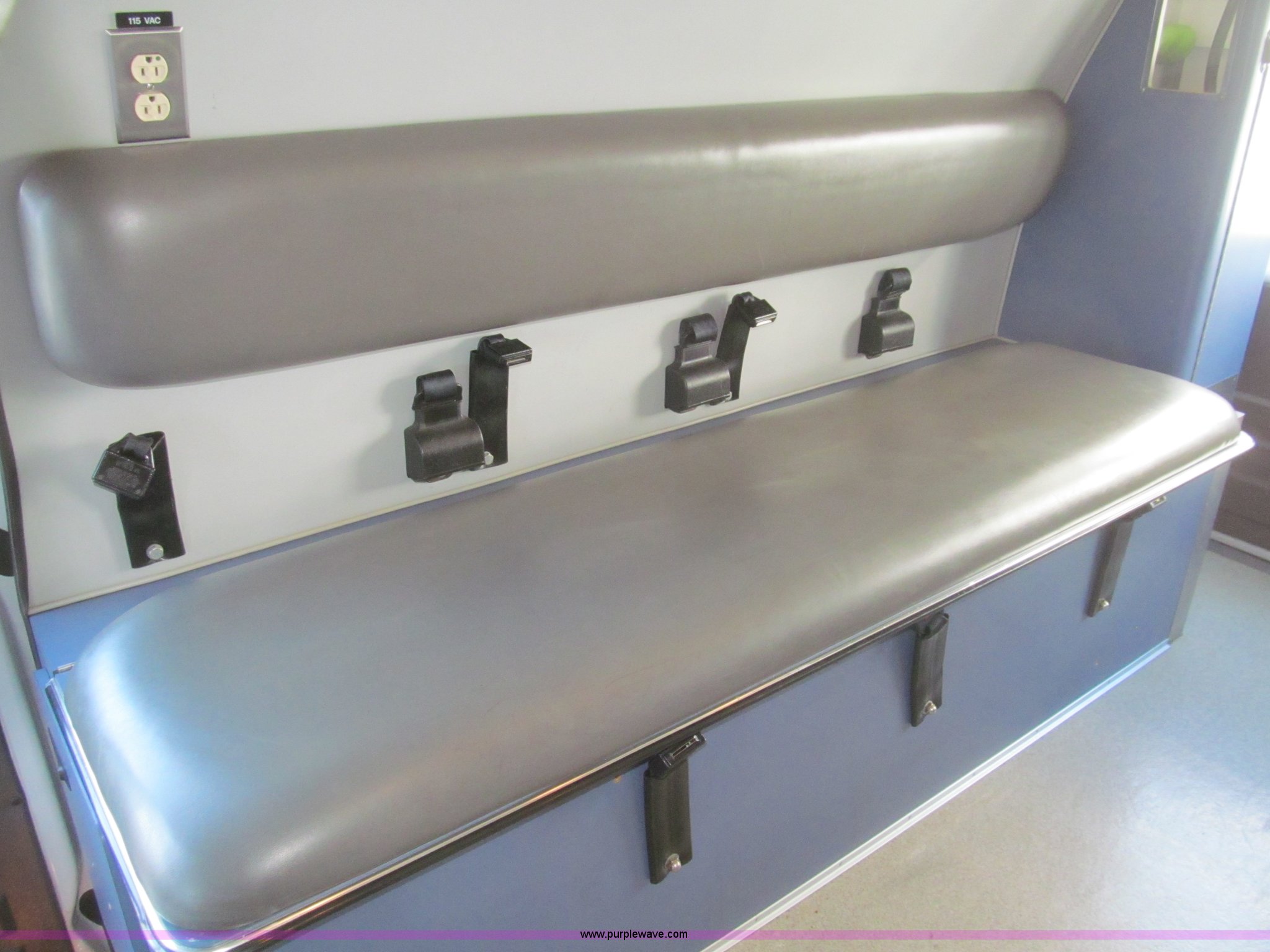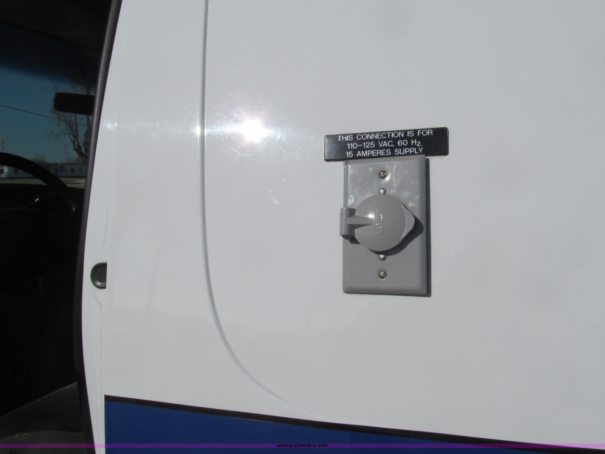 Purple Wave is selling a used Fire Truck or Emergency Vehicle in Kansas. This item is a 1998 Ford Econoline E350 Super ambulance with the following: 195,876 actual miles, 3,558 hours on meter, 7.3L V8 OHV 16V turbo diesel engine, Automatic transmission, AC and heat, Tilt, Cruise, AM/FM/cassette, Power windows and locks, Cloth interior, Whelen PA system, Light bar control panel, Oxygen hookups, Heat, vent, volume, and auxiliary controls, 12 VOC and 115 VAC outlets, Internal storage, 245/75R16 tires, Injectors replaced in 2013, Serviced every 100 to 200 hours