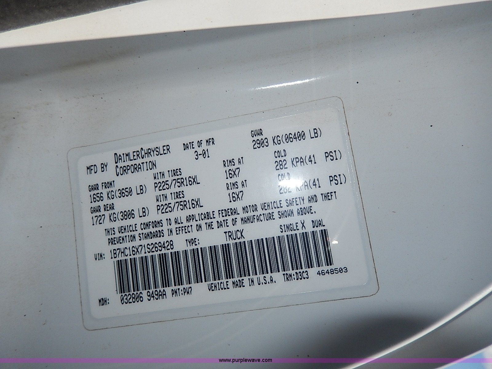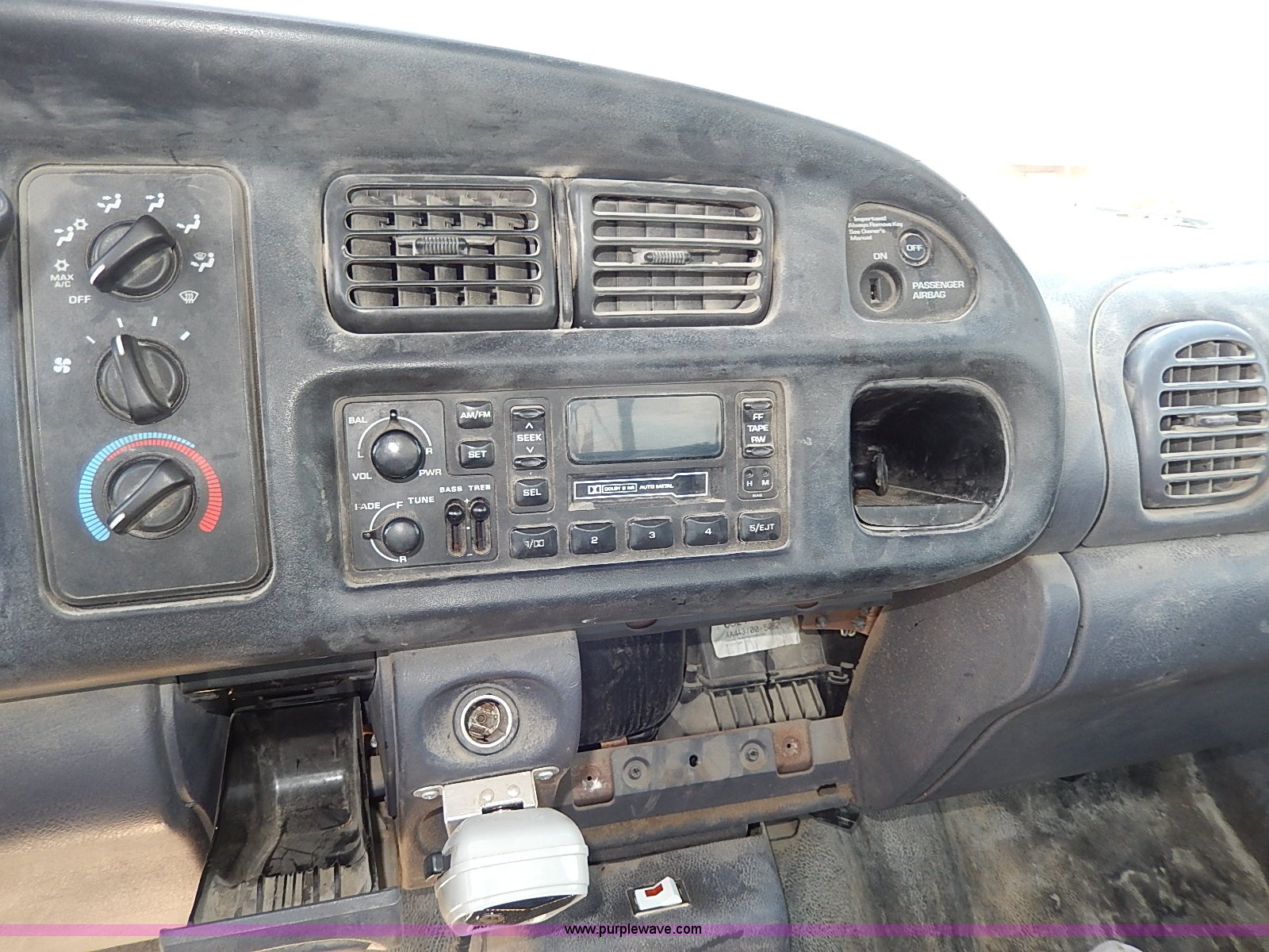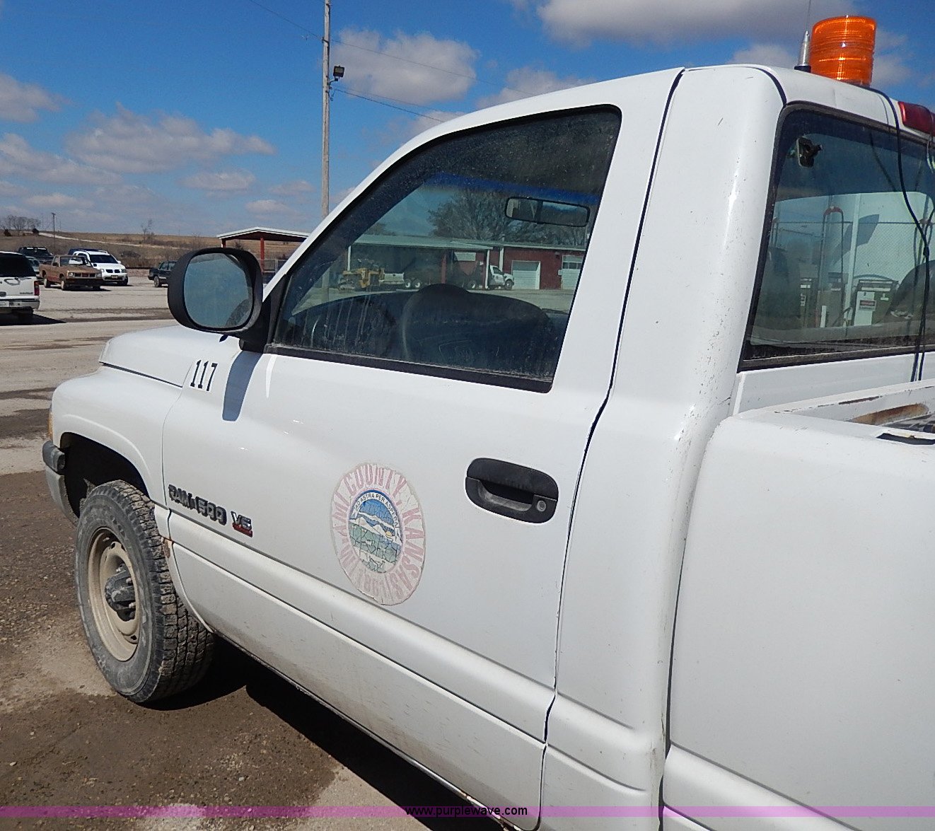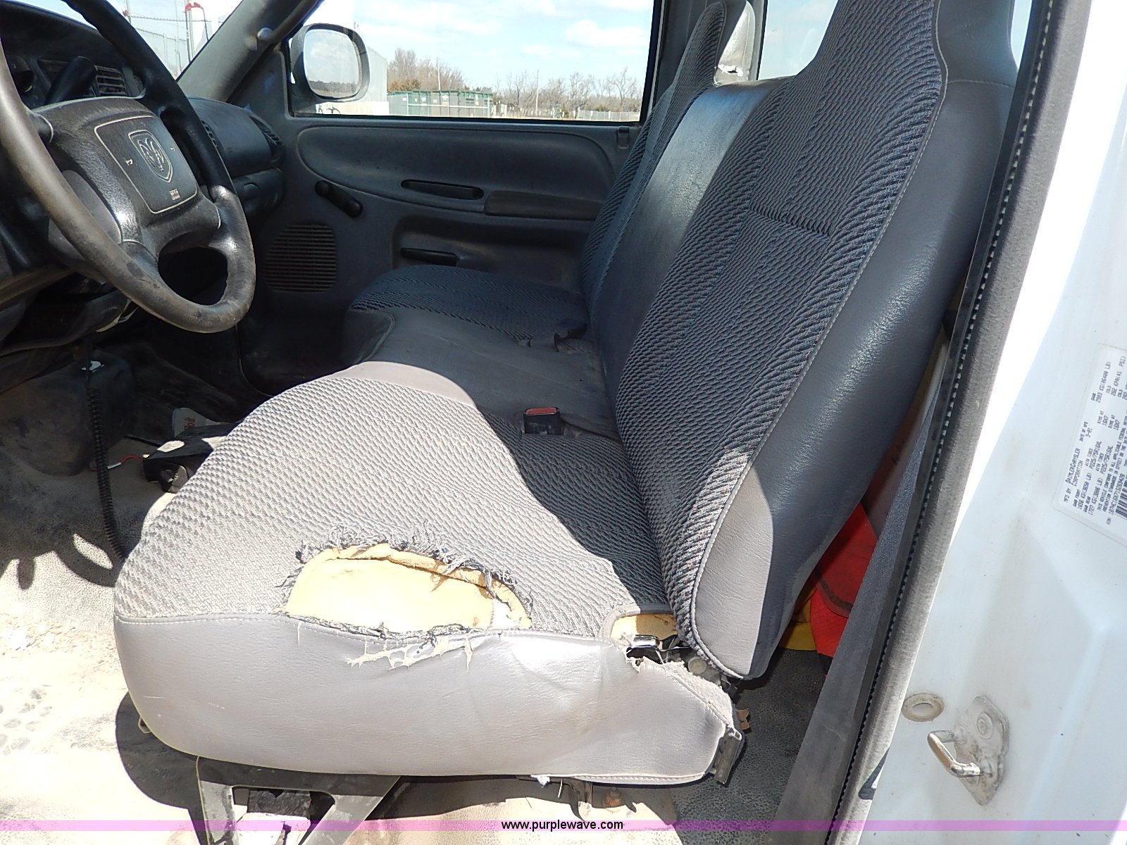 Purple Wave is selling a used 1/2 Ton Pickup or Van in Kansas. This item is a 2001 Dodge Ram 1500 pickup truck with the following: 142,225 miles on odometer, 3.9L V6 OHV 12V gas engine, Automatic transmission, Heat, Manual windows and locks, Cloth interior, 225/75R16 tires, Interior/exterior cosmetic damage, Decals will be removed, Lights, CB radio, and bed contents not included, Toolbox not included, Body rust, Dents and scratches, Damage to front bumper, Stereo missing, Dash damaged, Engine light on, Unit# 117