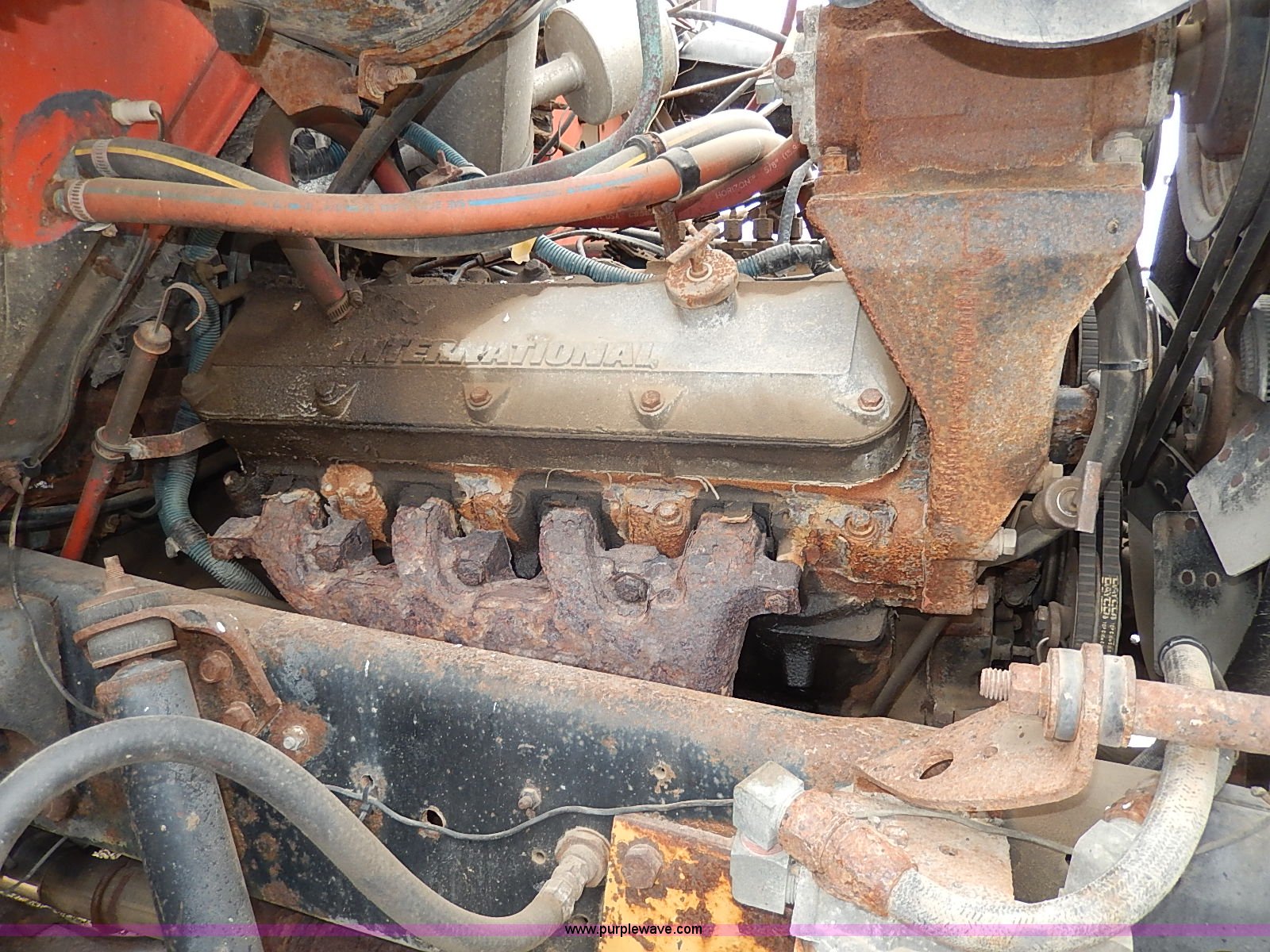 Purple Wave is selling a used Construction Dump Truck in Kansas. This item is a 1985 International S1754 dump truck with the following: 144,398 miles on odometer, 9,242 hours on meter, International 9.0L diesel engine, Automatic transmission, Heat, Vinyl interior, Front work lights, Block heater, 8' x 8' dump bed, Model 9HD, Manual end gate, Serial 905084, Mounts for front snow plow, Rear hookup for spreader, Toolbox, Pin hitch, 53 gallon fuel tank, Trailer wiring, PTO, Spring suspension, Air brakes, 10.00R20 tires, GVWR 28,000 lbs, FAWR 9,000 lbs, RAWR 19,000 lbs, Interior/exterior cosmetic damage, Chipped windshield, Body rust, Unit# 72