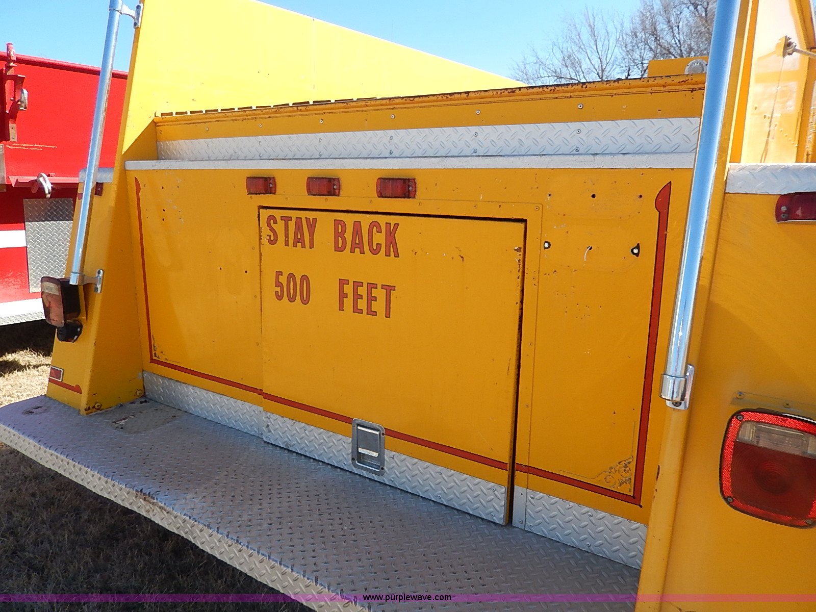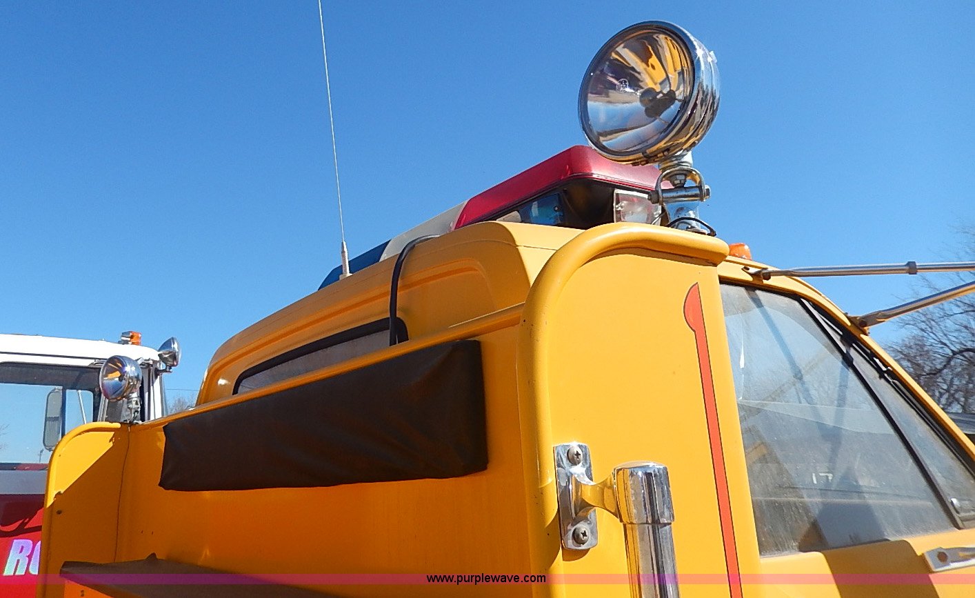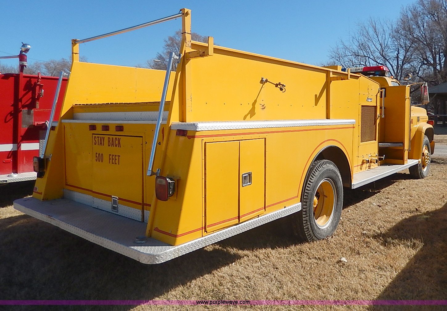 Purple Wave is selling a used Fire Truck or Emergency Vehicle in Kansas. This item is a 1973 Chevrolet C60 fire truck with the following: 1,732 miles on odometer, 350cid V8 gas engine, Five speed manual transmission, Two speed rear end, Heat, Manual windows and locks, Vinyl interior, Luverne intake and discharge hookup, Ford 302 C.I.D. V8 gas pump engine, Light bar, Exterior work lights, Storage compartments, 9.00-20 tires, GVWR 24,000 lbs, FAWR 7,000 lbs, RAWR 17,000 lbs