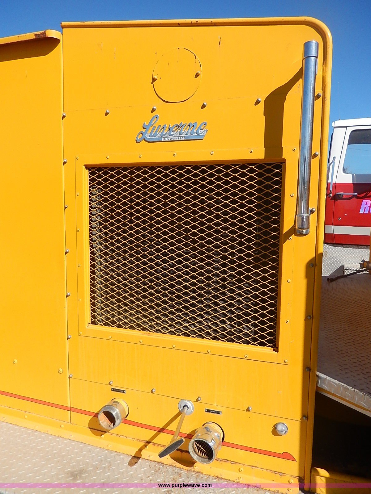 1973 Chevrolet C60 fire truck. 1,732 miles on odometer, 350cid V8 gas engine, Five speed manual transmission, Two speed rear end, Heat, Manual windows and locks, Vinyl interior, Luverne intake and discharge hookup, Ford 302 C.I.D. V8 gas pump engine, Light bar, Exterior work lights, Storage compartments, 9.00-20 tires, GVWR 24,000 lbs, FAWR 7,000 lbs, RAWR 17,000 lbs. CCE623V172669. Richmond, KS 66080