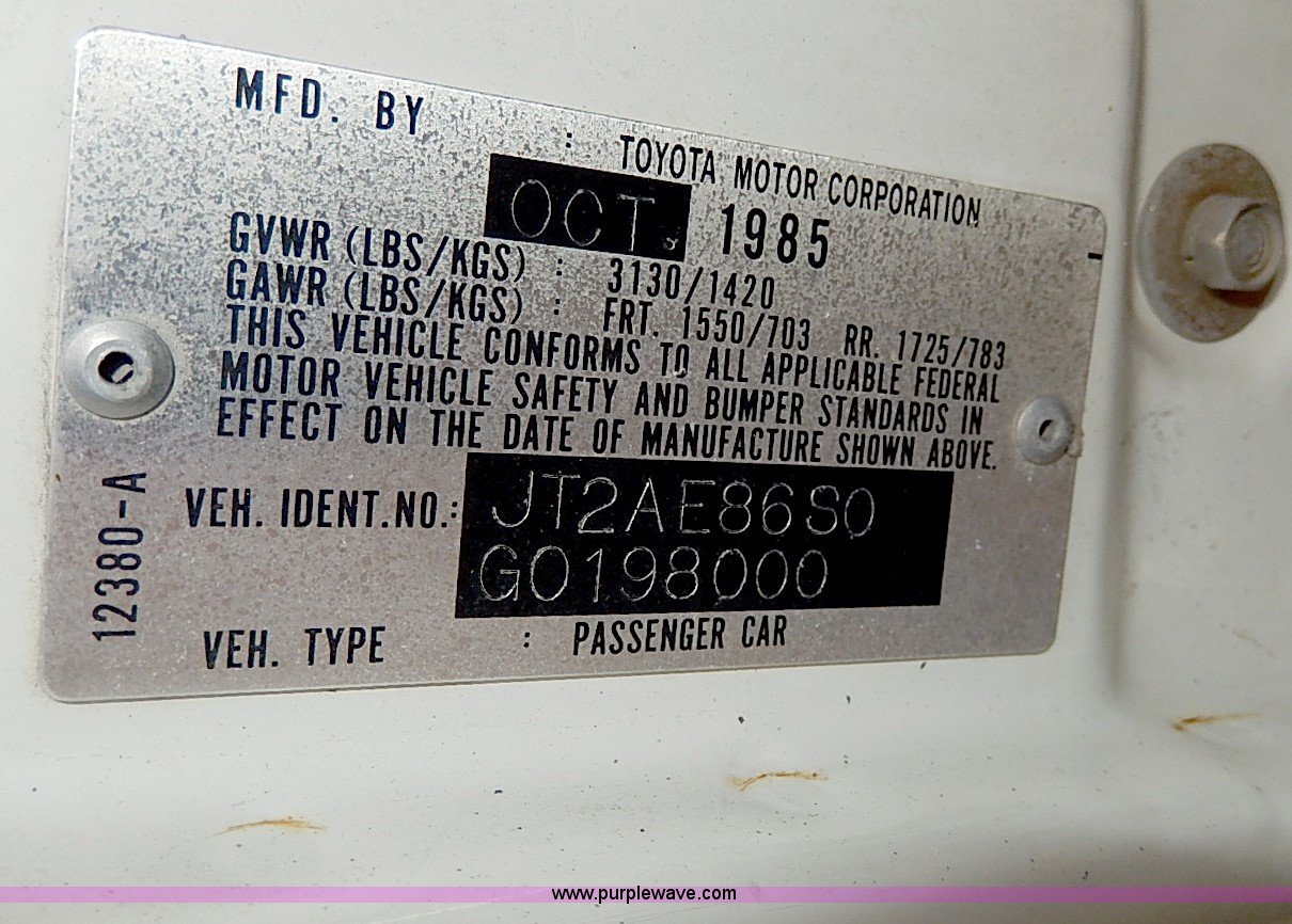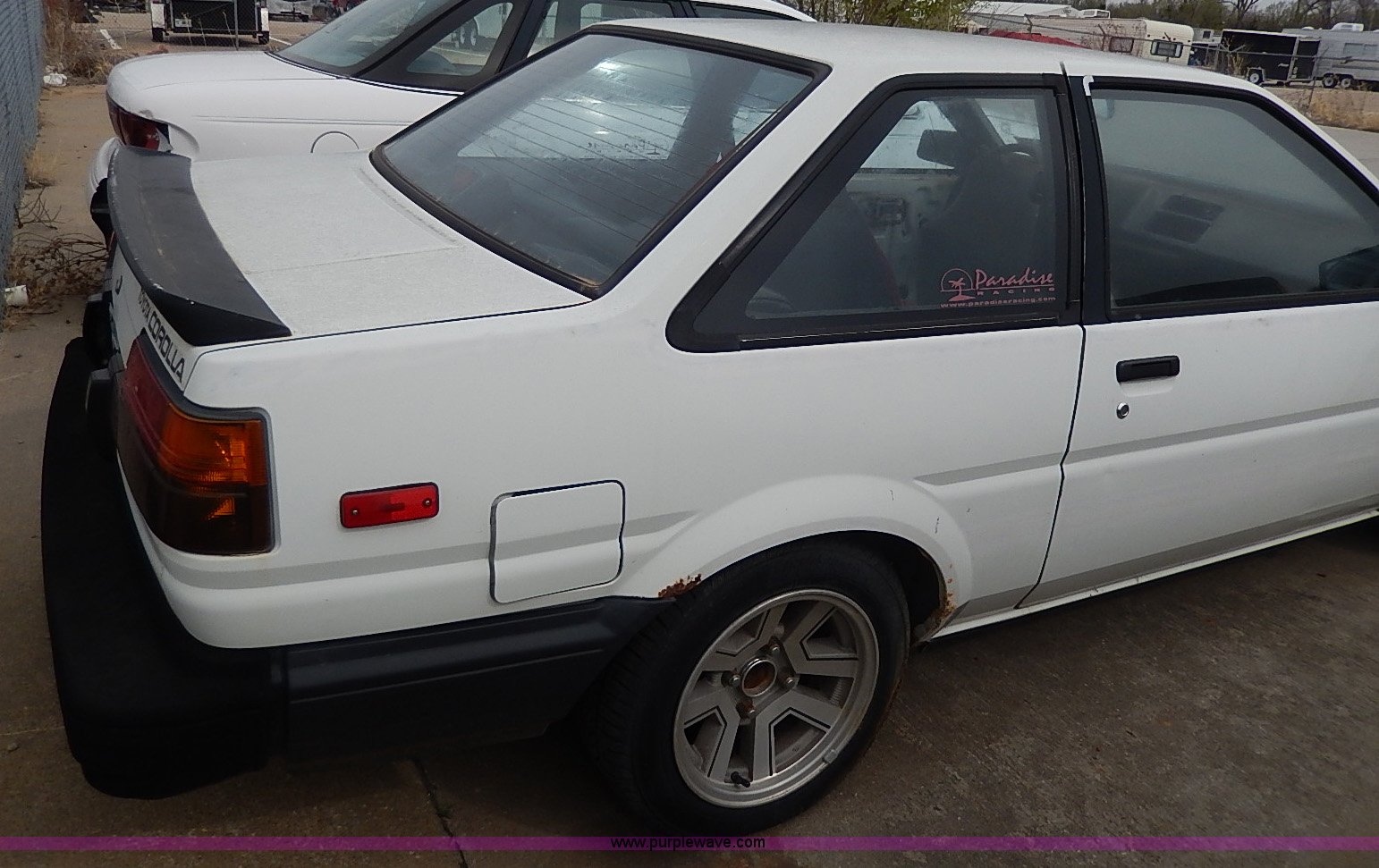 Purple Wave is selling a used Wrecked and Abandoned in Kansas. This item is a 1986 Toyota Corolla with the following: 159,121 miles on odometer, Five speed transmission, Manual windows and locks, Cloth interior, 185/60R14 tires, No keys, No battery, Interior/exterior cosmetic damage, Unknown running condition, Unit# 9000