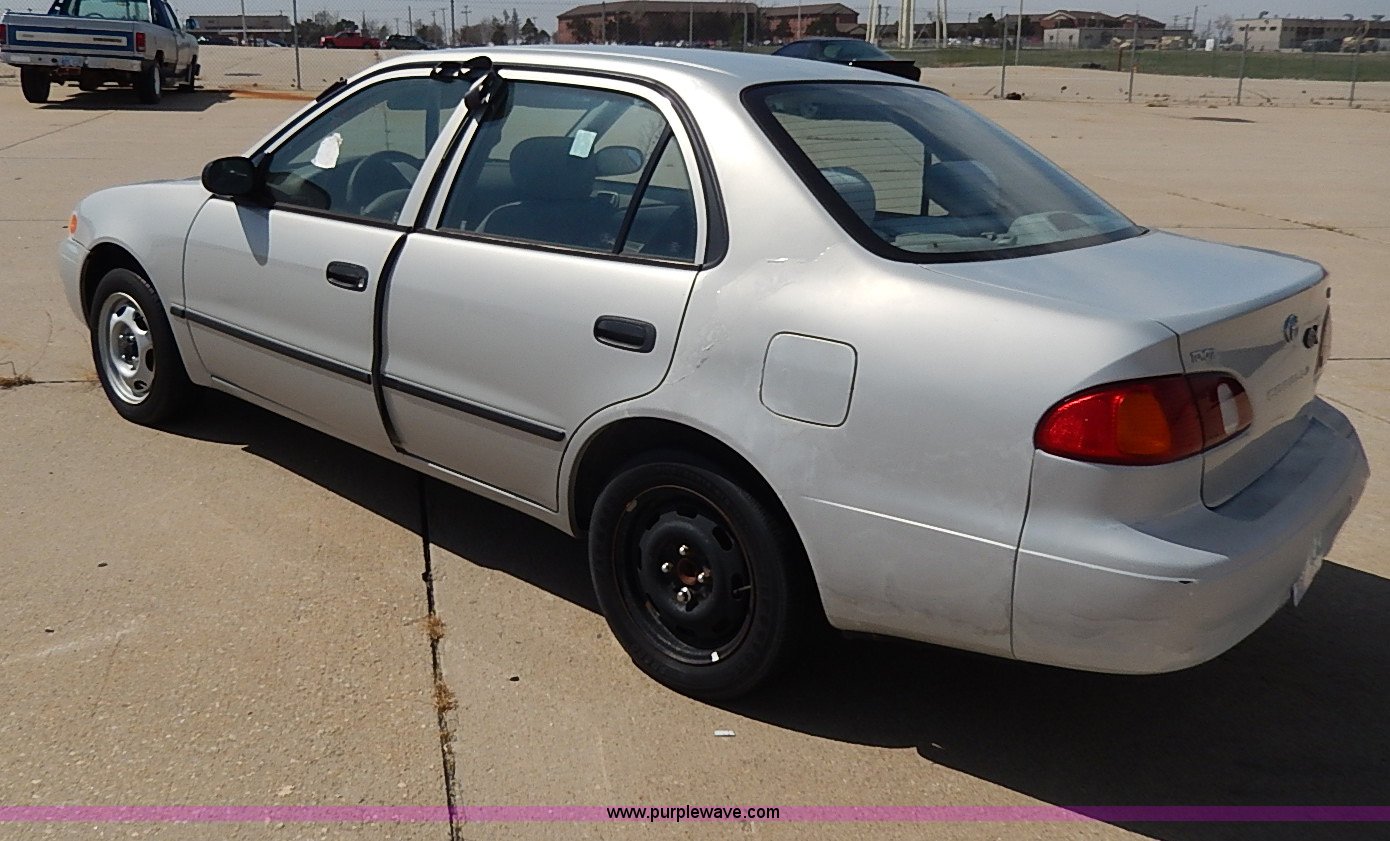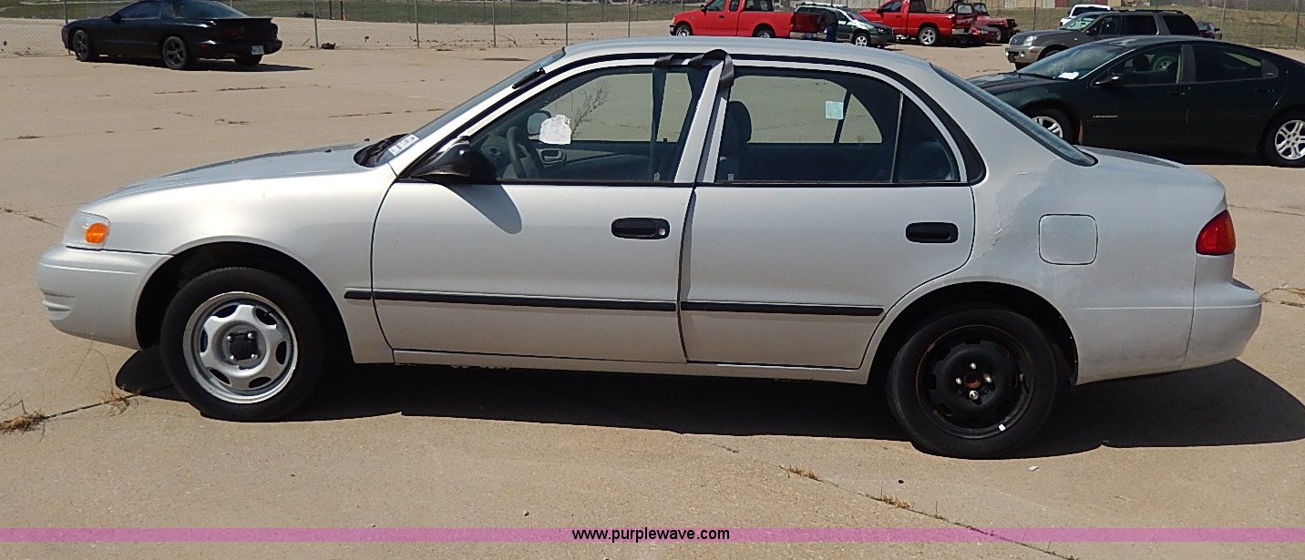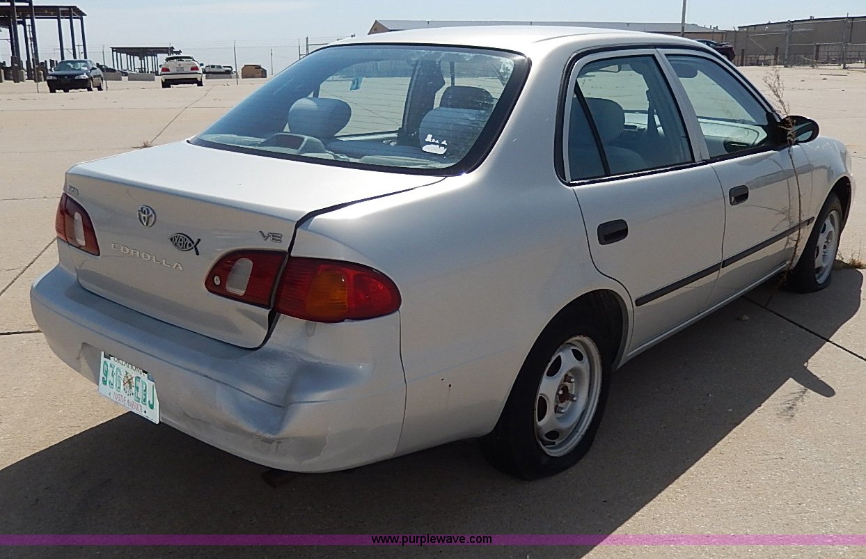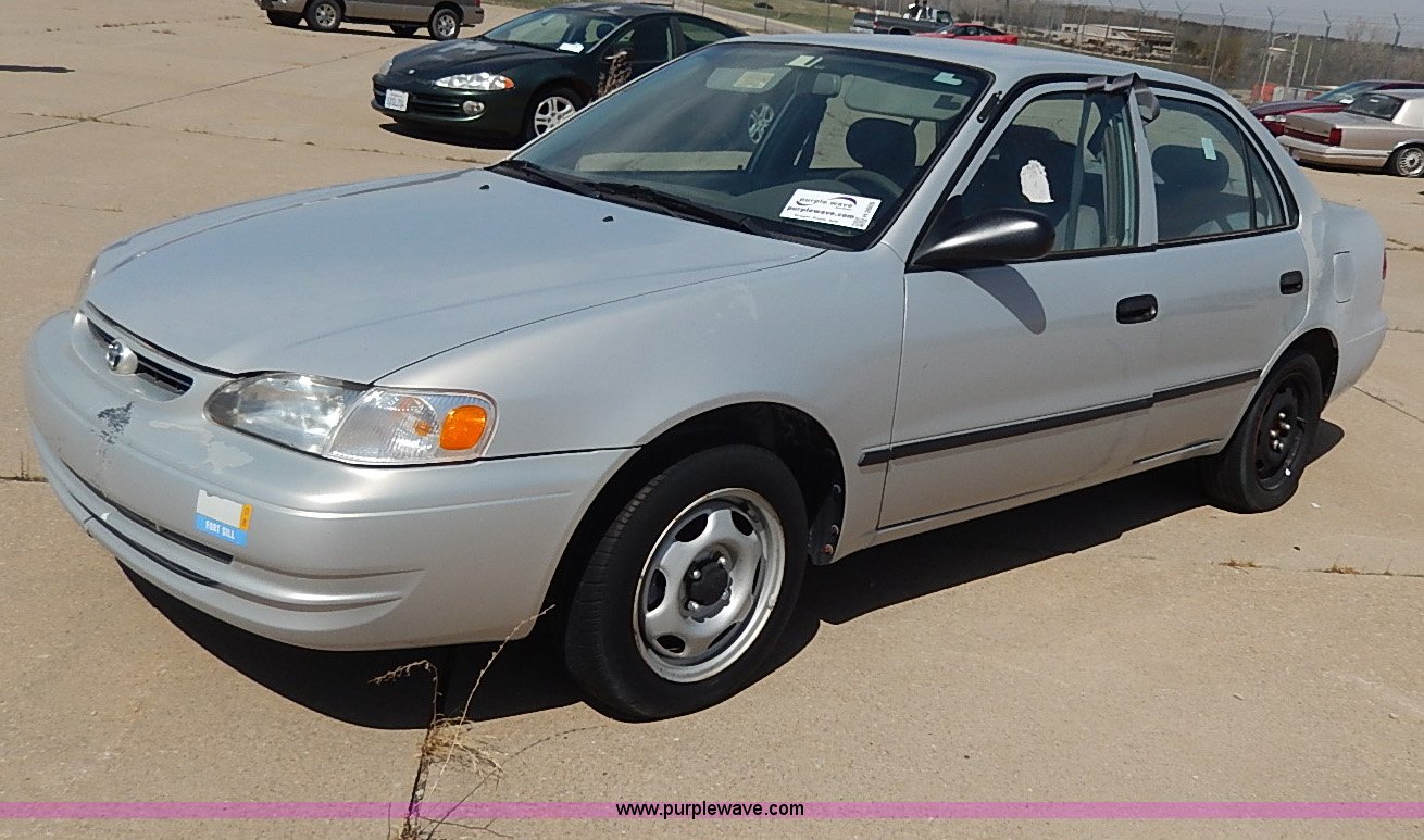 Purple Wave is selling a used Wrecked and Abandoned in Kansas. This item is a 2000 Toyota Corolla VE with the following: Unknown miles on odometer, 1.8L L4 DOHC 16V gas engine, Automatic transmission, AC and heat, AM/FM/Cassette, Manual windows and locks, Cloth interior, 175/65R14 tires, No keys, Driver door handle and latch are broken, Interior/exterior cosmetic damage, Unknown running condition, Unit# 99995