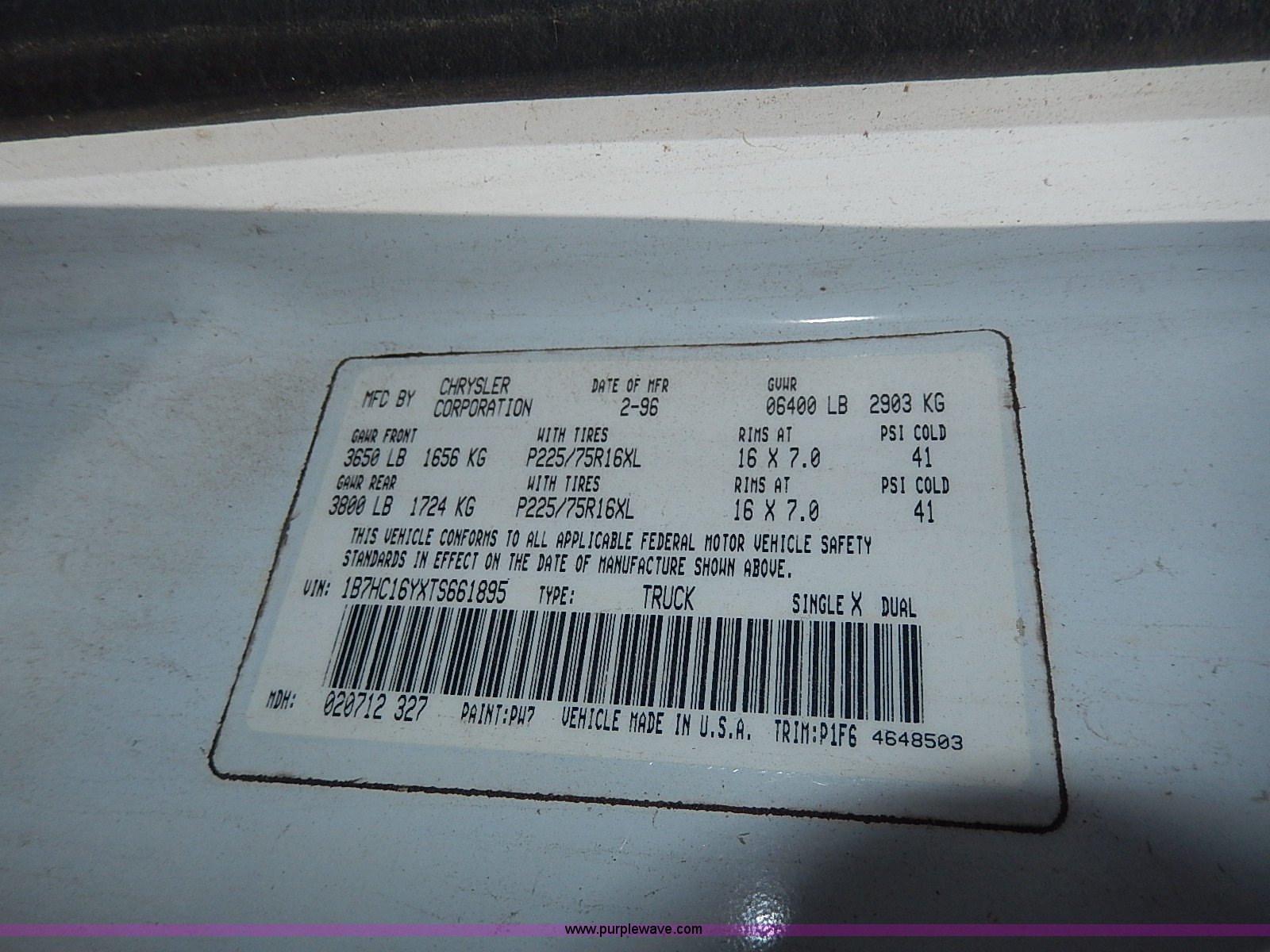 Purple Wave is selling a used Wrecked and Abandoned in Kansas. This item is a 1996 Dodge Ram 1500 with the following: 129,048 miles on odometer, 5.2L V8 OHV 16V gas engine, Automatic transmission, AC and heat, Tilt, Cruise, AM/FM/CD, Power windows/locks/mirrors/seats, Cloth interior, 275/60R15 tires, No keys, Cracked windshield, Interior/exterior cosmetic damage, Unknown running condition, Unit# 2011040