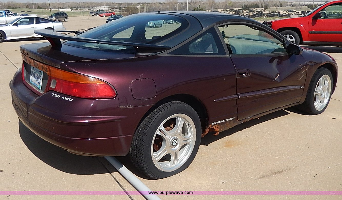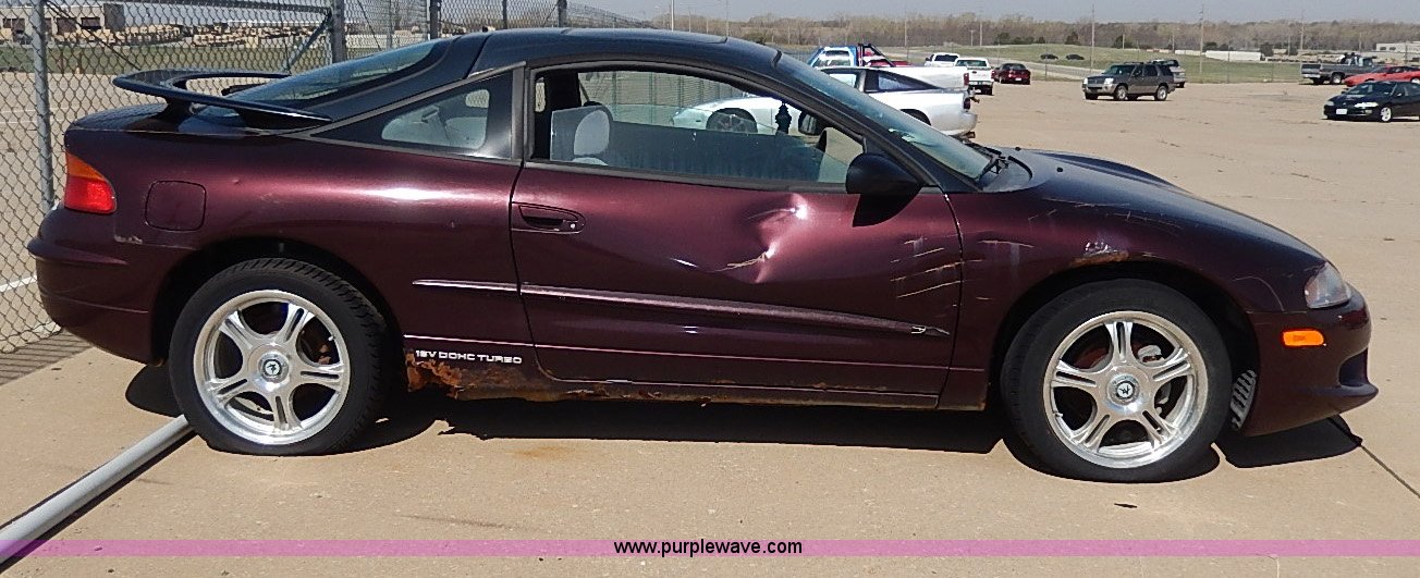 Purple Wave is selling a used Wrecked and Abandoned in Kansas. This item is a 1997 Mitsubishi Eagle Talon with the following: 157,785 miles on odometer, 2.0L L4 DOHC 16V turbo gas engine, Five speed manual transmission, AWD, AC and heat, Cruise, AM/FM/Cassette, Power windows, locks, and mirrors, Cloth interior, Sunroof, 215/50R17 tires, No keys, Interior/exterior cosmetic damage, Unknown running condition, Unit# 2011211