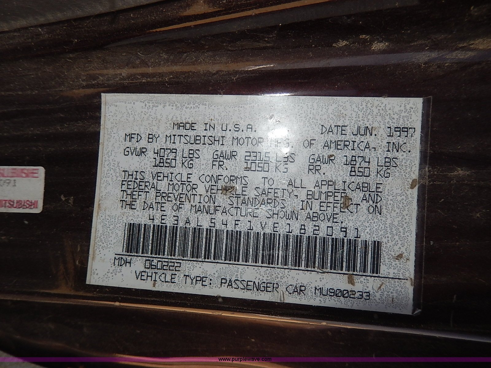 1997 Mitsubishi Eagle Talon has sold in Ft. Riley, Kansas for $687.50. Item H2630 sold on May 7th, 2014.
