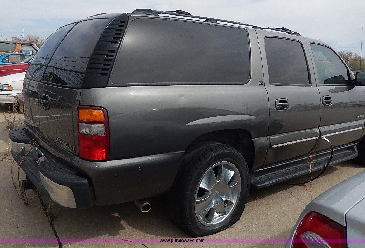 Purple Wave is selling a used Wrecked and Abandoned in Kansas. This item is a 2000 Chevrolet Suburban 1500 with the following: Unknown miles on odometer, 5.3L V8 SFI gas engine, Automatic transmission, AC and heat, Tilt, Cruise, Power windows/locks/mirrors/seats, Heated seats, Leather interior, 275/55R20 tires, Flat tires, No keys, Radio and DVD player are missing, Steering column cover is missing, Interior/exterior cosmetic damage, Unknown running condition, Unit# 9004