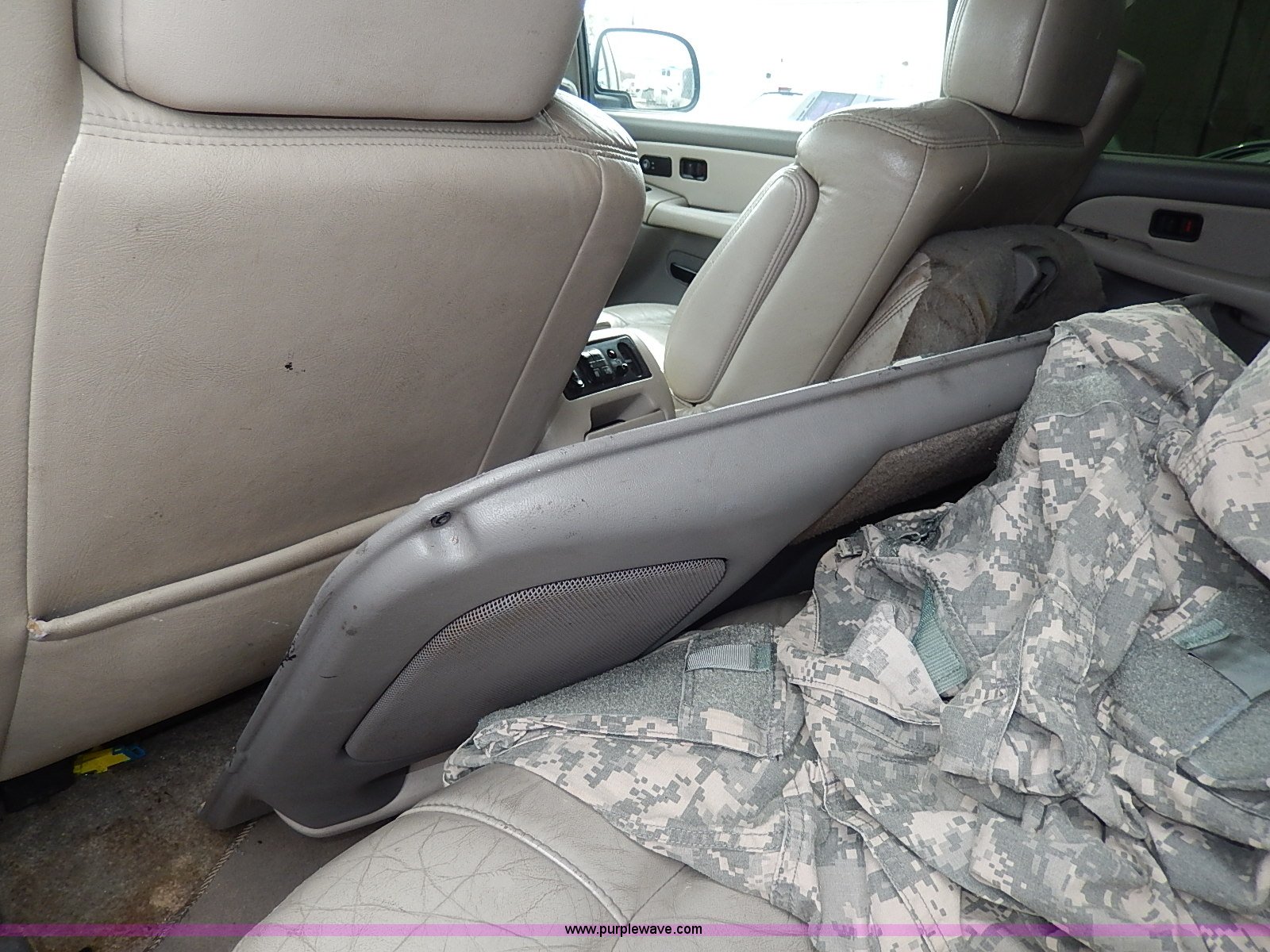 2000 Chevrolet Suburban 1500. Unknown miles on odometer, 5.3L V8 SFI gas engine, Automatic transmission, AC and heat, Tilt, Cruise, Power windows/locks/mirrors/seats, Heated seats, Leather interior, 275/55R20 tires Flat tires, No keys, Radio and DVD player are missing, Steering column cover is missing, Interior/exterior cosmetic damage, Unknown running condition, Unit# 9004. Vehicle abandoned. No additional information available.. Buyer will received paperwork indicating the abandoned status of the vehicle and which is sufficient to receive a title.. See removal details below. 3GNEC16T8YG210123. NAFI Abandoned Vehicles. H Street. Ft. Riley, KS 66442