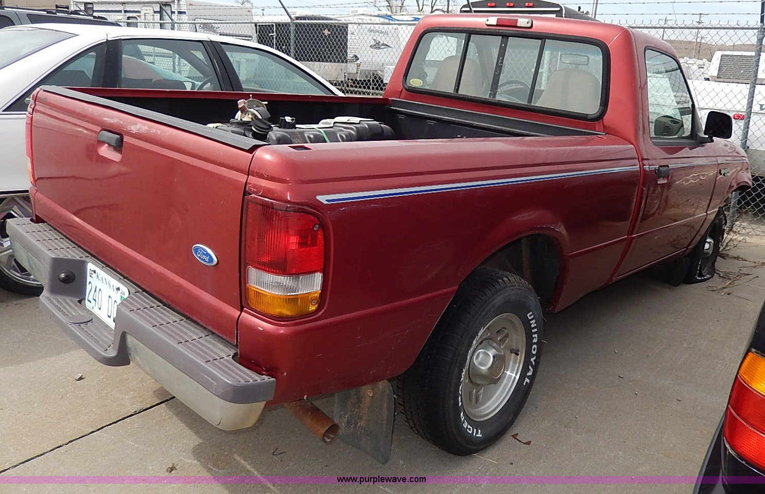 Purple Wave is selling a used Wrecked and Abandoned in Kansas. This item is a 1997 Ford Ranger XLT with the following: 60,846 miles on odometer, 2.3L I4 EFI gas engine, Five speed manual transmission, AC and heat, AM/FM, Manual windows, Cloth interior, 225/70R14 tires, No keys, Driver air bad has been removed, Fuel tank has been removed and is in bed of pickup, Interior/exterior cosmetic damage, Unknown running condition, Unit# 9013