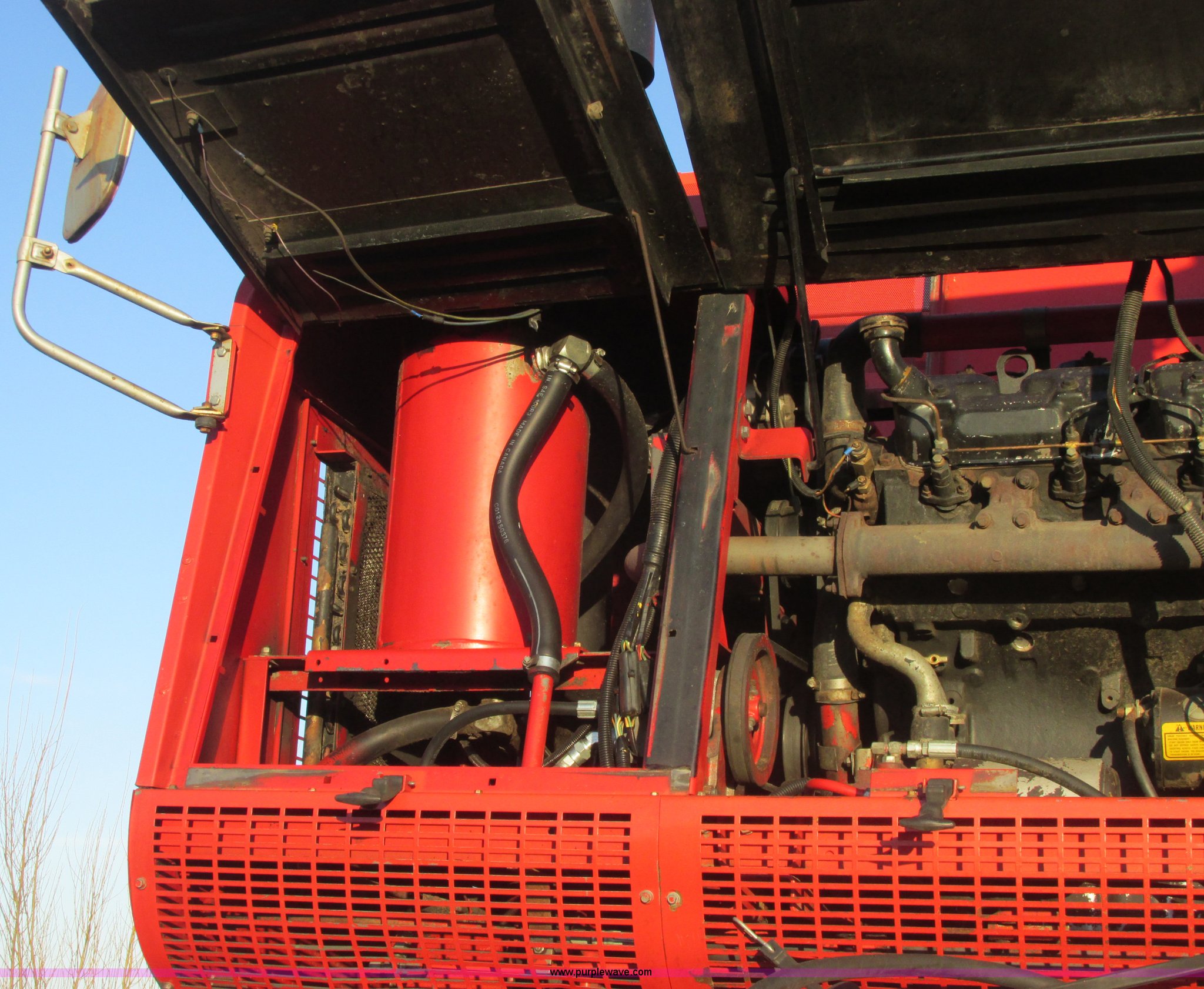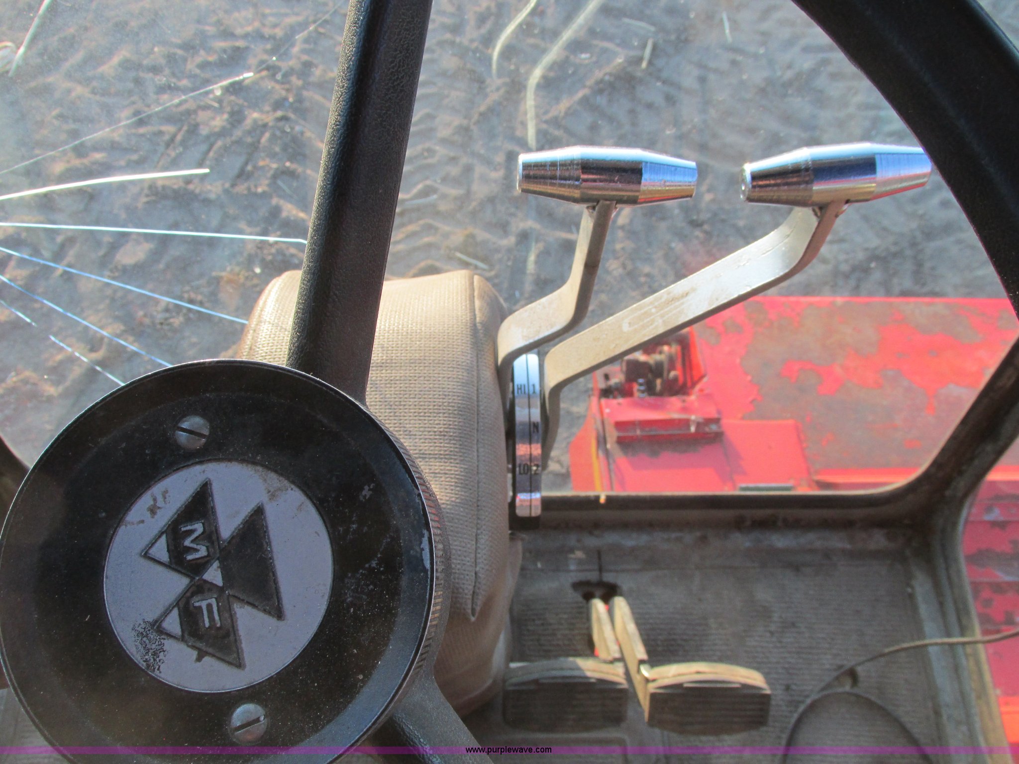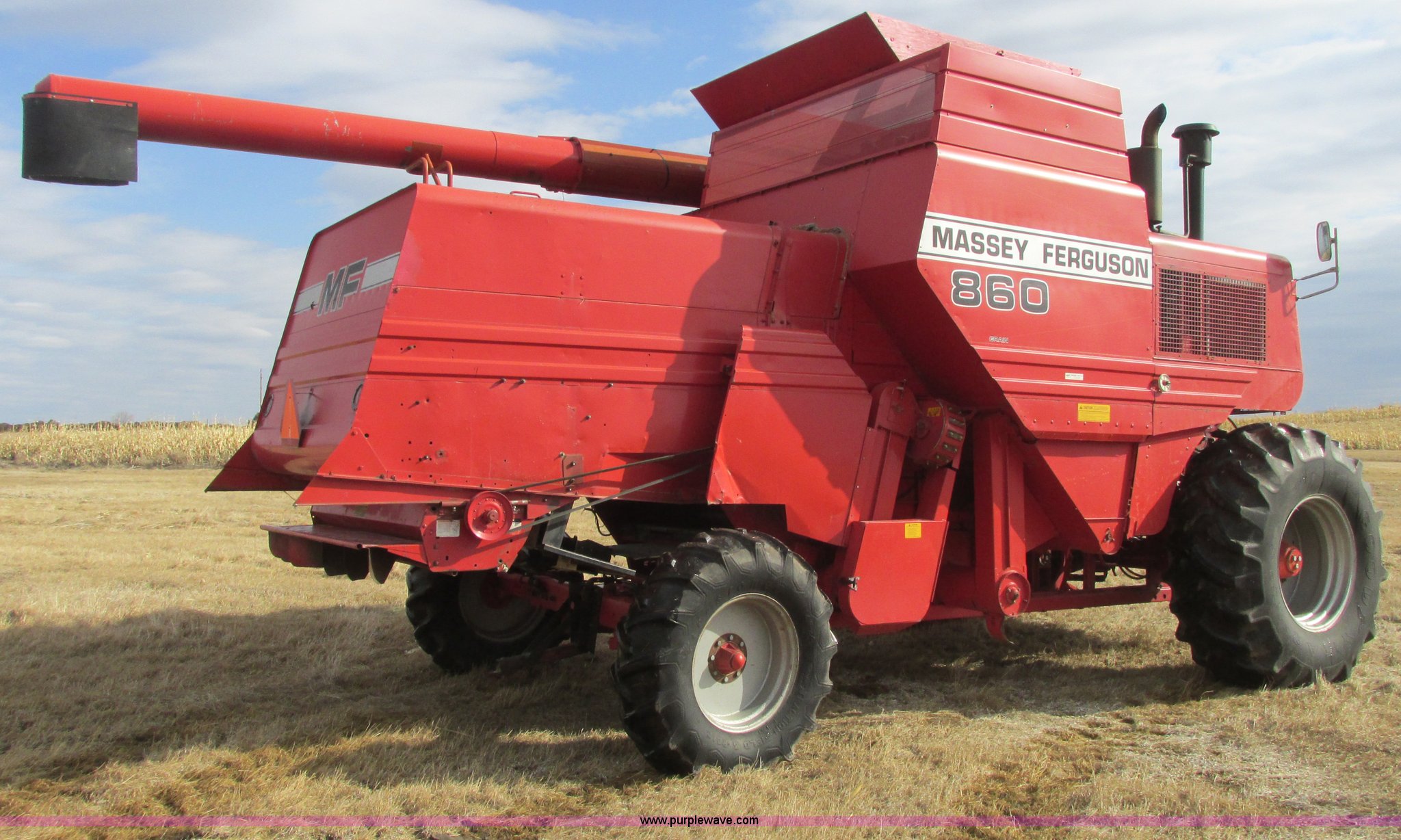 Purple Wave is selling a used Combine in North Dakota. This item is a 1985 Massey-Ferguson 860 combine with the following: 2,819 engine hours on meter, Perkins AV8-540 diesel engine, Serial XCU540315M, Hydrostatic transmission, AC and heat, AM/FM, Spring suspension seat, Tilt steering wheel, Bin extension, Work lights, Straw chopper, Straw spreader, Auger extension, Poly on auger to load hopper, 24.5-32 front tires, 14.9-24 rear tires, Cracked windshield, Serial 1746020175