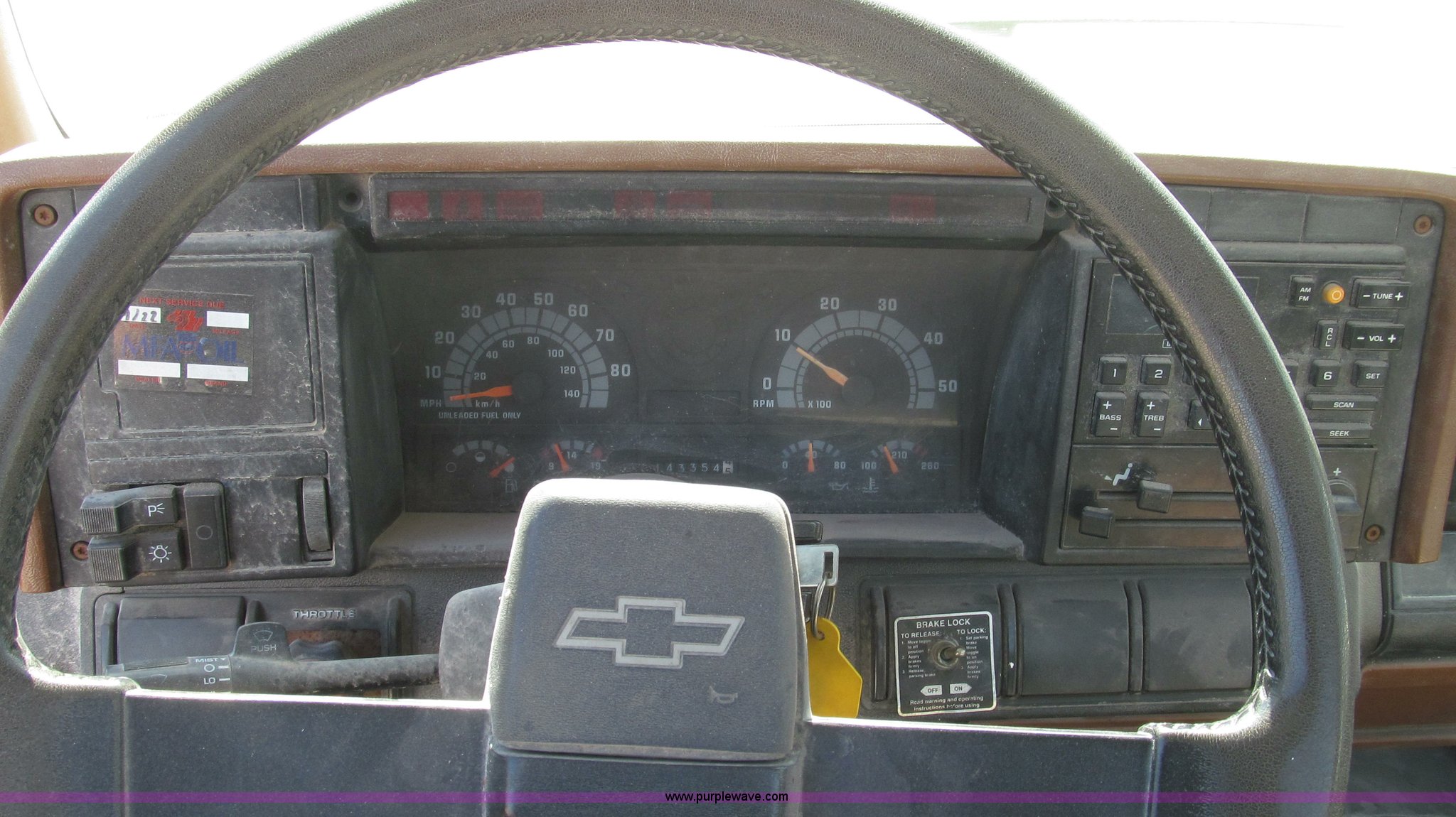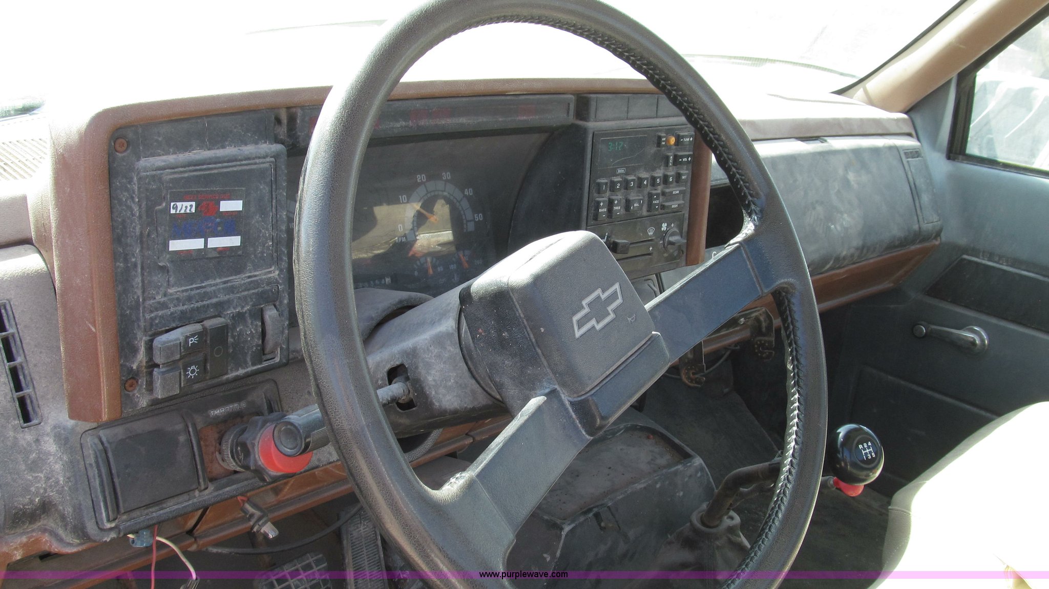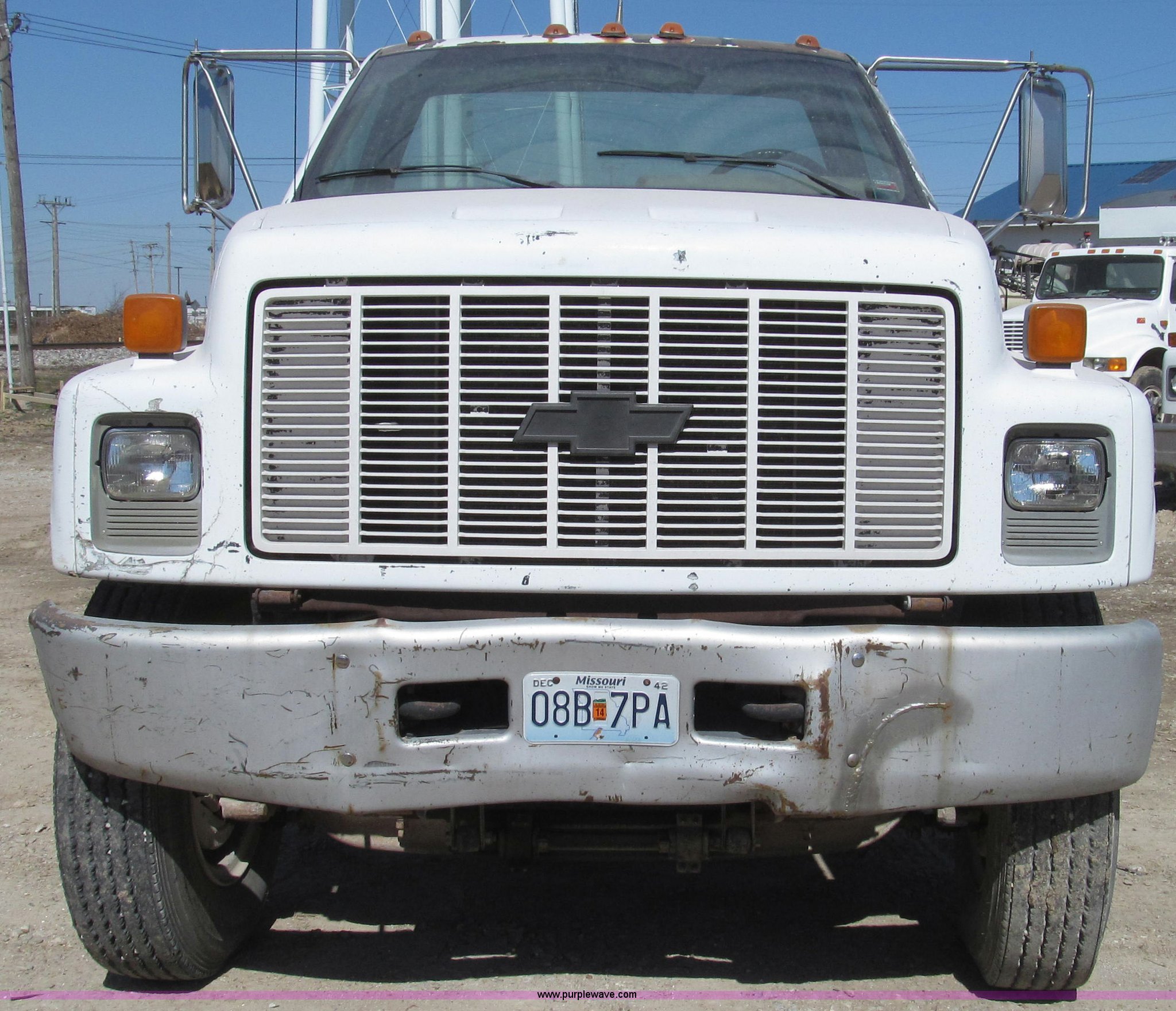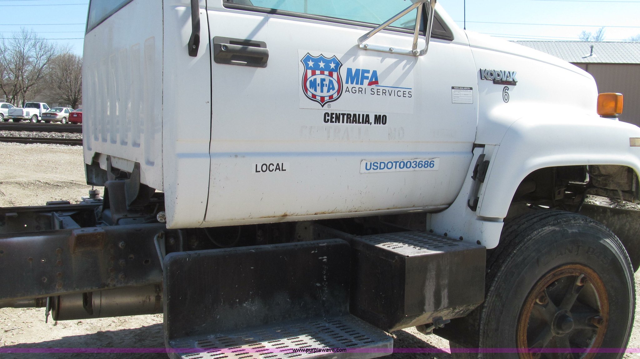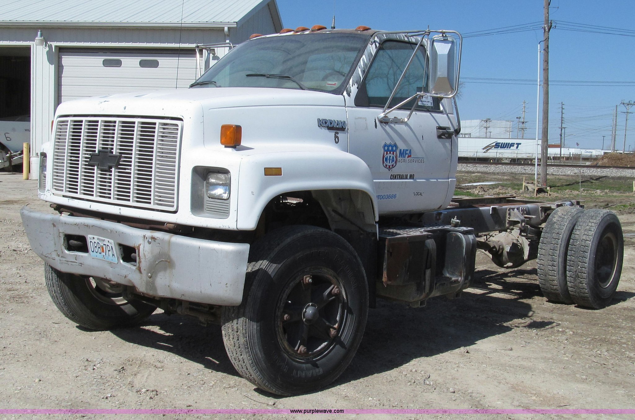 Purple Wave is selling a used Truck Chassis in Missouri. This item is a 1991 Chevrolet Kodiak truck cab and chassis with the following: 143,354 miles on odometer, 6.0L V8 gas engine, Five speed manual transmission, Two speed axle, Heat, AM/FM, Spring suspension seat, Brake controller, Front tow hooks, Brake lock control, Receiver hitch, Trailer wiring, 50 gallon fuel tank, PTO, Spring suspension, Hydraulic brakes, 10.00R20 tires, Paint peeling, Rust, Service records available, Unit# 6