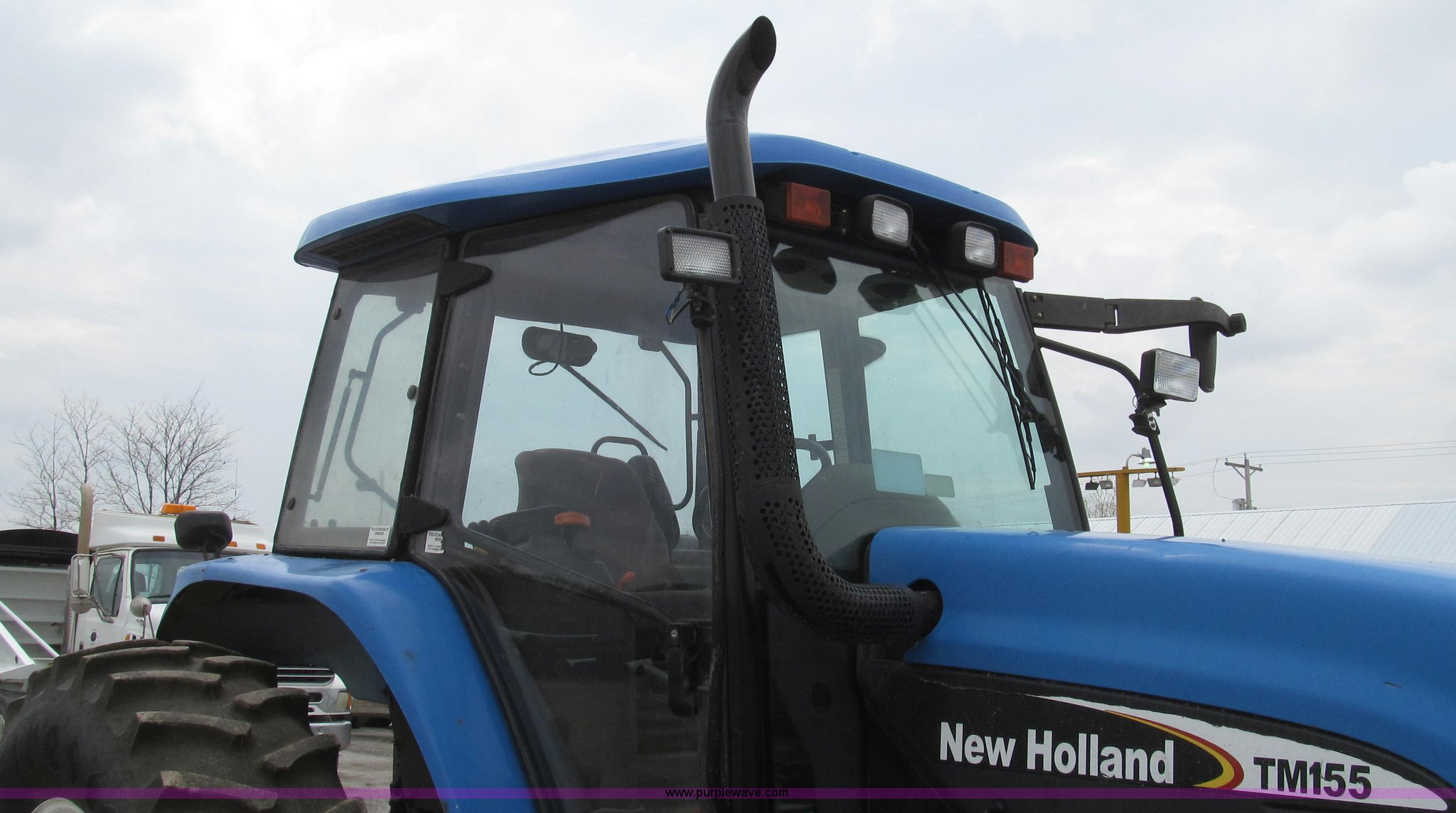 Purple Wave is selling a used Tractor in Missouri. This item is a 2003 New Holland TM155 MFWD tractor with the following: 5,798 hours on meter, Case New Holland UK 7.5L six cylinder diesel engine, 155 HP, Serial HA051471, Powershift transmission, 17F-6R gears, AC and heat, AM/FM/cassette, Air suspension seat, Tilt steering wheel, Front shades and visors, Front and rear work lights, Front and rear windshield wipers, Hand and foot throttle, Left and right doors, Three point, 540 PTO, (4) rear hydraulic remote sets, 75 gallon fuel tank, (14) 40 kg suitcase weights, Left rear wheel weights, 107" wheelbase, 14.9-28 front tires, 18.4-38 rear tires, Fluid filled, 12,920 lbs. base operating weight, Serial ACM198231, Unit# 91