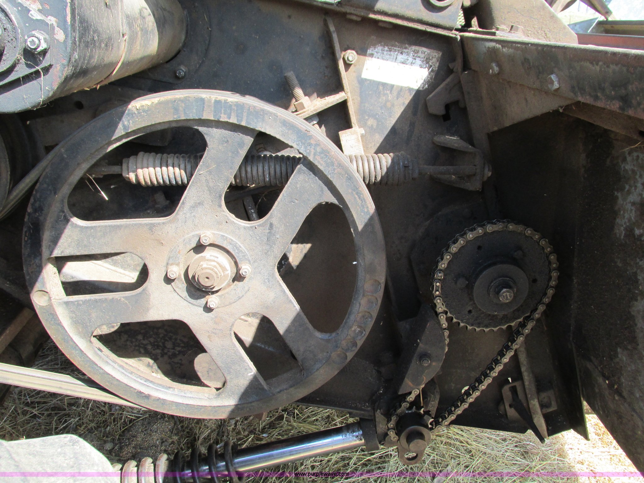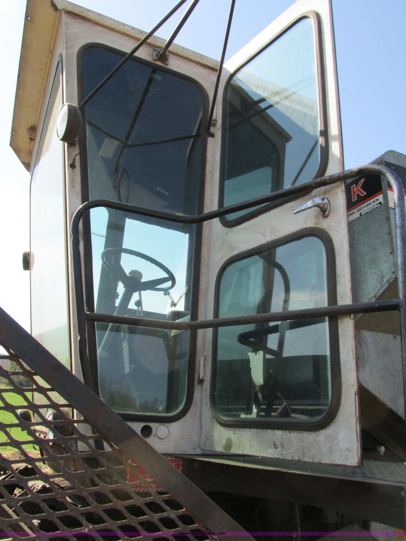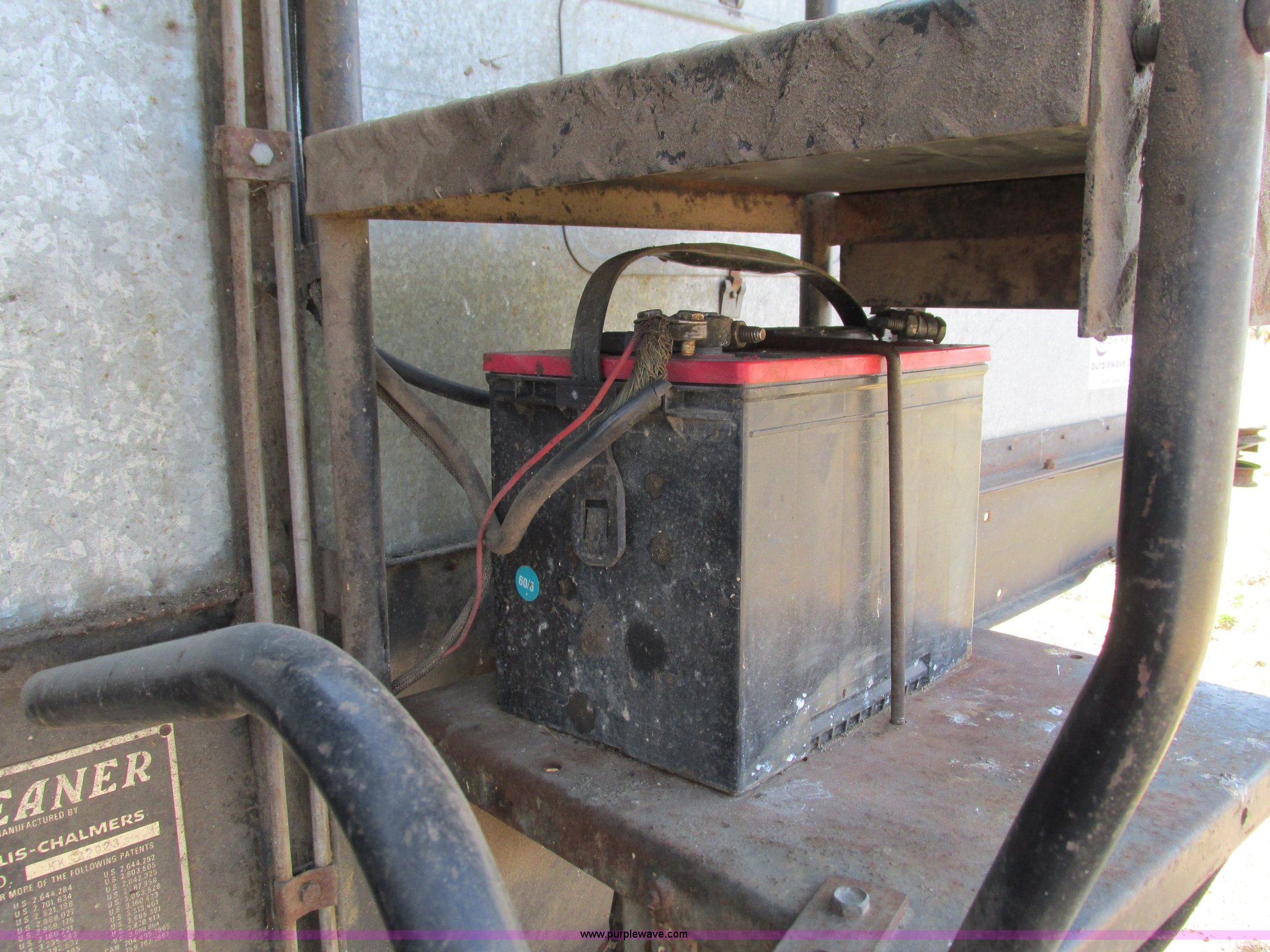 Purple Wave is selling a used Combine in Missouri. This item is a 1976 Allis Chalmers Gleaner K combine with the following: Hour meter inoperable, Chevrolet 292 six cylinder gas engine, Hydrostatic transmission, 3F-1R gears, Heat, Spring suspension seat, Tilt steering wheel, 10' head, Serial E-42194, Work lights, Operator's manual, Approx. 75 bushel capacity, 18.4x26 front tires, 11L-16 rear tires, Clutch replaced one year ago, Seat torn, Monitor inoperable, Engine leaks oil, Serial KKS22023