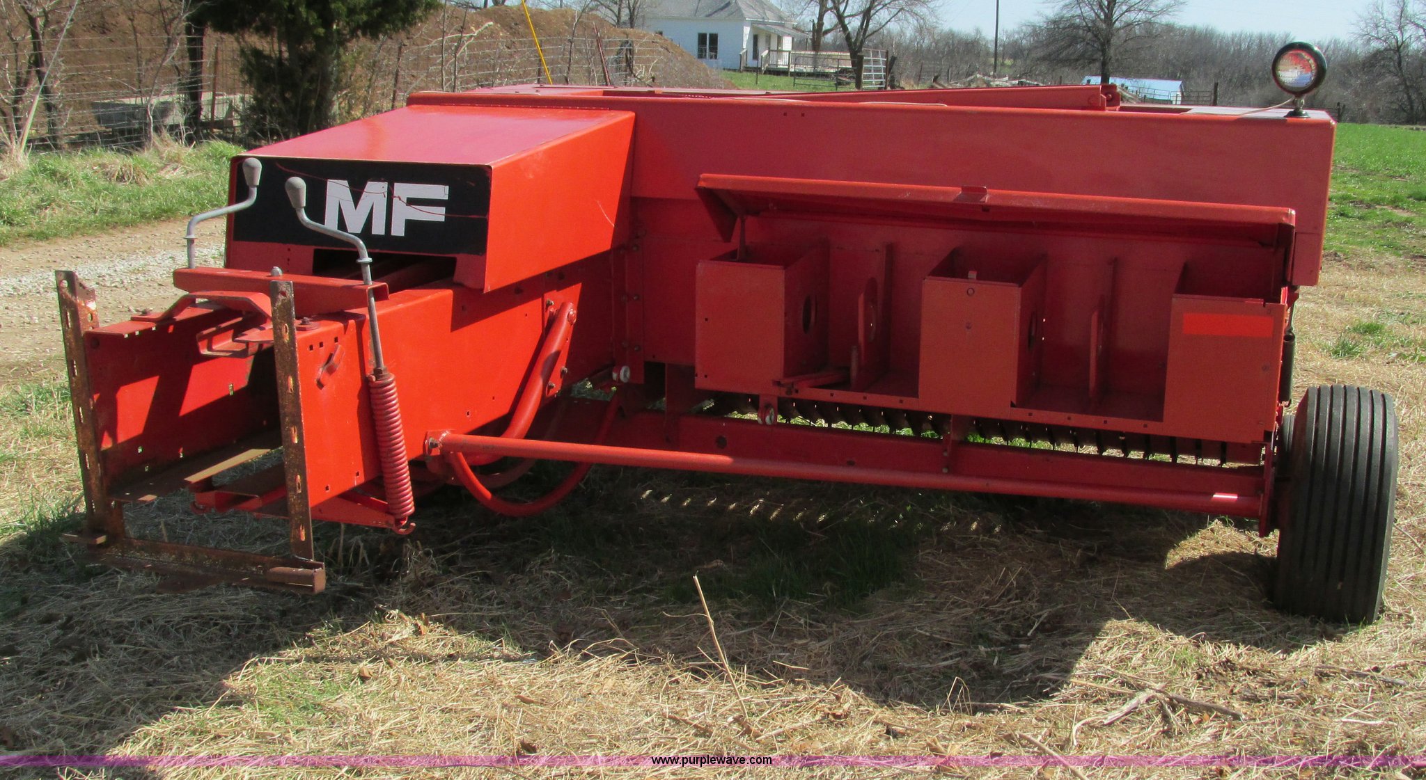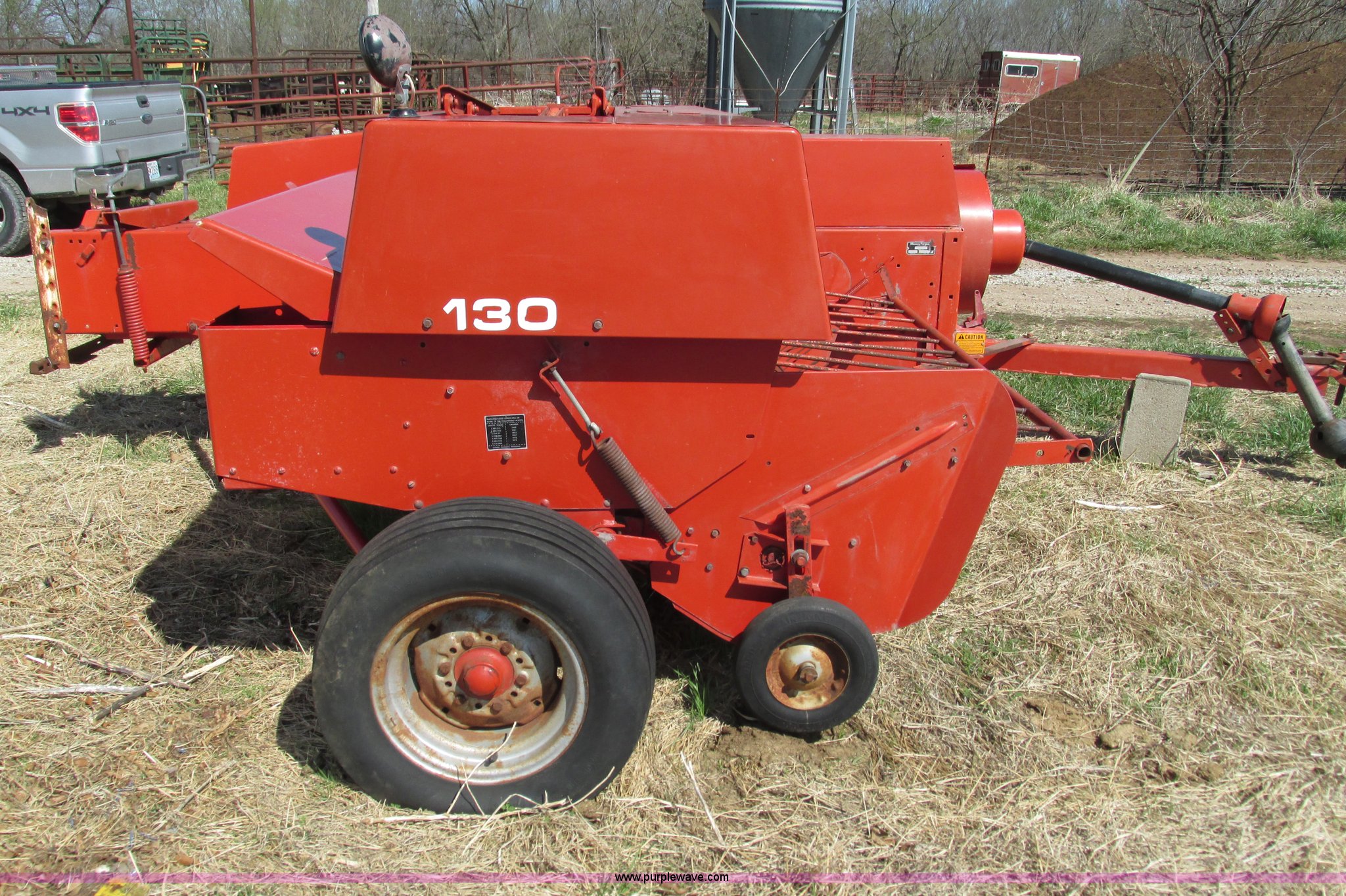 Purple Wave is selling a used Square Baler in Missouri. This item is a Massey-Ferguson MF130 small square baler with the following: Series 2183, 540 PTO, Wire tie, Pin hitch, Manual adjust tongue, 27x9.5-15 NHS tires, Some cracks in tires, Serial 850170
