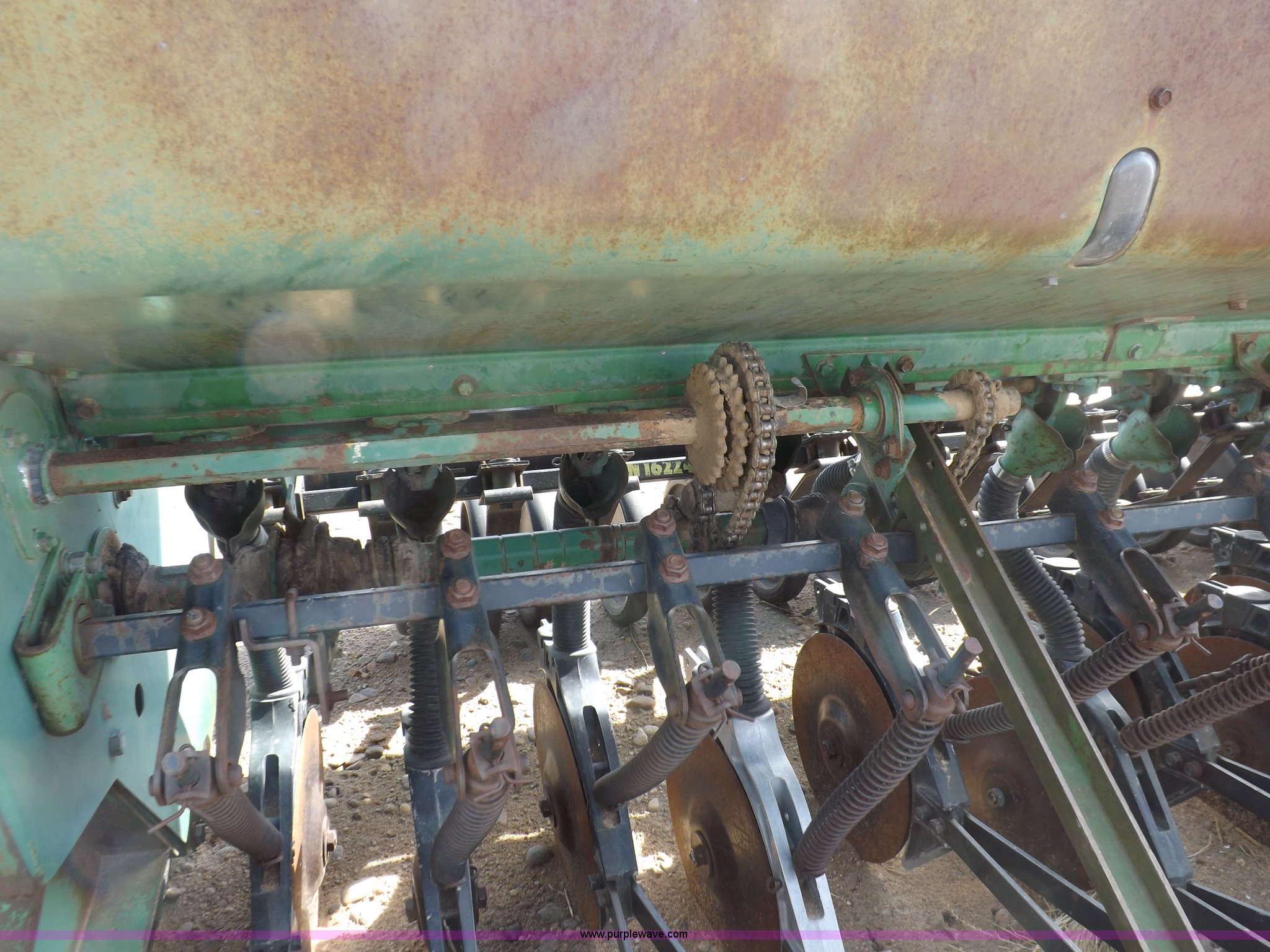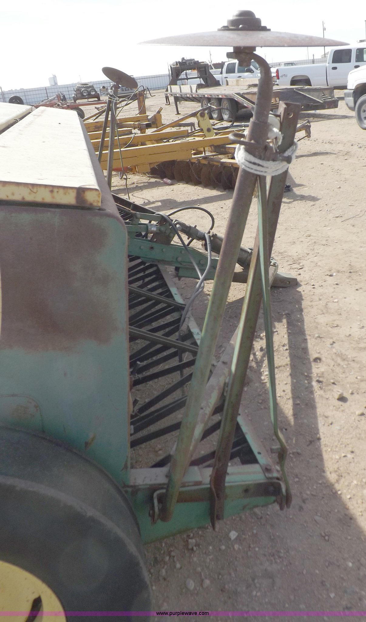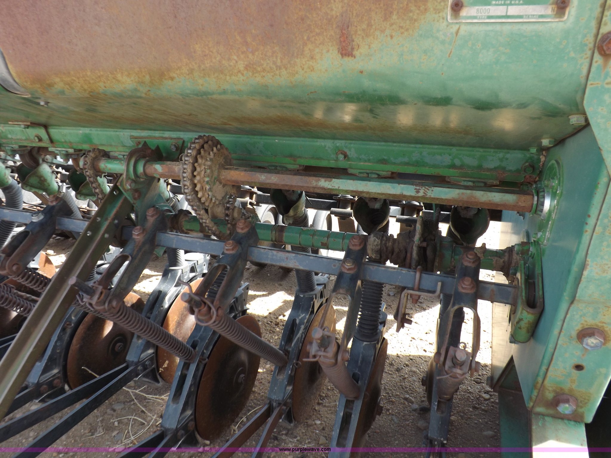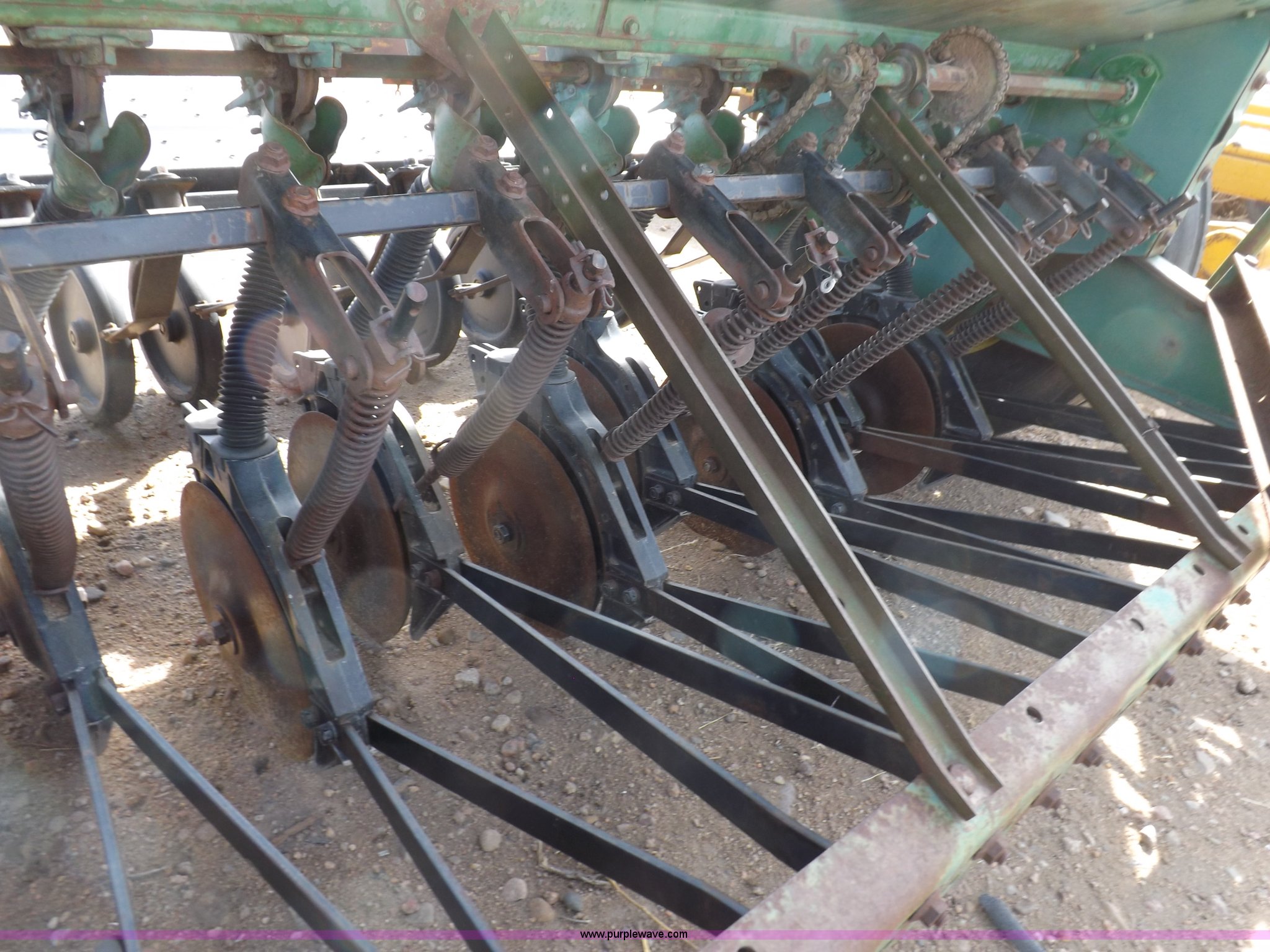 Purple Wave is selling a used Grain Drill or Seeder in Kansas. This item is a John Deere 8300 drill with the following: 13'4"W toolbar, 21 rows, 7" spacing, Bulk fill, Mechanical delivery, 2" x 12" press wheels, 14" openers, 7.50-20 tires, Serial 040897N