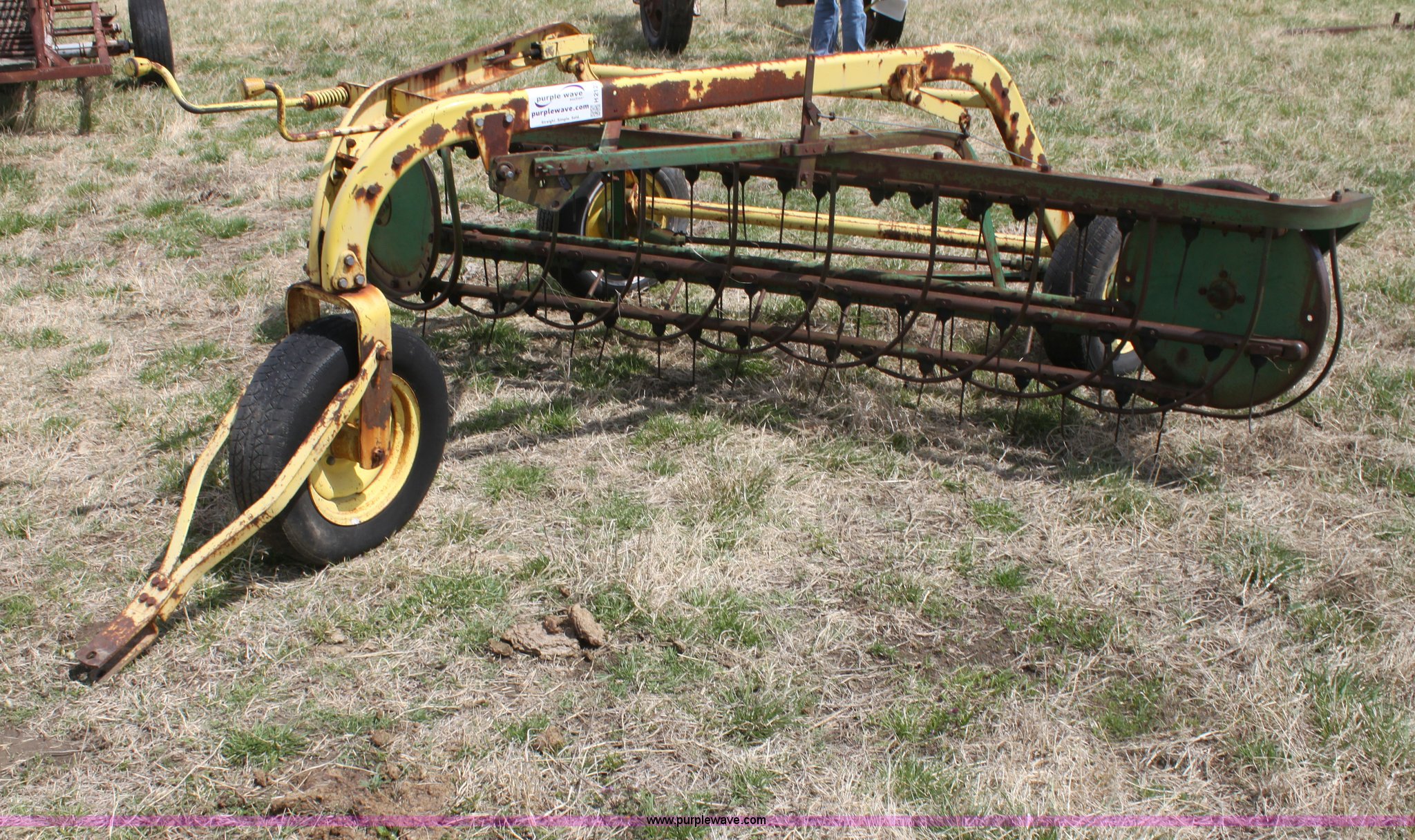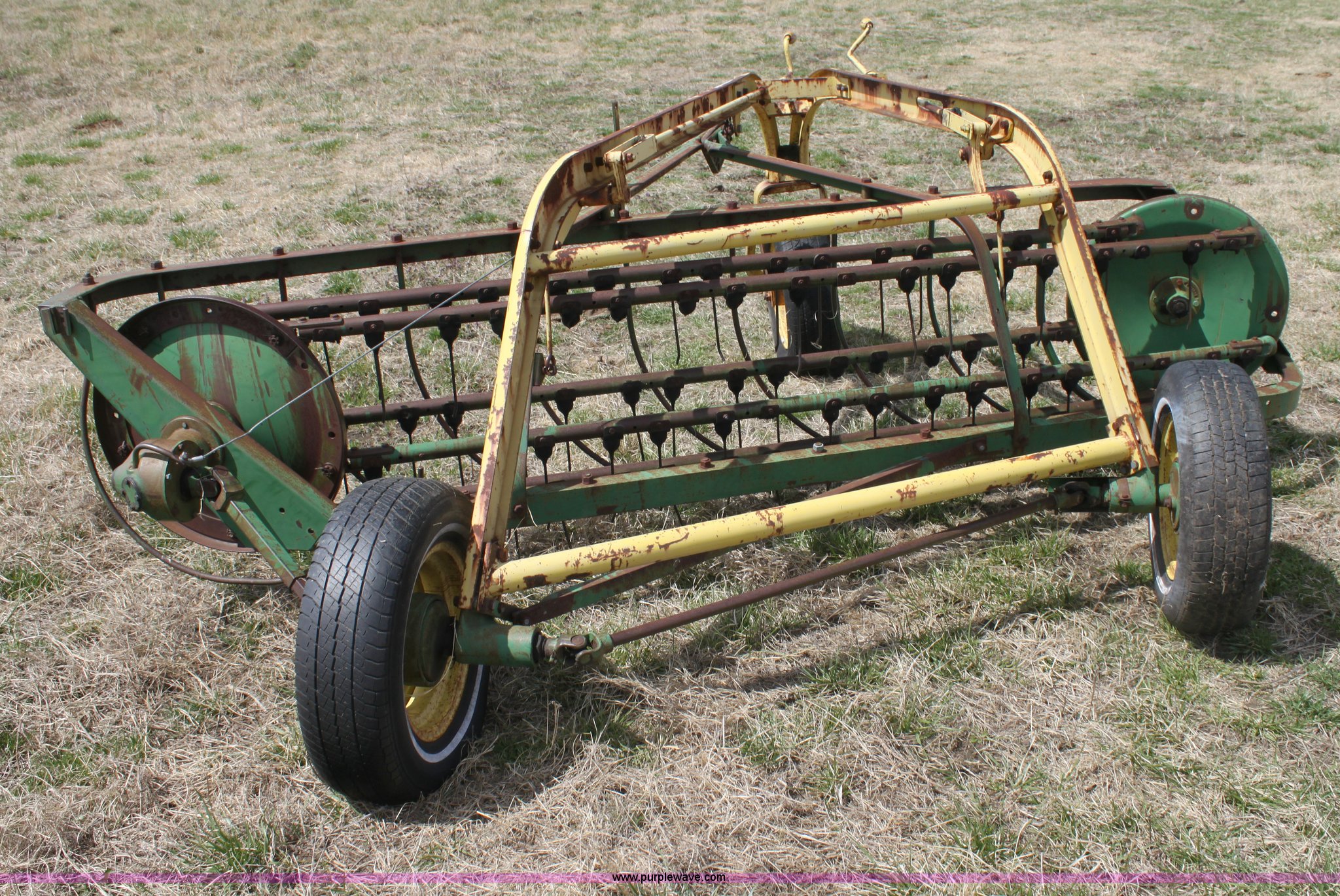 Purple Wave is selling a used Hay Rake in Kansas. This item is a John Deere 640 side delivery hay rake with the following: Ground driven, P205/70R14 tires, Serial 024179E