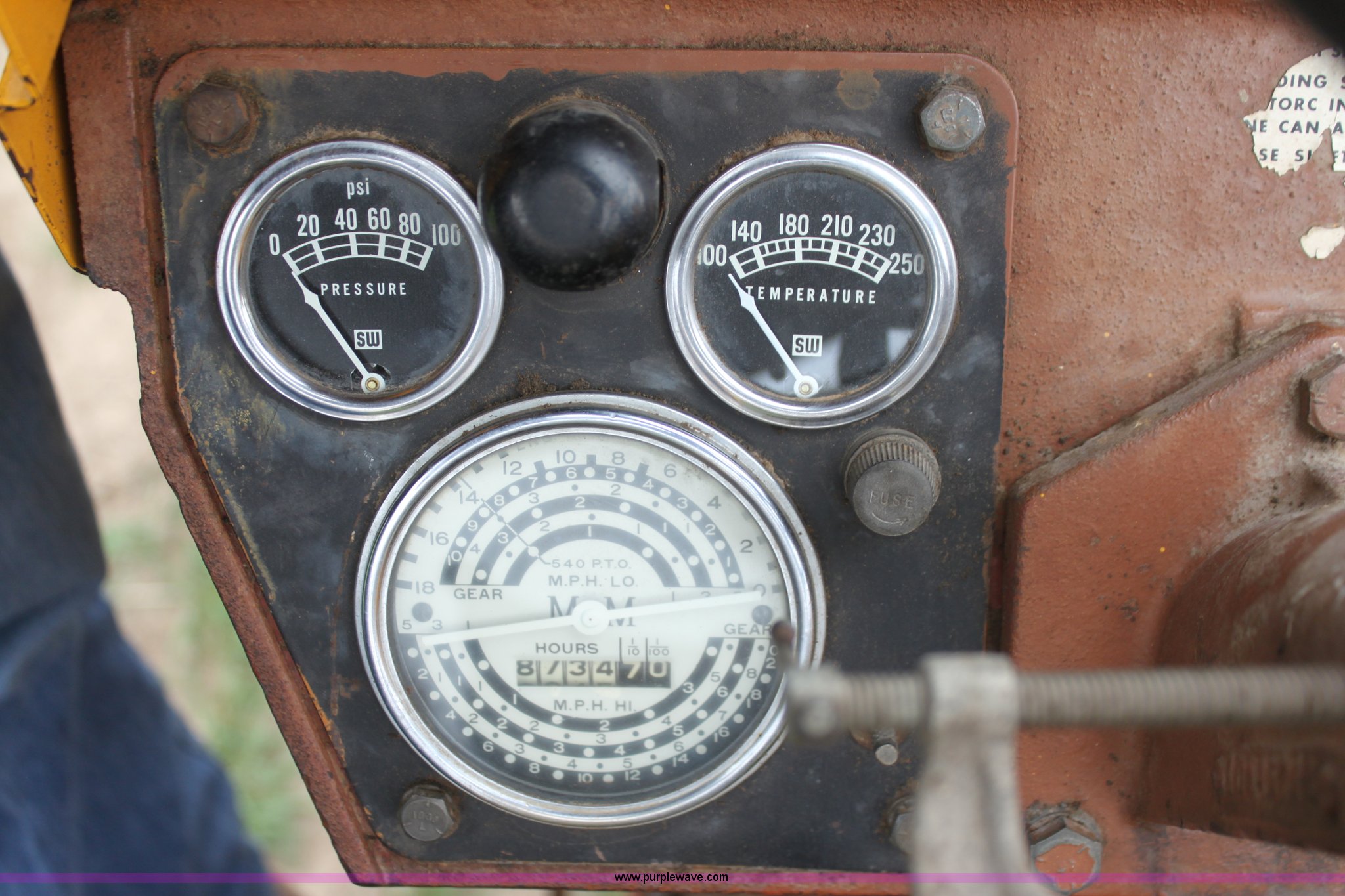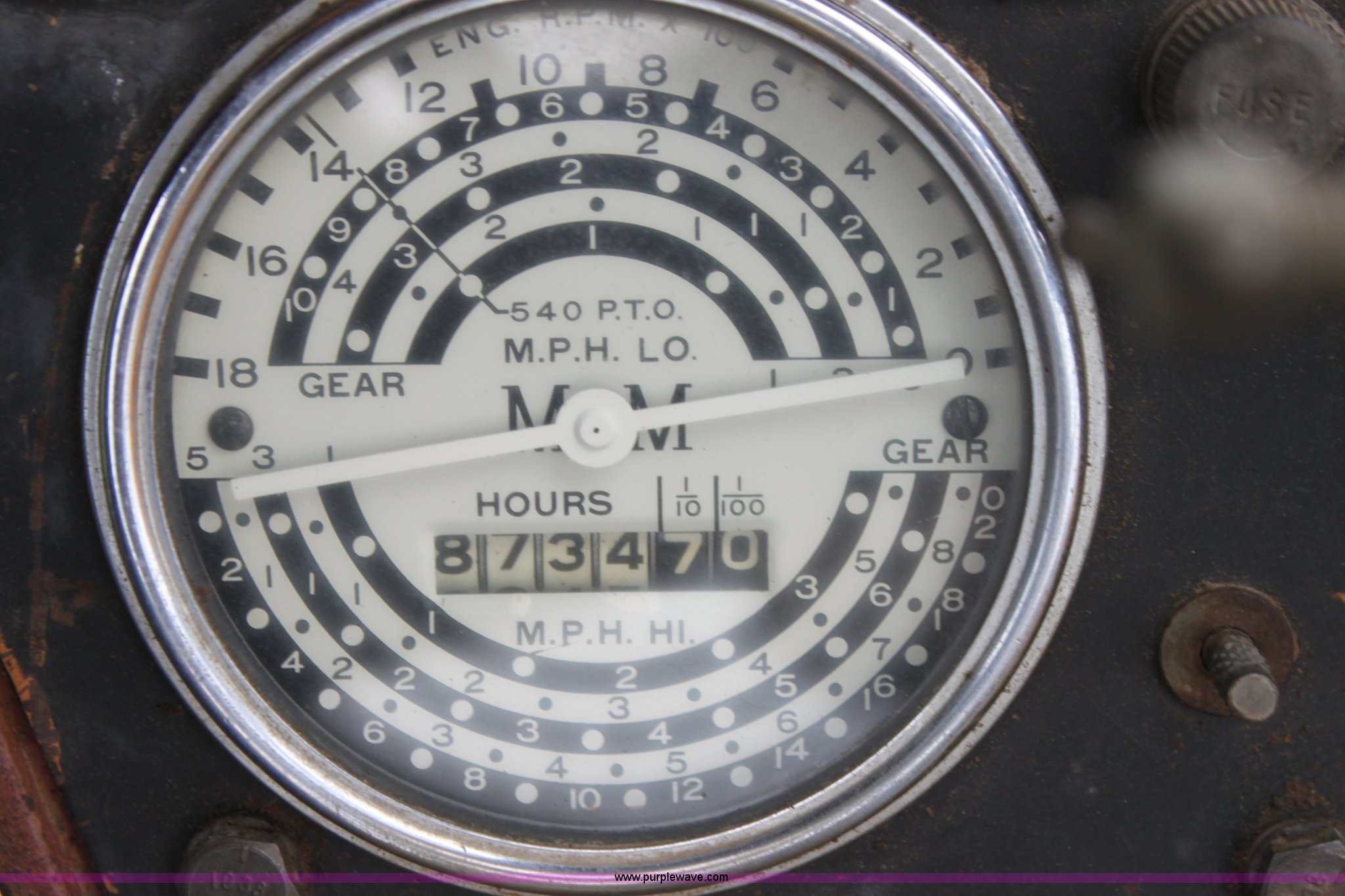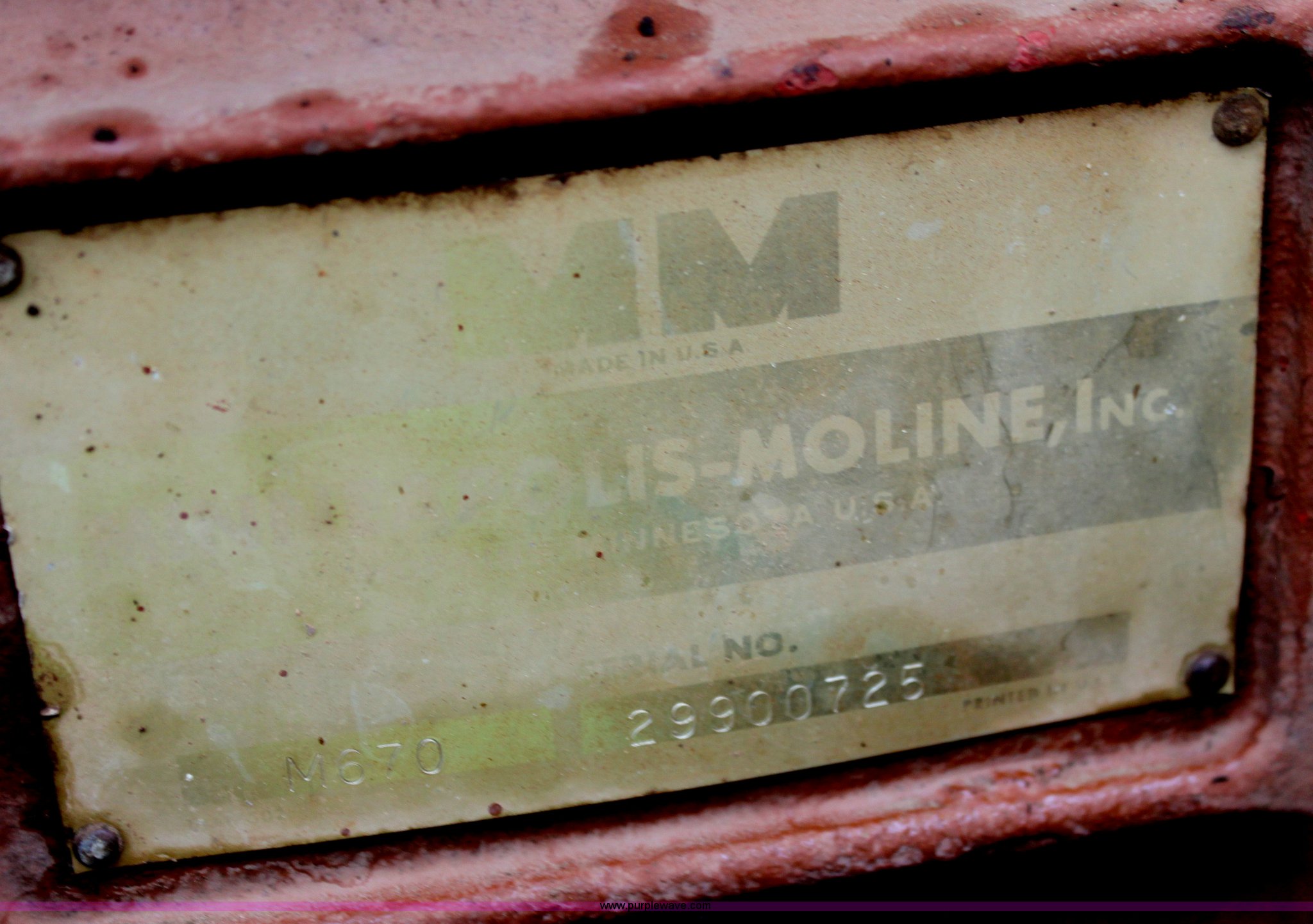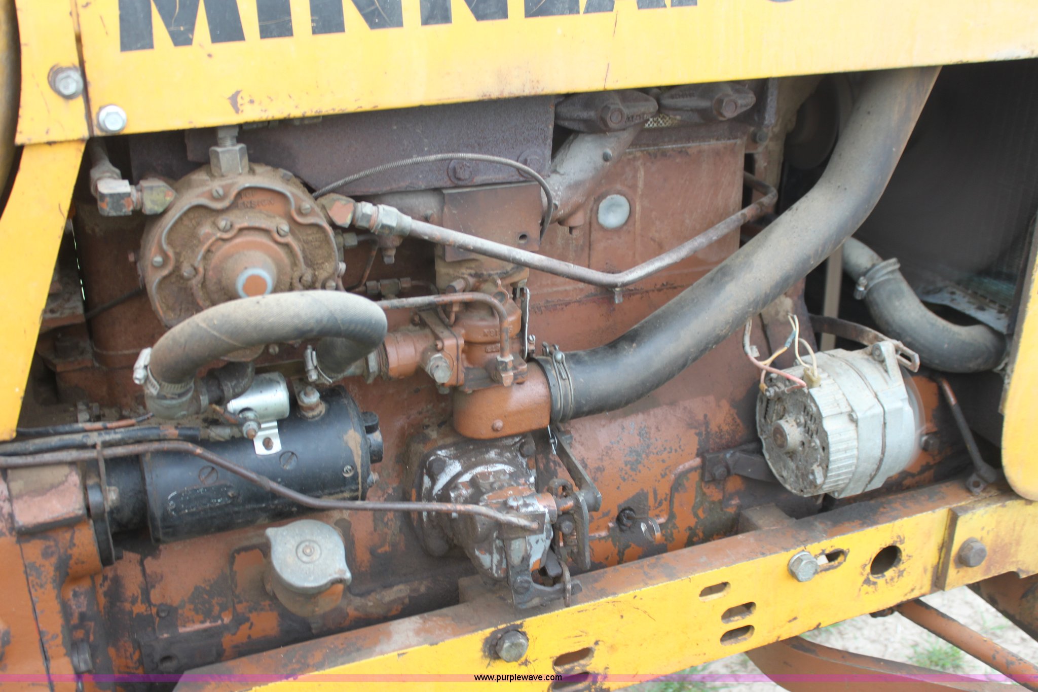 Purple Wave is selling a used Tractor in Kansas. This item is a 1965 Minneapolis Moline M670 tractor with the following: 8,734 hours on meter, Four cylinder LP engine, Model 336A-4, Serial 293D0779, 10F-2R gears, Two range amplitorque, Spring suspension seat, Power steering, Three point, 540 PTO, Draw bar, (2) rear hydraulic remotes, 6.50-16 front tires, 15.5-38 rear tires, Recently replaced muffler, PTO shaft is broken, Parts to repair broken shaft are included, Serial 29900725