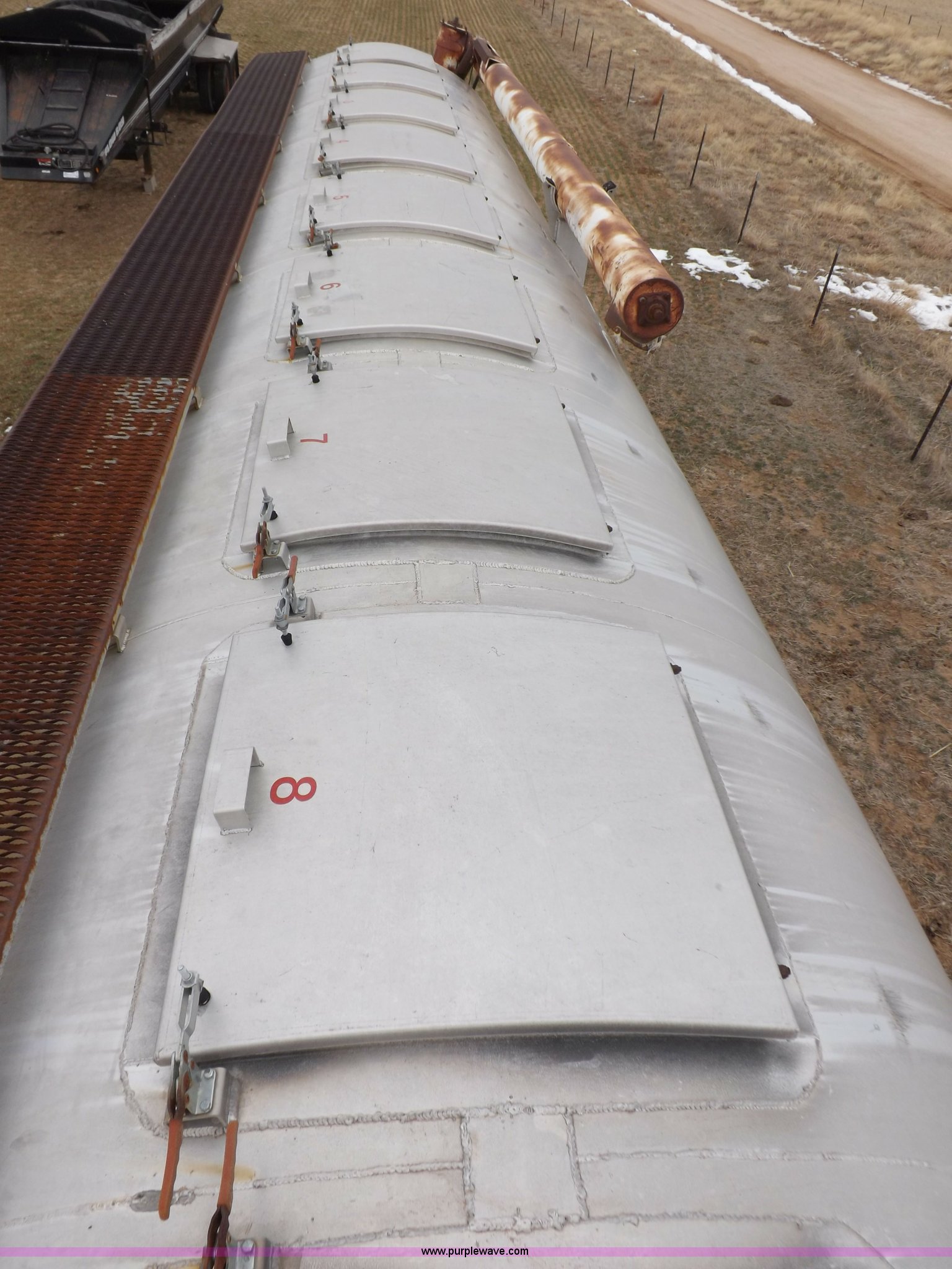 Purple Wave is selling a used Fertilizer or Feed Delivery Trailer in Oklahoma. This item is a 1985 Ledwell feed trailer with the following: 40'L x 8'W x 12'H, (8) compartments, 23' auger, Ladder and catwalk, Aluminum tank, Steel main rails, Front controls, Dual leg two speed landing gear, Spring suspension, 11R22.5 tires, Fender rust, Ladder damaged, Left outside rear tire low, Gate handle missing