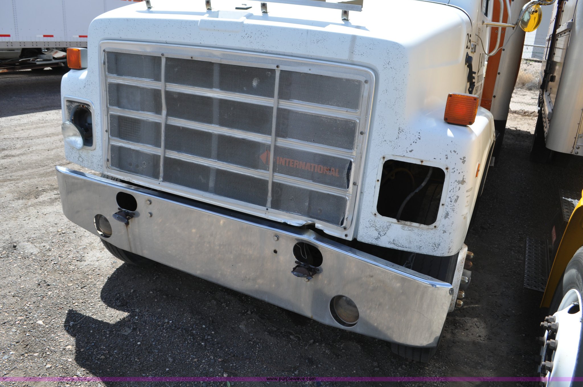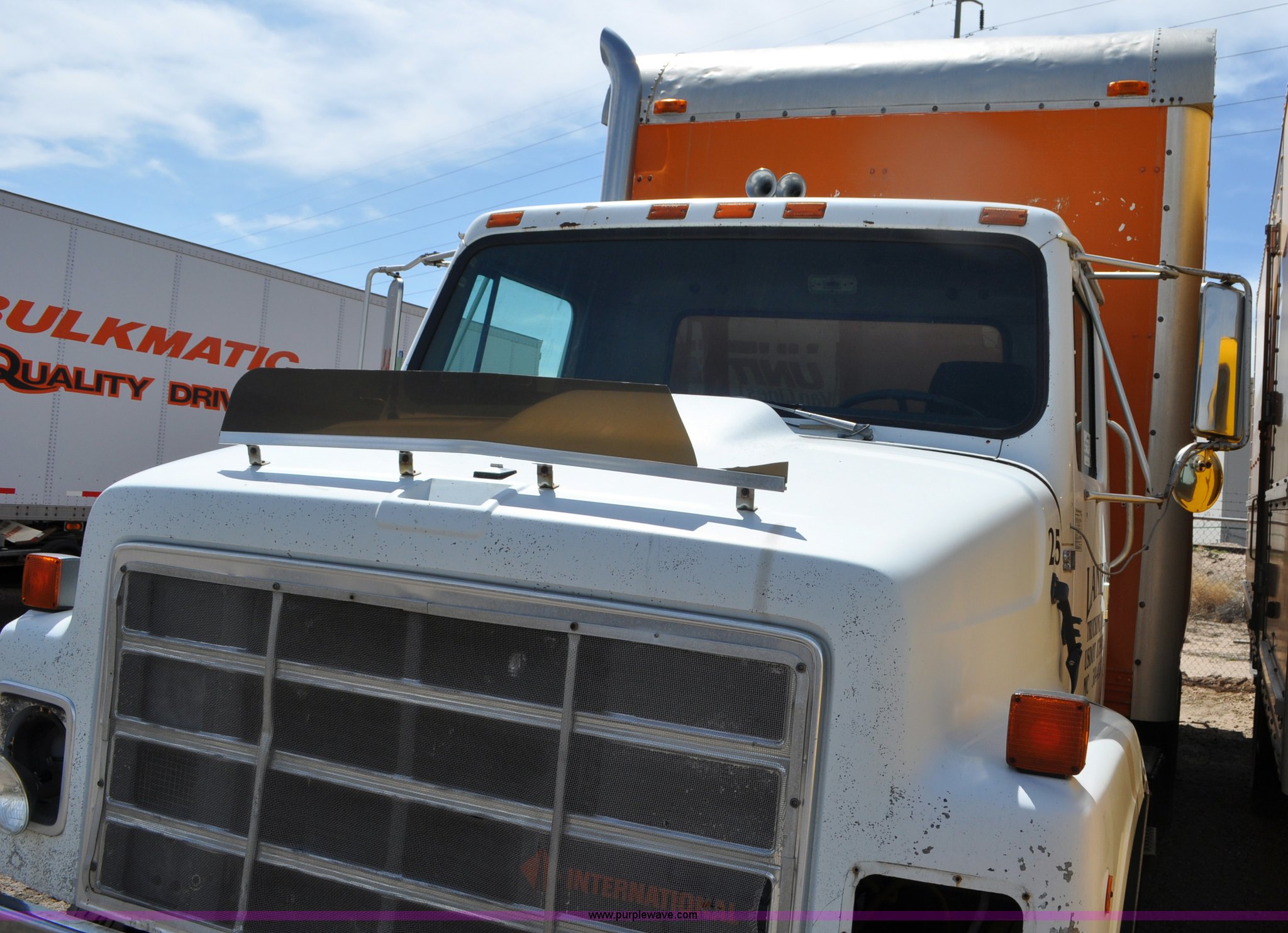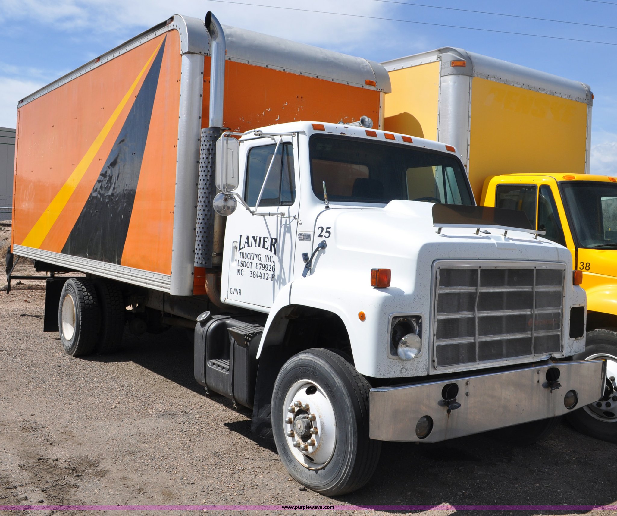 Purple Wave is selling a used Box Truck in Colorado. This item is a 1986 International 2375 box truck with the following: 15,039 miles on odometer, Actual mileage unknown, Cummins L10 10.0L L6 turbo diesel engine, 270 HP, Eaton Fuller 10 speed manual transmission, AC and heat, Manual windows and locks, Block heater, 22'L box, 8'W x 8'H, Wood floor, Forklift damage to left side, Dual fuel tanks, 208" wheelbase, 22.5" tires, Non-operational, parts missing, Cosmetic damage, Unit# 25