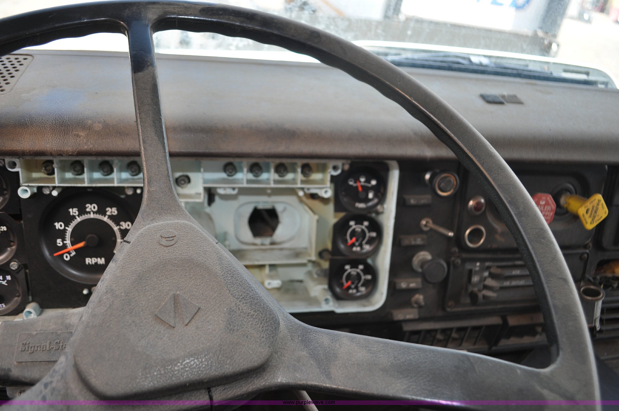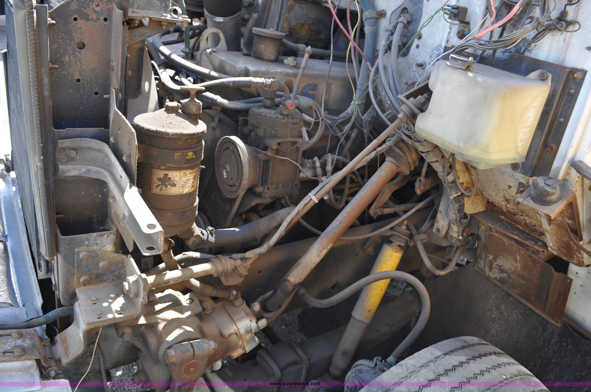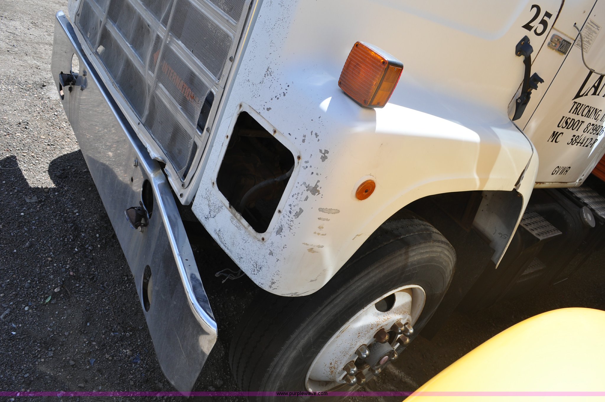 Purple Wave is selling a used Box Truck in Colorado. This item is a 1986 International 2375 box truck with the following: 15,039 miles on odometer, Actual mileage unknown, Cummins L10 10.0L L6 turbo diesel engine, 270 HP, Eaton Fuller 10 speed manual transmission, AC and heat, Manual windows and locks, Block heater, 22'L box, 8'W x 8'H, Wood floor, Forklift damage to left side, Dual fuel tanks, 208" wheelbase, 22.5" tires, Non-operational, parts missing, Cosmetic damage, Unit# 25