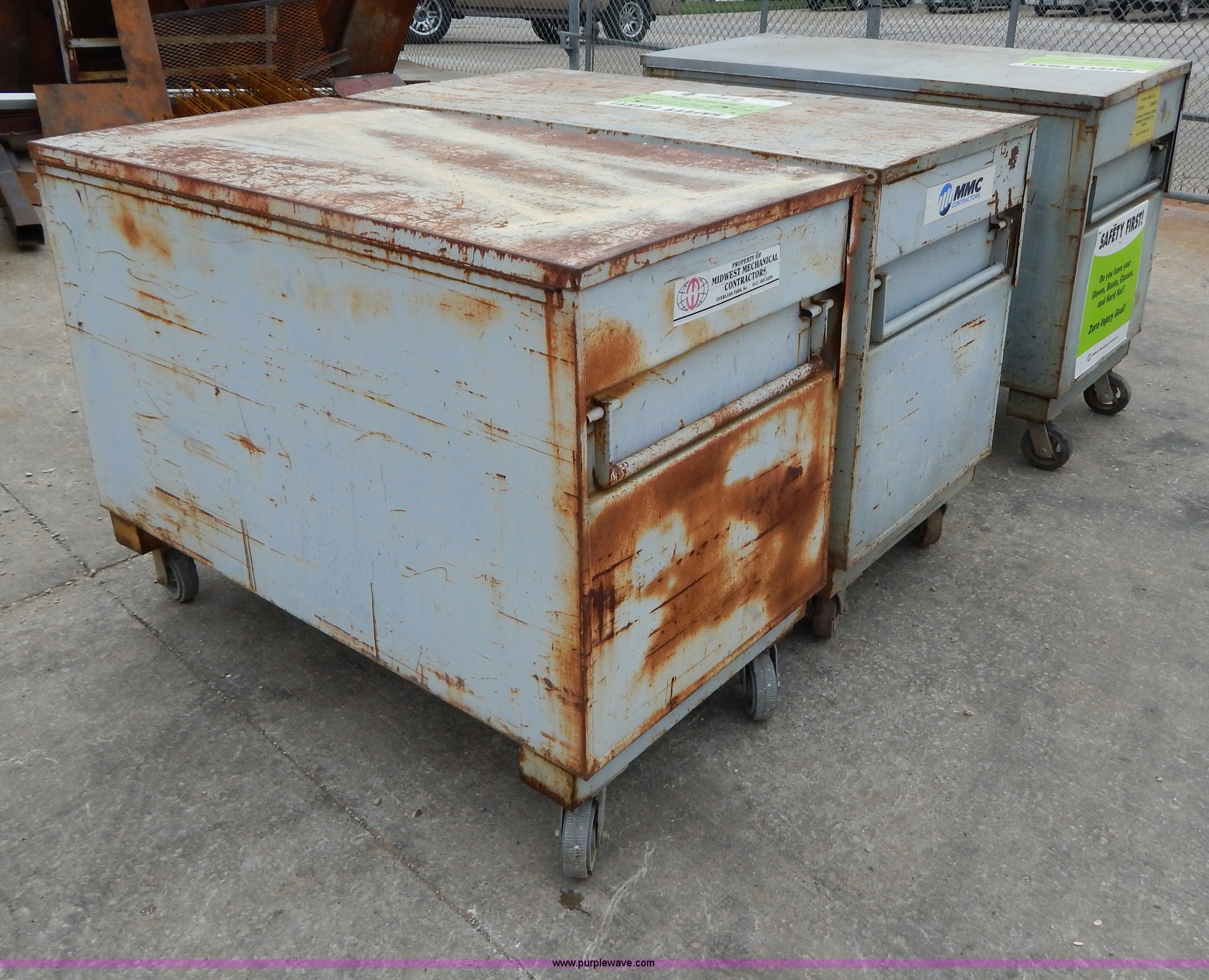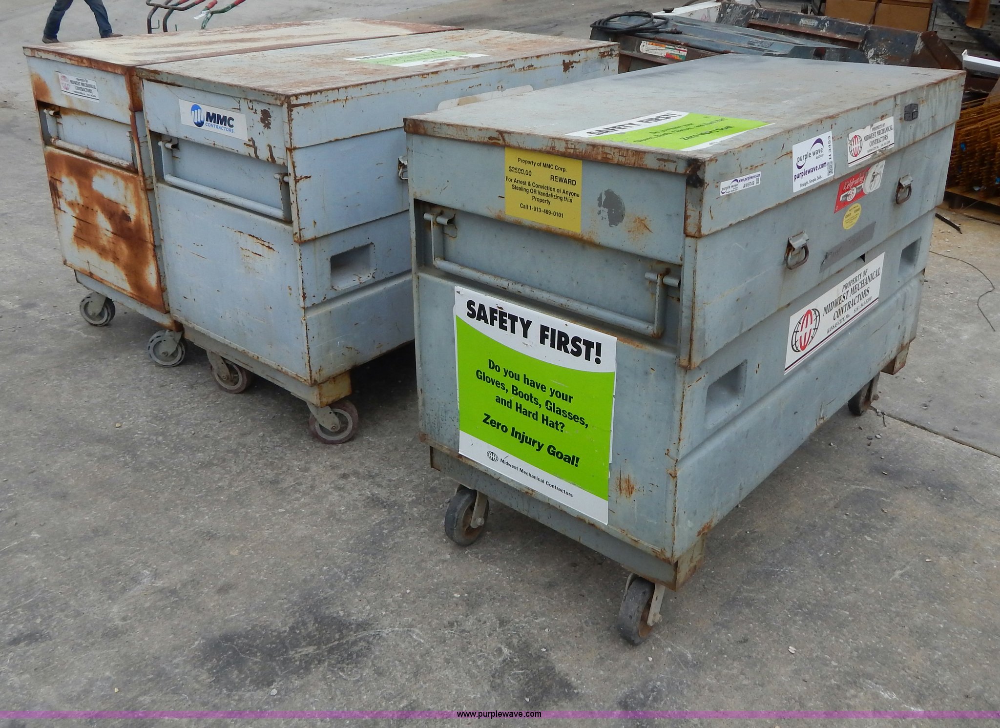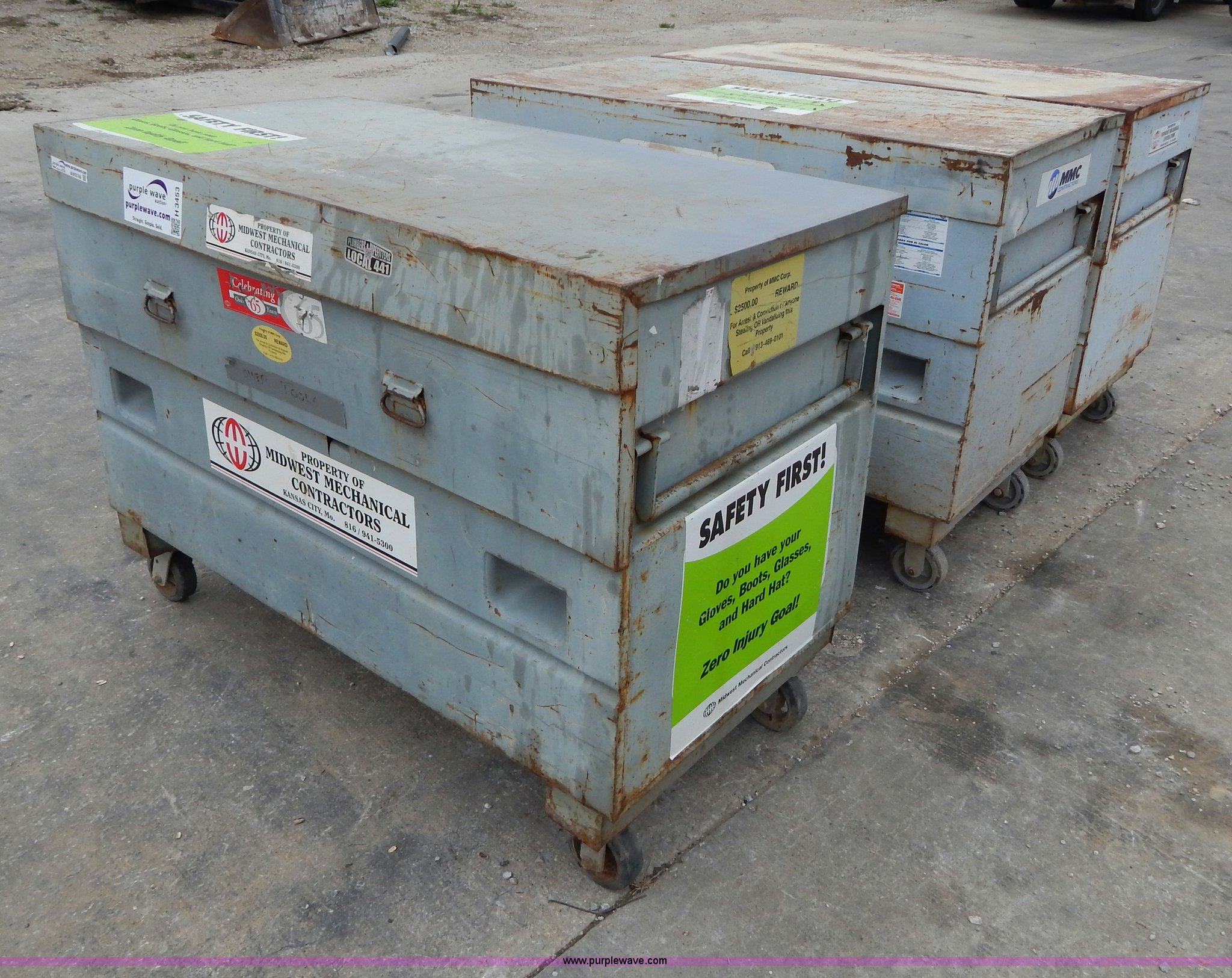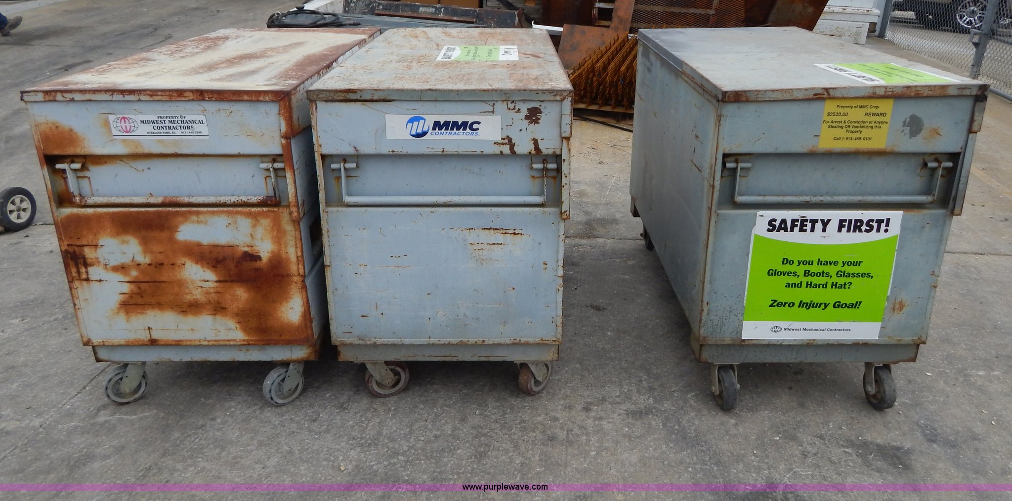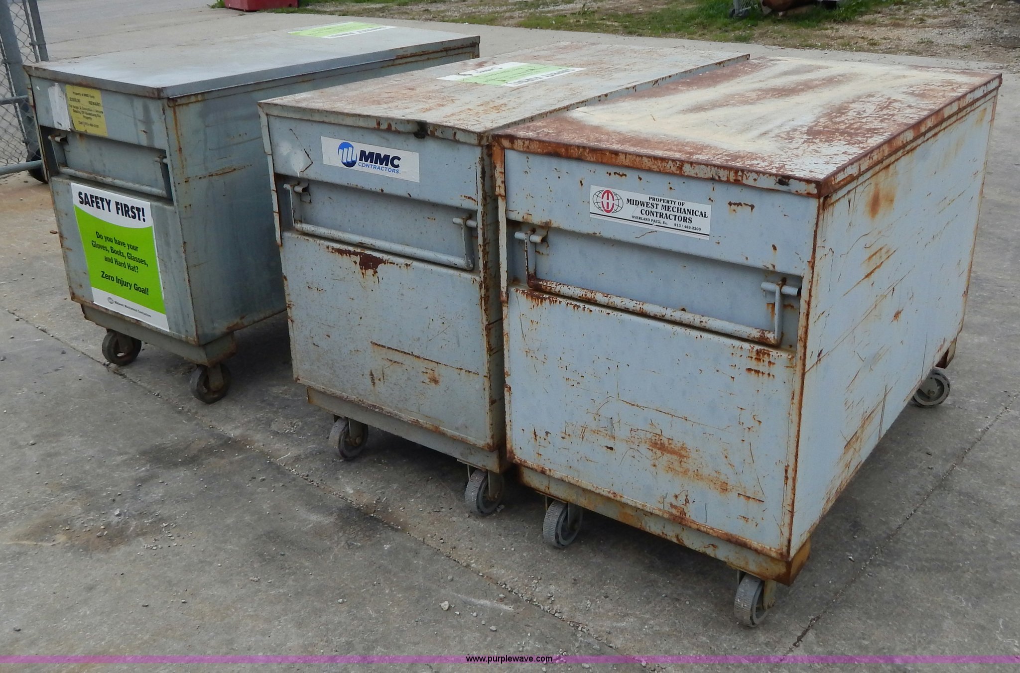 Purple Wave is selling a used Tools in Missouri. This item is a (3) Greenlee flat top job boxes with the following: 60"L x 30"W x 33"H, 34.5 cu. ft. capacity