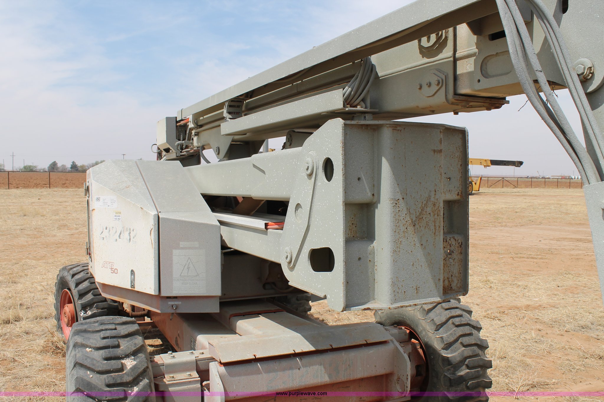 1997 Snorkel ATB-50F0 boom lift. 1,786 hours on meter, Ford BSG4111 6005-1 four cylinder gas engine, Four wheel drive, 50' height, 72" x 30" basket, Ground and basket controls, 14-17.5 tires, Needs fuel pump and wheel motor repair, Serial 974840. 11737 Hwy 62. Wolfforth, TX 79382