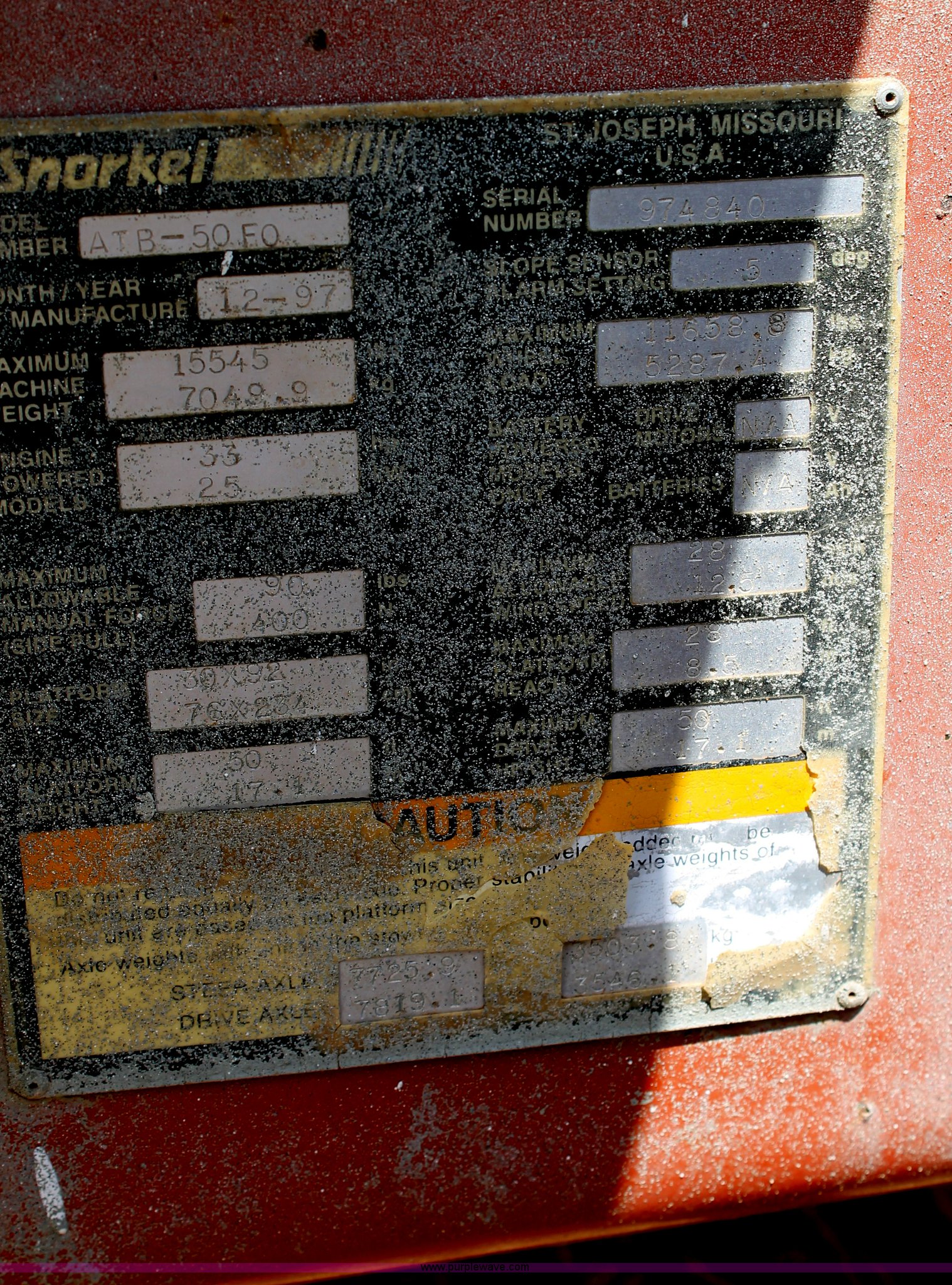 1997 Snorkel ATB-50F0 boom lift has sold in Wolfforth, Texas for $8910. Item C3804 sold on May 15th, 2014.