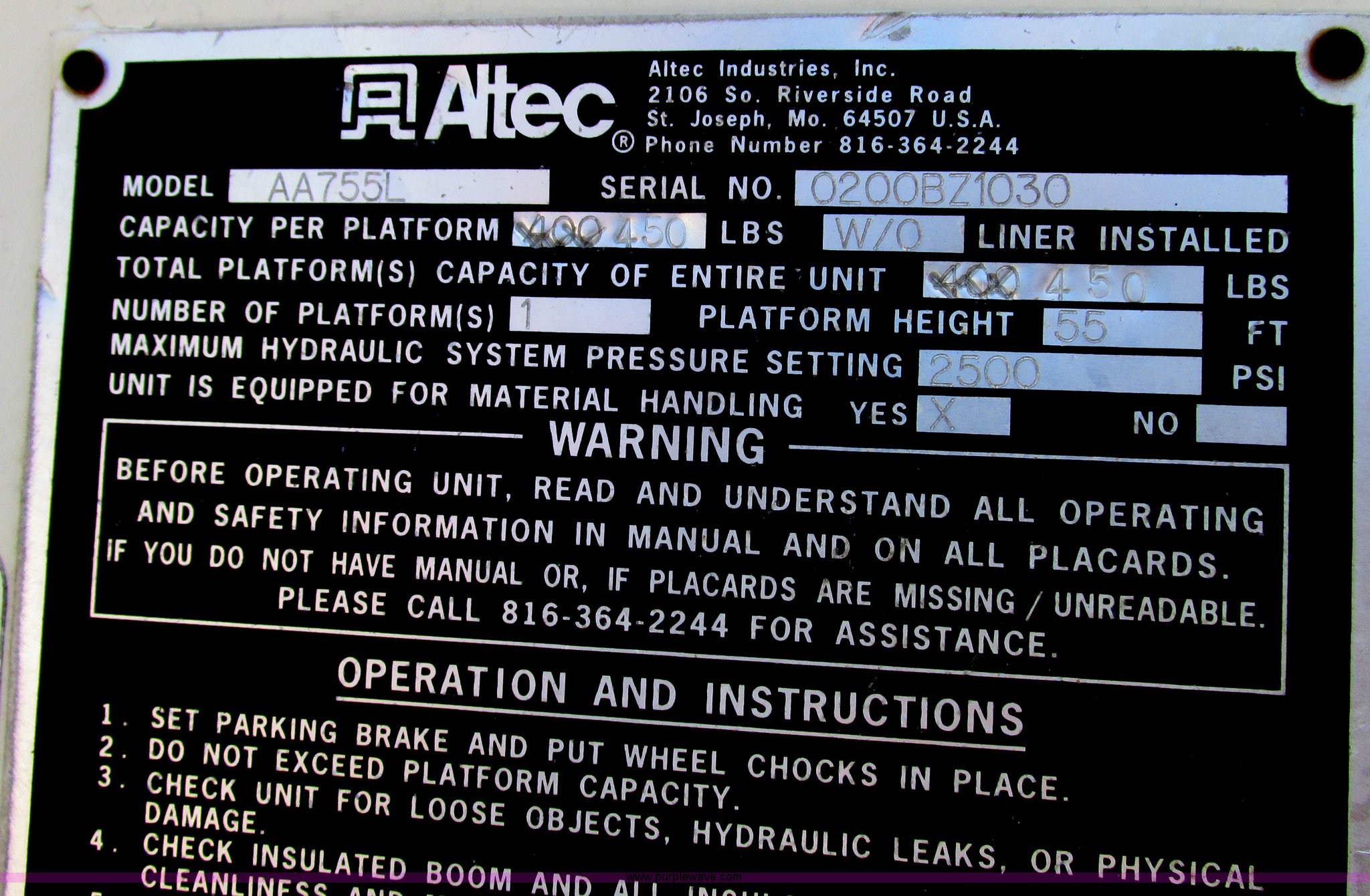 Take a look at this used Altec man lift being sold on May 15th, 2014 in the SOLD! May 15 Aggregate and Construction Equipment Auction made by Altec. Take a look at all of the item information below or take a look at similar auctions for Truck Parts and Acces..