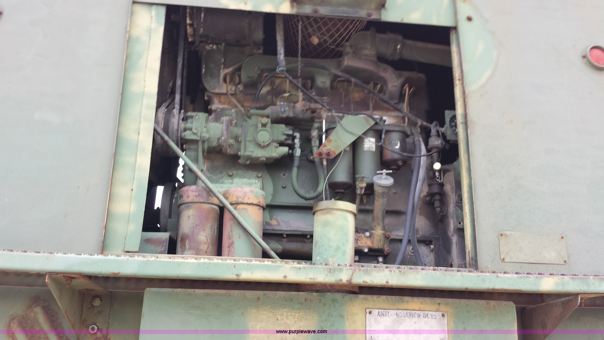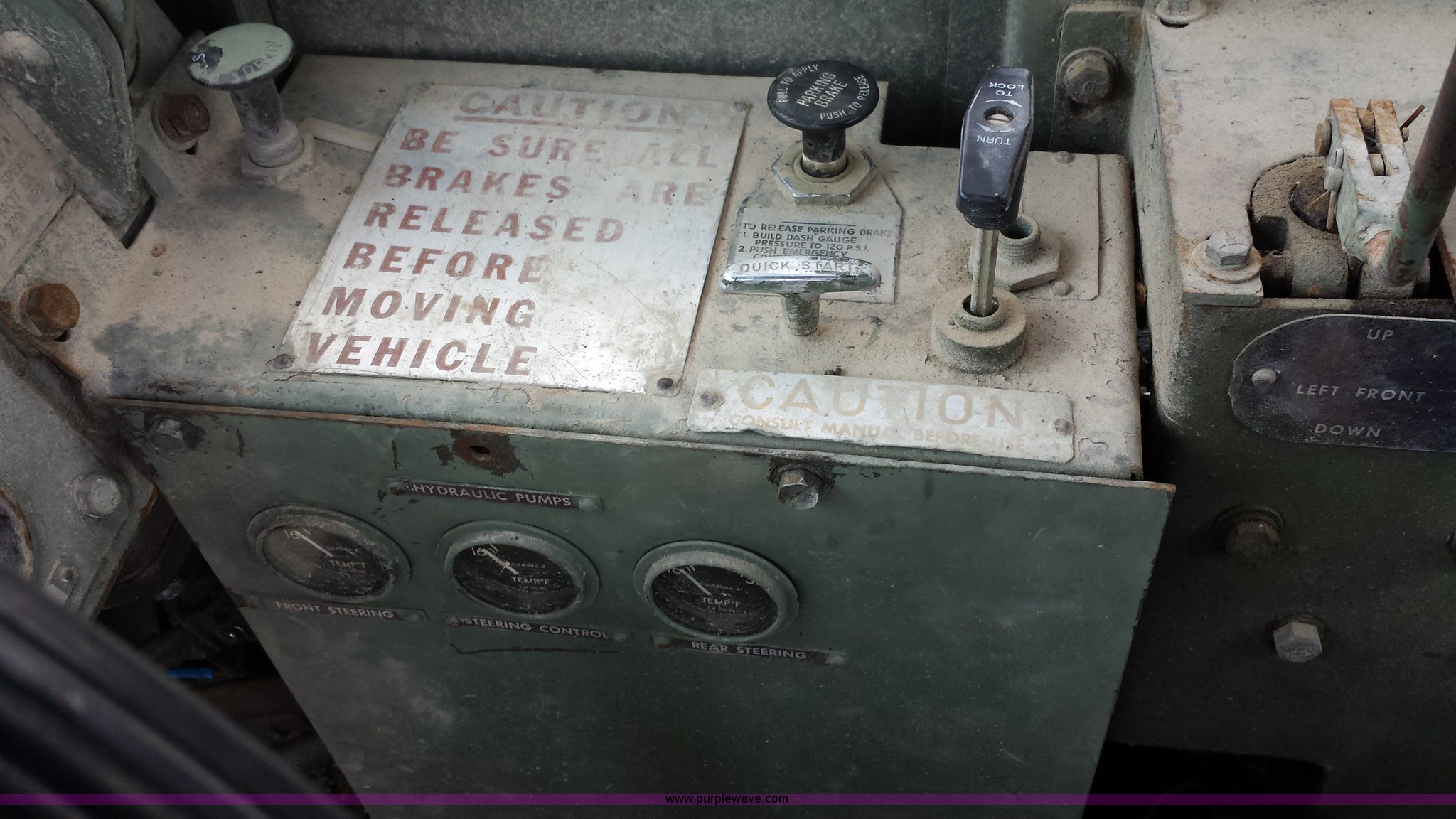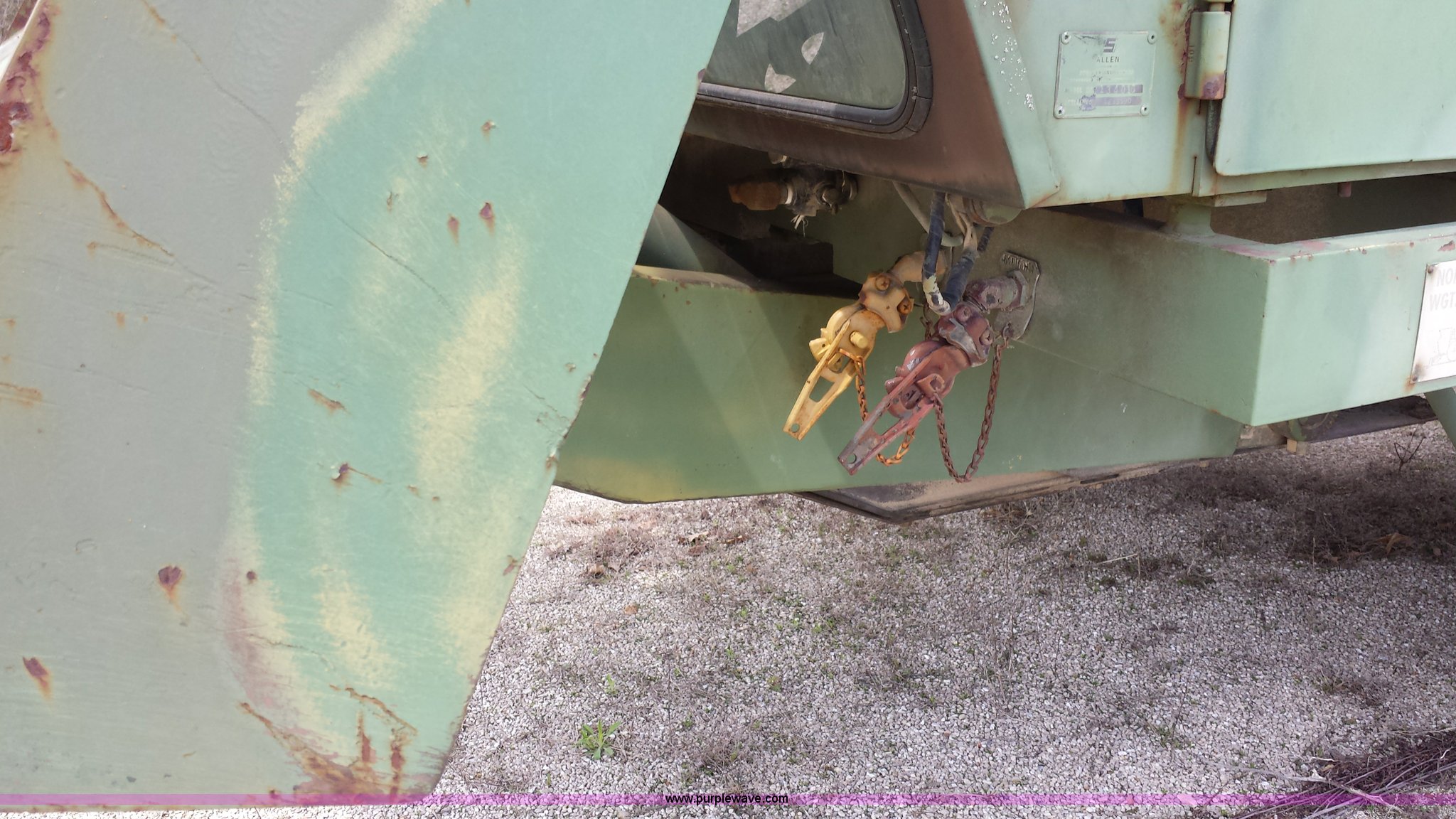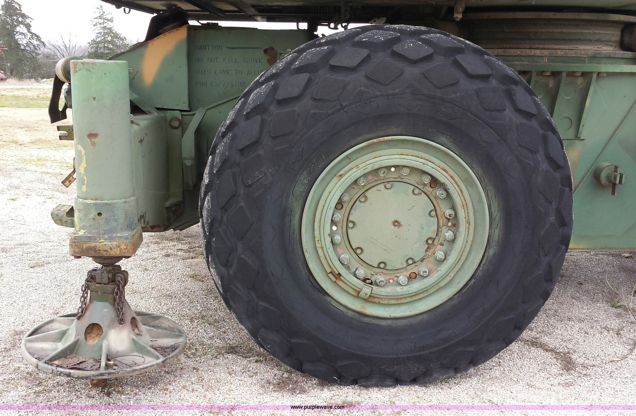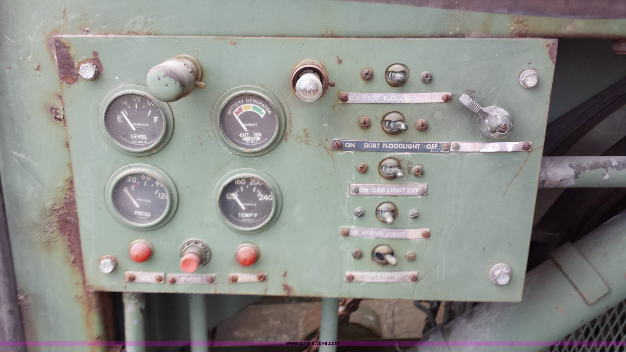Purple Wave is selling a used Truck Crane in Missouri. This item is a American 2380 20 ton military crane with the following: 339 actual hours on carrier, 287 actual hours on crane, Cummins 265 C.I.D V8 diesel carrier engine, Cummins inline six cylinder diesel crane engine, 36'L boom, 5/8" cable with double drum, 20 ton shive block, 126" knock down blade, 360 degree continuous pivot, (4) hydraulic outriggers, Rear pintle hitch, Trailer wiring, Air brakes for trailer, 26.5-25 tires, 61,500 lbs. base operating weight, Serial GS9139W