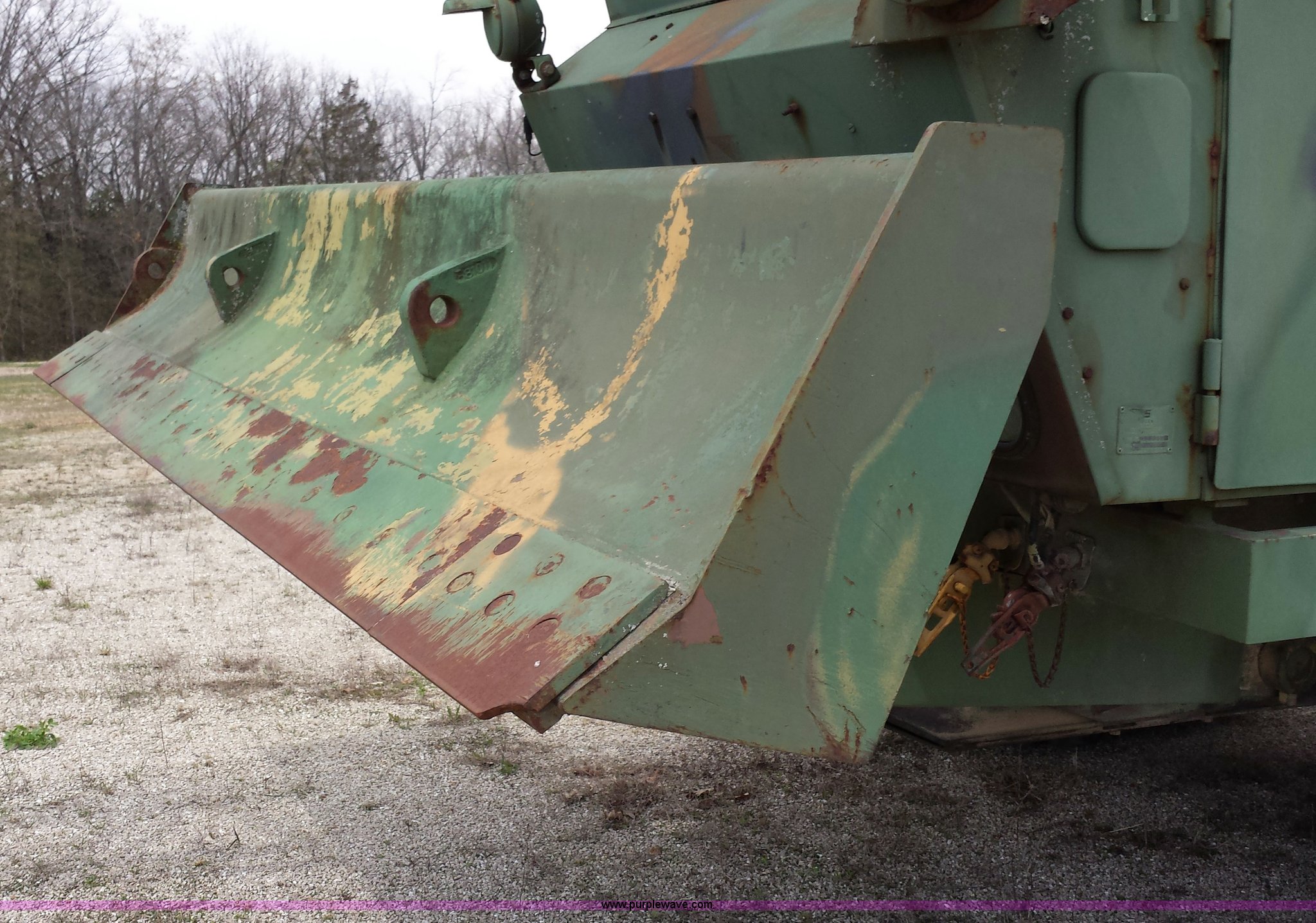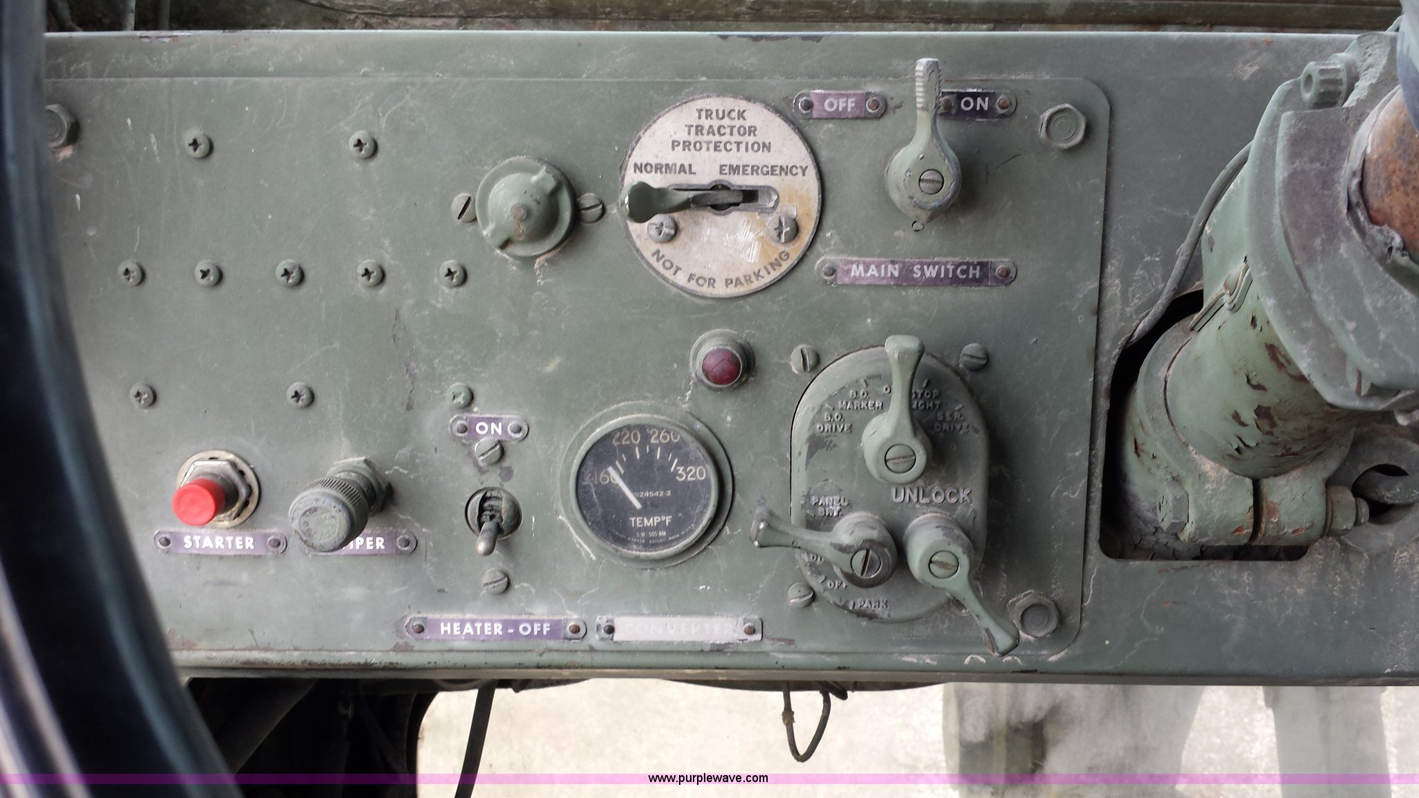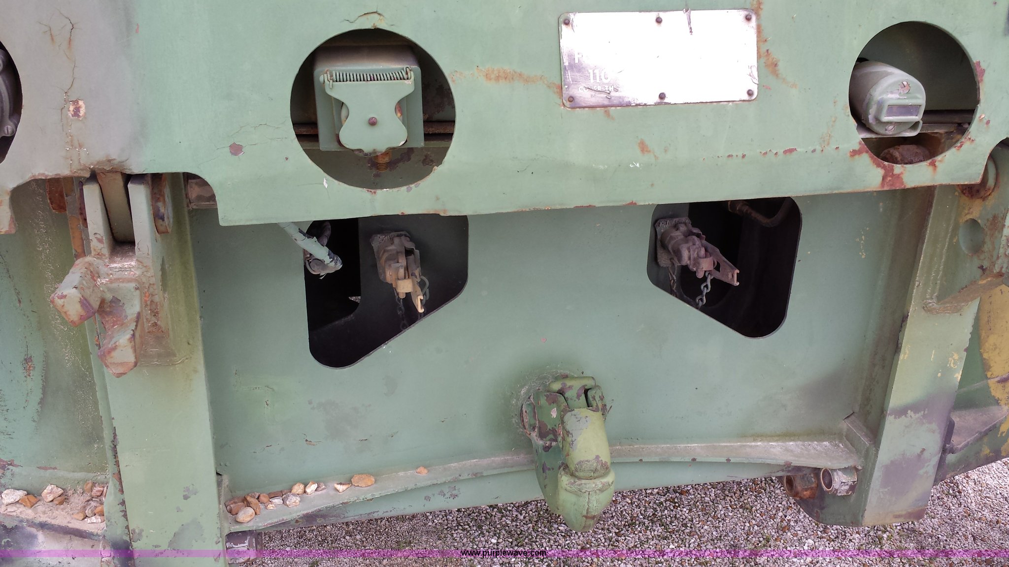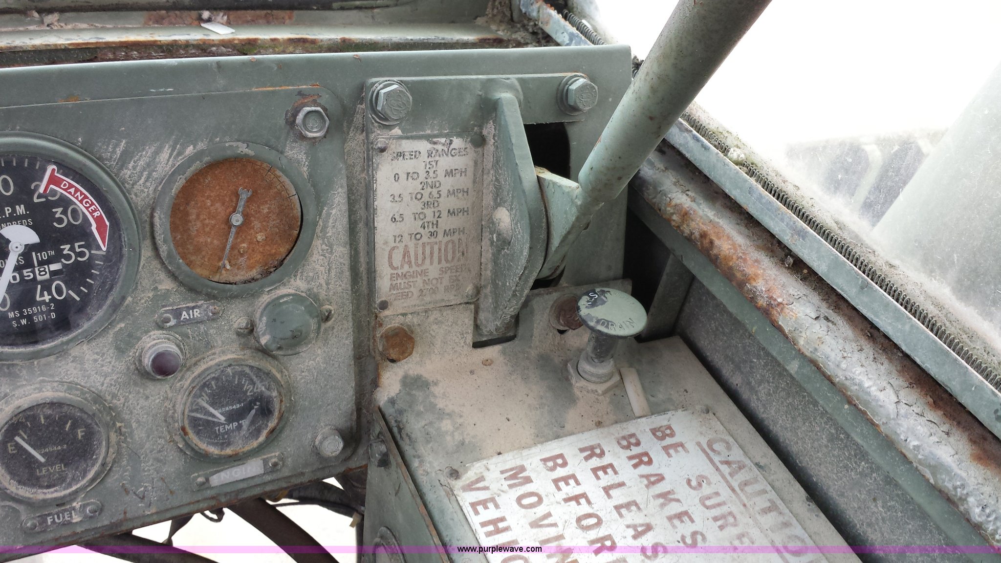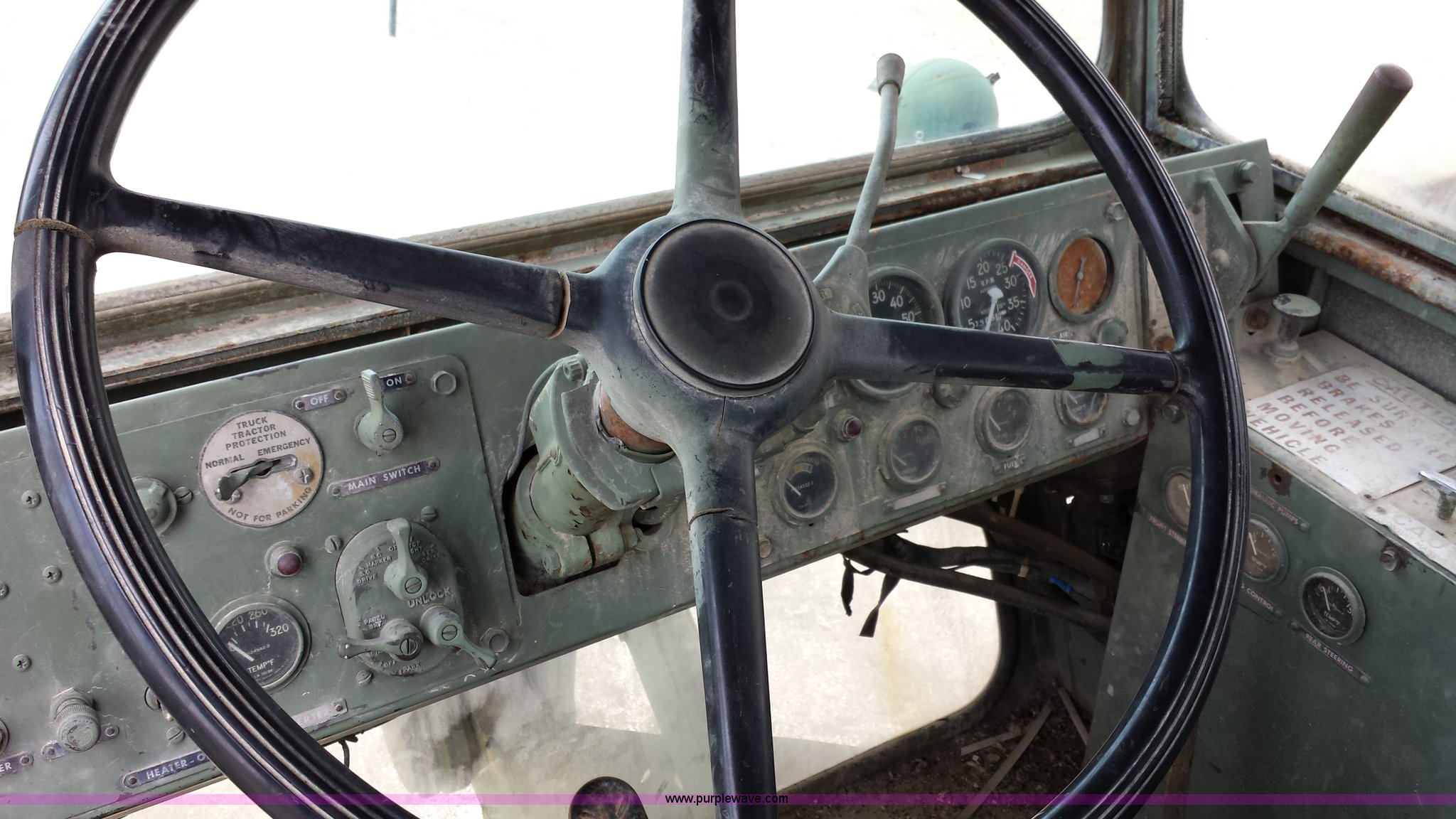 Purple Wave is selling a used Truck Crane in Missouri. This item is a American 2380 20 ton military crane with the following: 339 actual hours on carrier, 287 actual hours on crane, Cummins 265 C.I.D V8 diesel carrier engine, Cummins inline six cylinder diesel crane engine, 36'L boom, 5/8" cable with double drum, 20 ton shive block, 126" knock down blade, 360 degree continuous pivot, (4) hydraulic outriggers, Rear pintle hitch, Trailer wiring, Air brakes for trailer, 26.5-25 tires, 61,500 lbs. base operating weight, Serial GS9139W