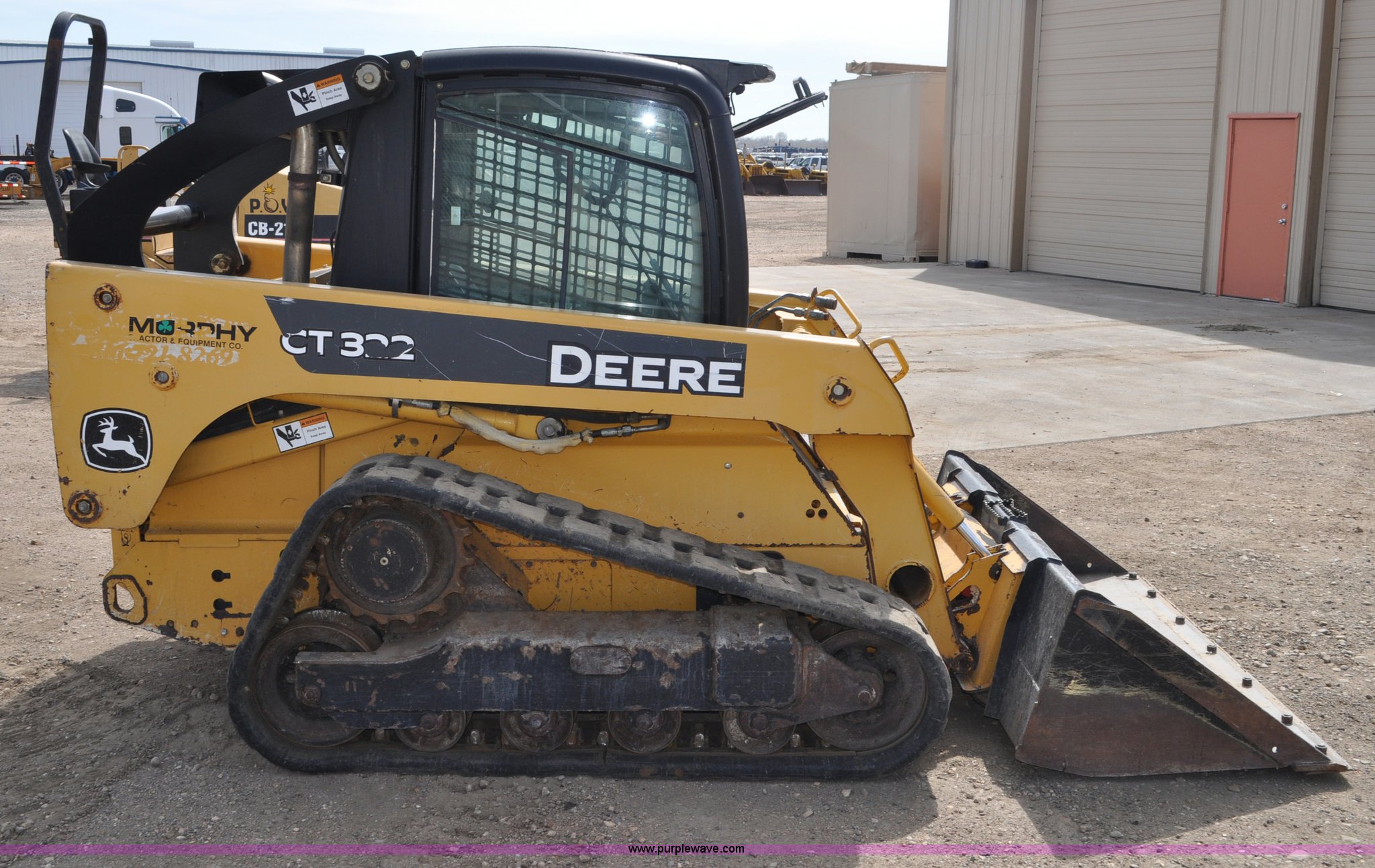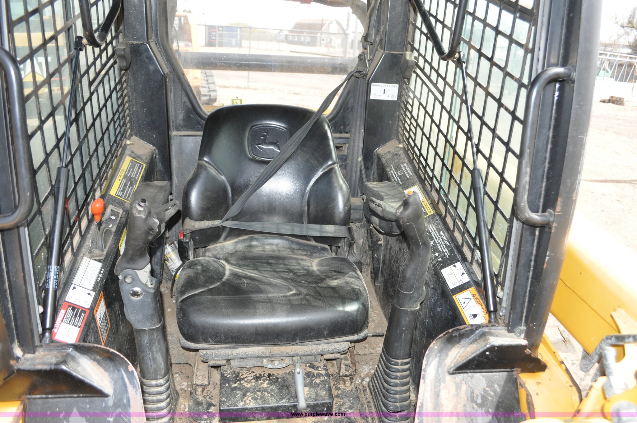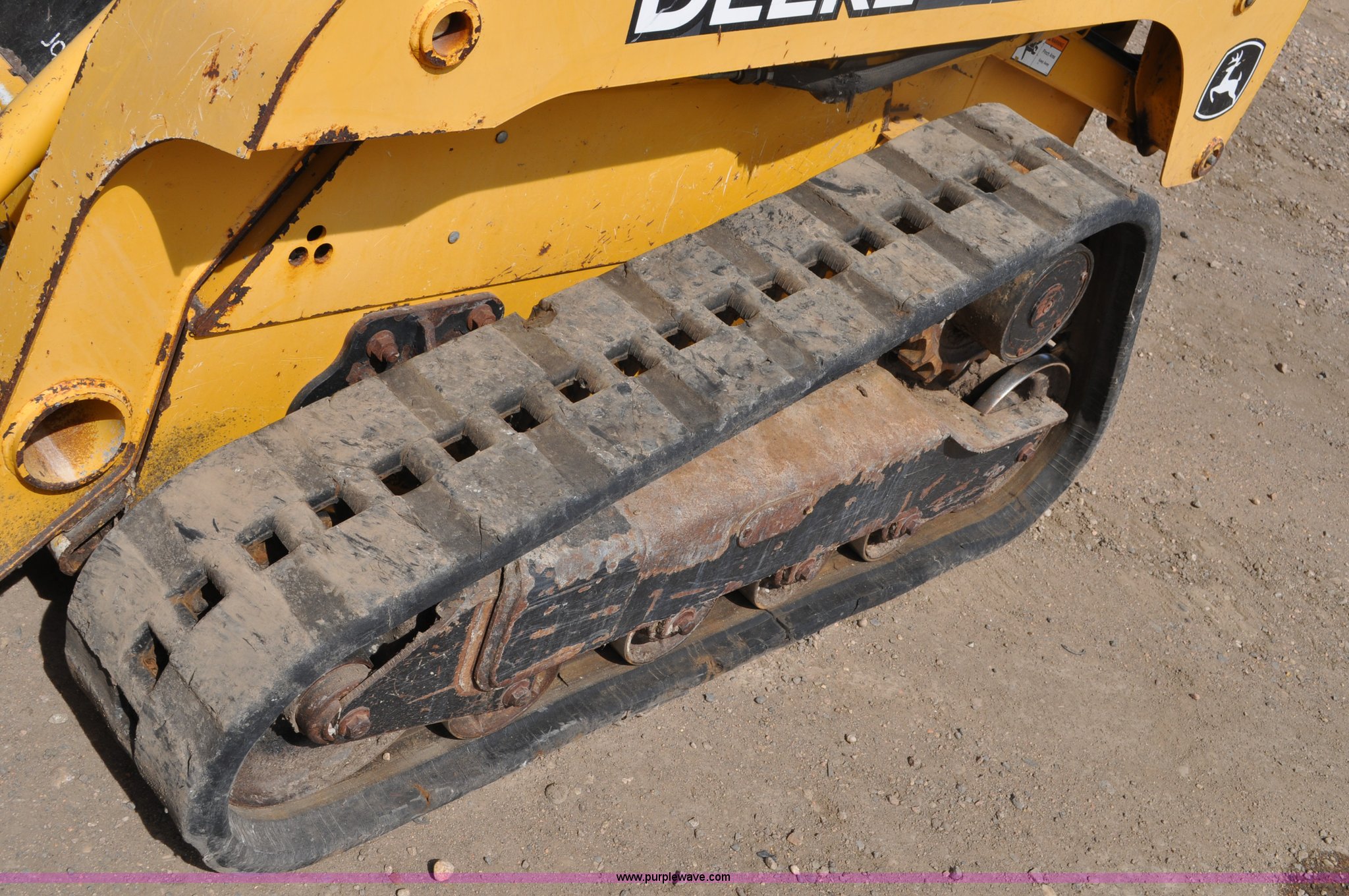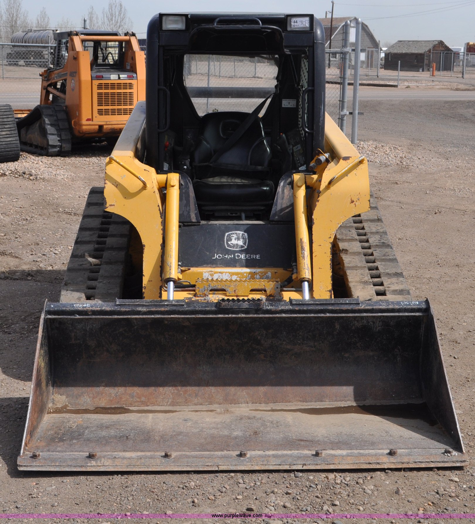Purple Wave is selling a used Tracked Skid Steer Loader in Colorado. This item is a 2009 John Deere CT322 skid steer with the following: 1,746 hours on meter, John Deere 4024T four cylinder turbo diesel engine, 66 HP, Hydrostatic transmission, Enclosed cab, AC and heat, Wipers, Joystick bucket controls, Spring suspension seat, Auxiliary hydraulics, John Deere C72 Worksite 70"W bucket, Bolt-on cutting edge, Front and rear work lights, Four bottom rollers, 12"W track pads, Serial T0322TB116613