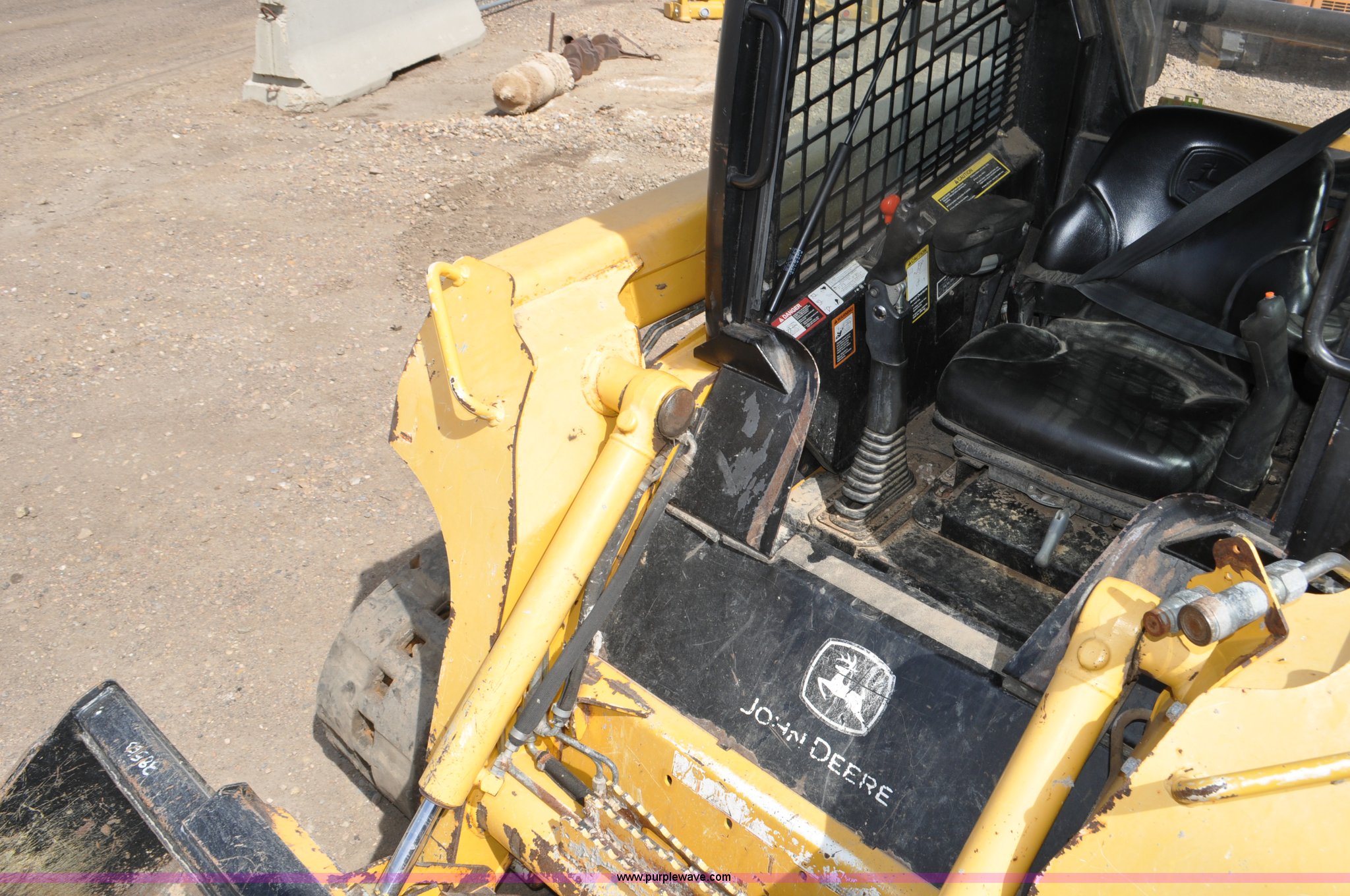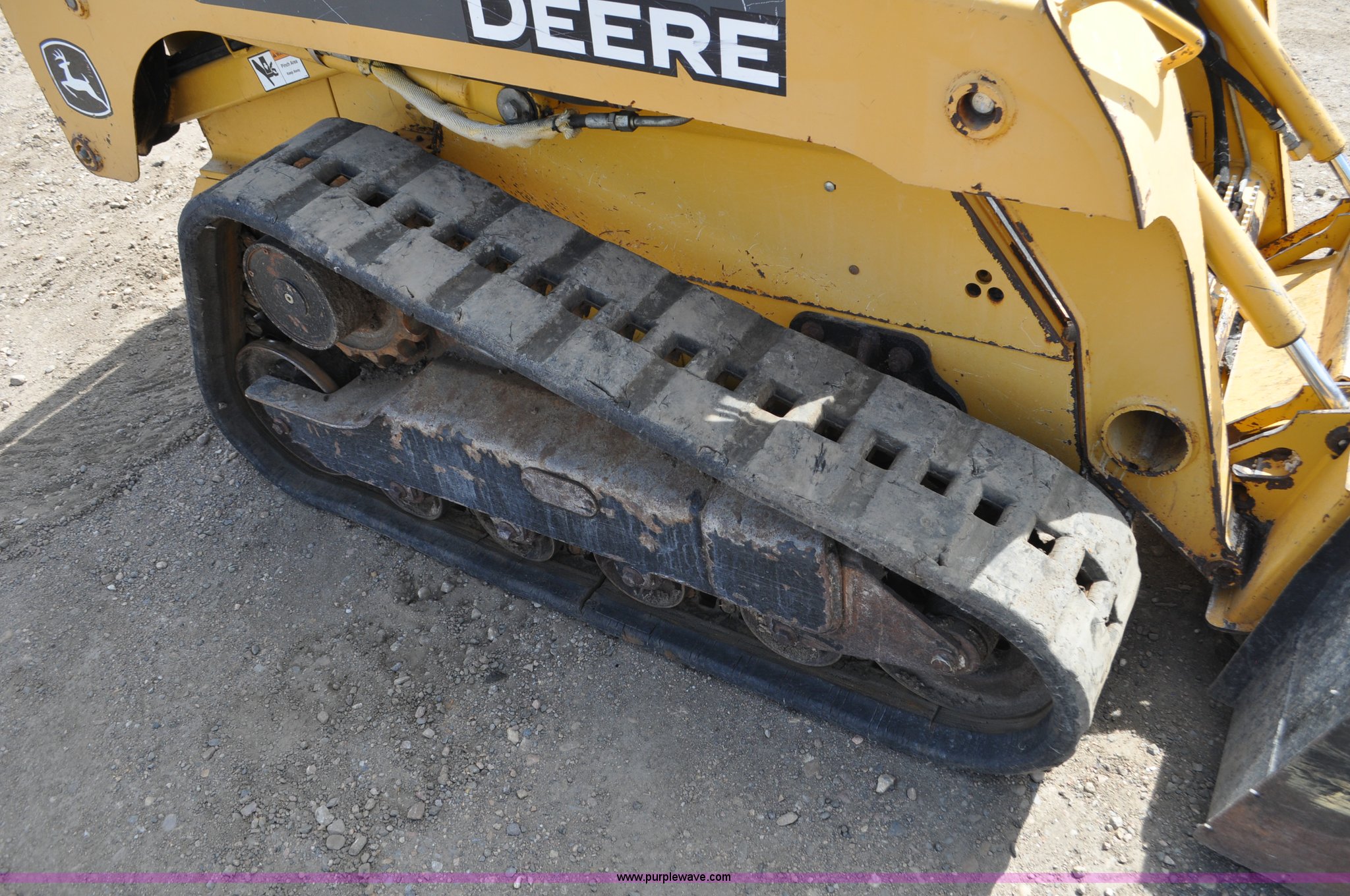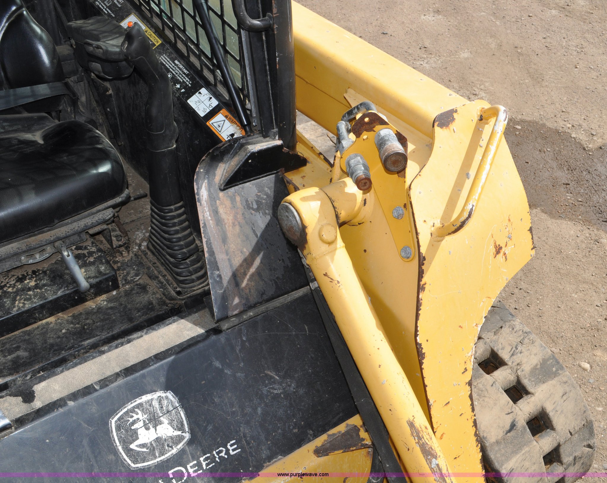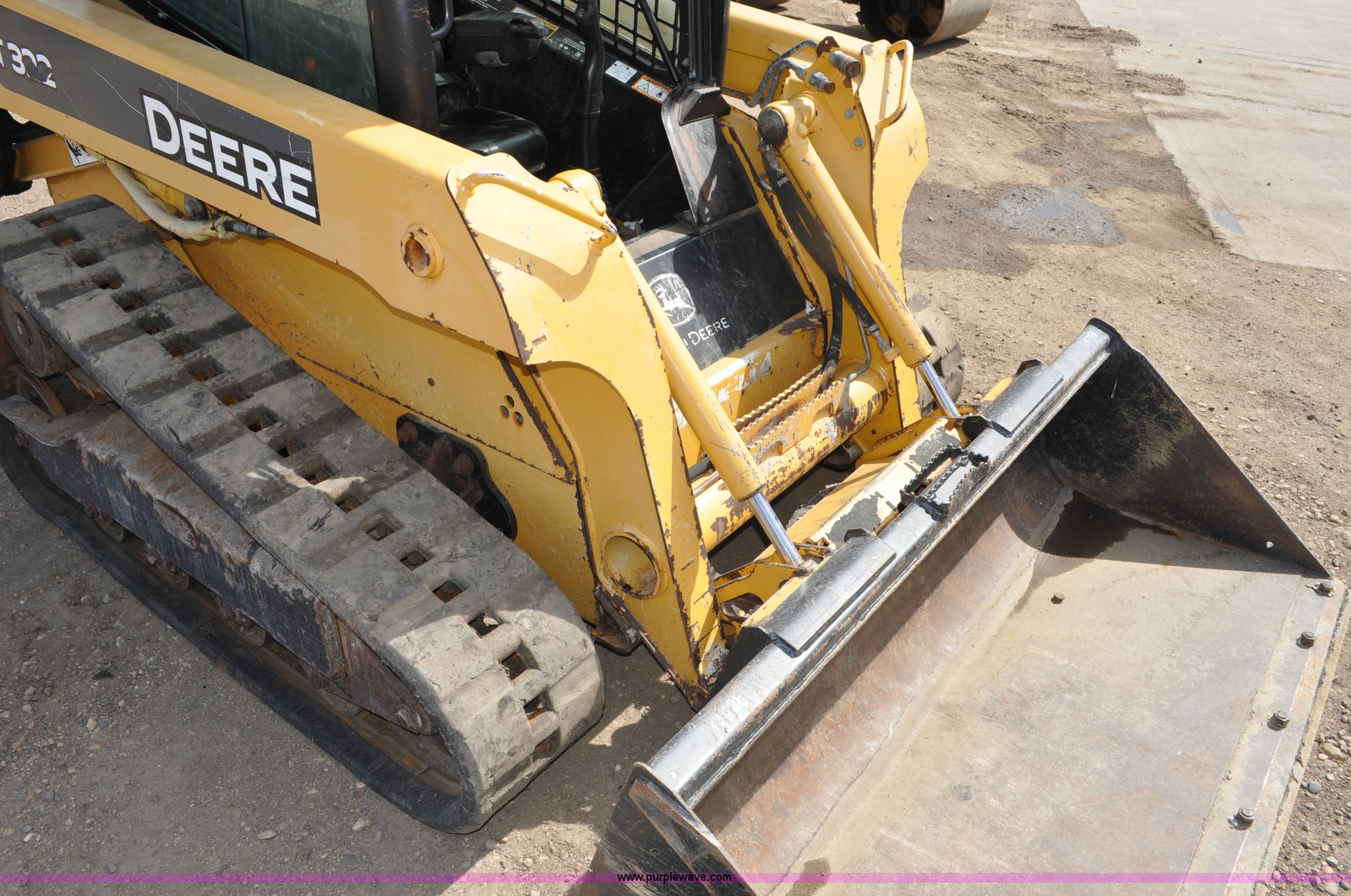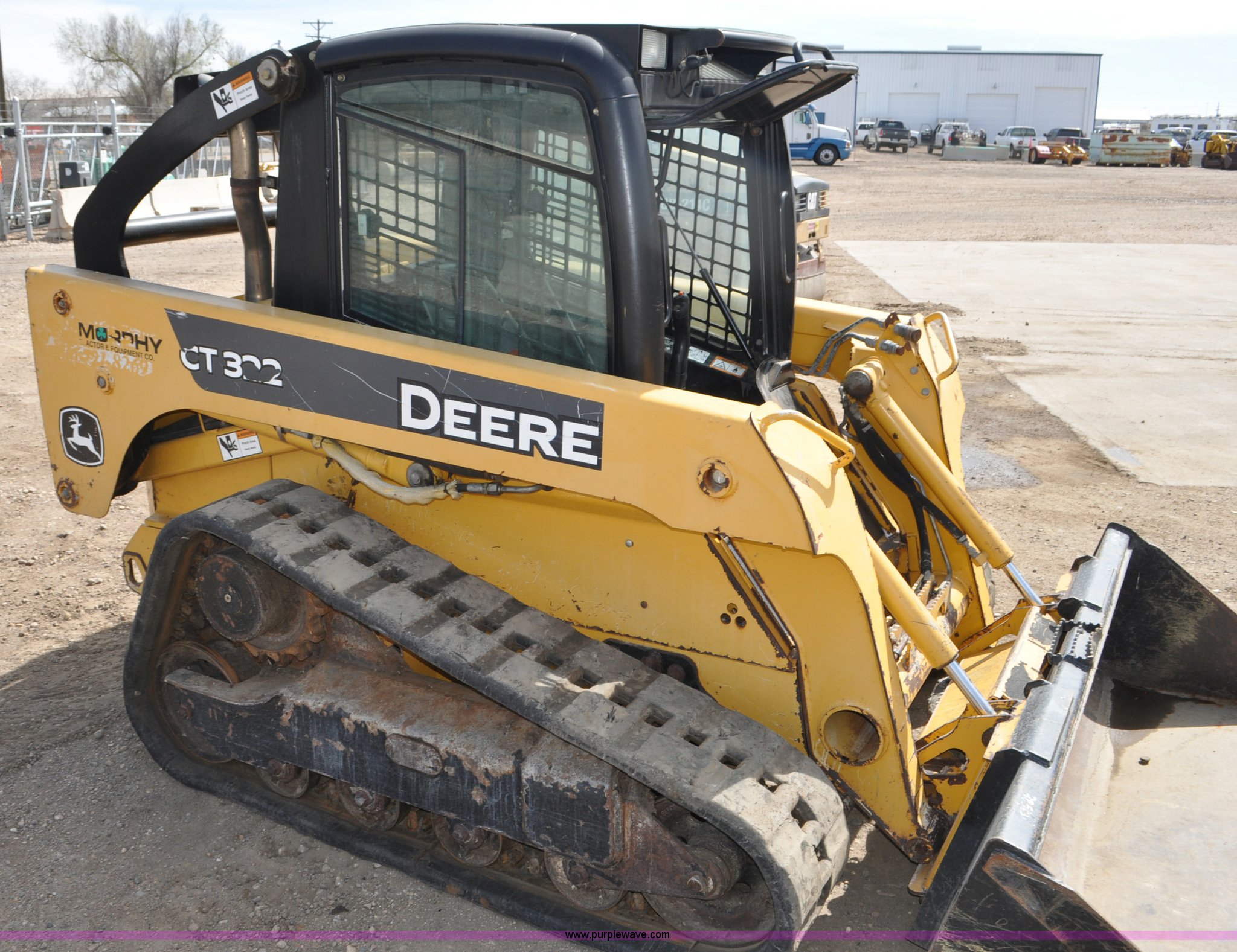 Purple Wave is selling a used Tracked Skid Steer Loader in Colorado. This item is a 2009 John Deere CT322 skid steer with the following: 1,746 hours on meter, John Deere 4024T four cylinder turbo diesel engine, 66 HP, Hydrostatic transmission, Enclosed cab, AC and heat, Wipers, Joystick bucket controls, Spring suspension seat, Auxiliary hydraulics, John Deere C72 Worksite 70"W bucket, Bolt-on cutting edge, Front and rear work lights, Four bottom rollers, 12"W track pads, Serial T0322TB116613