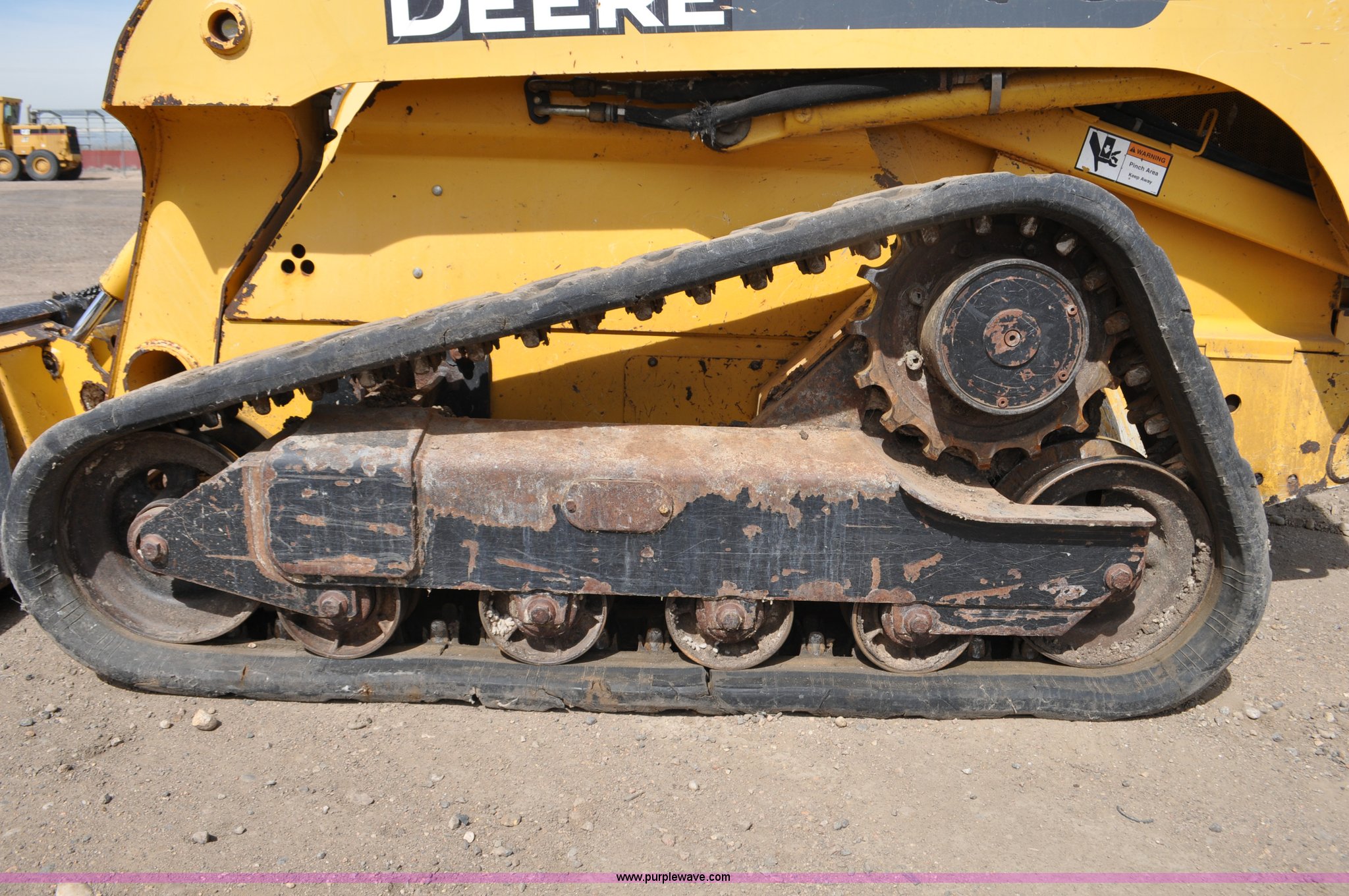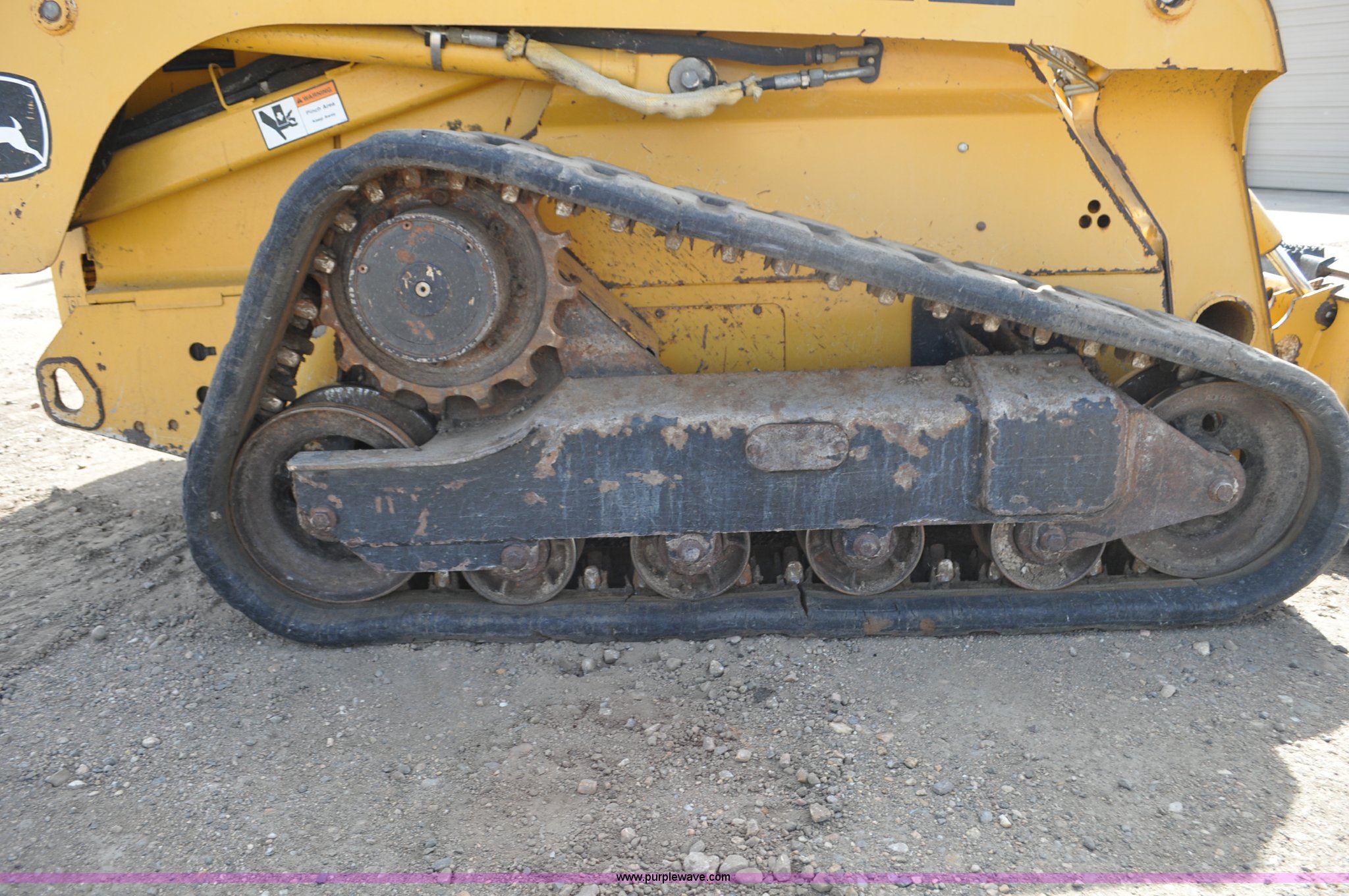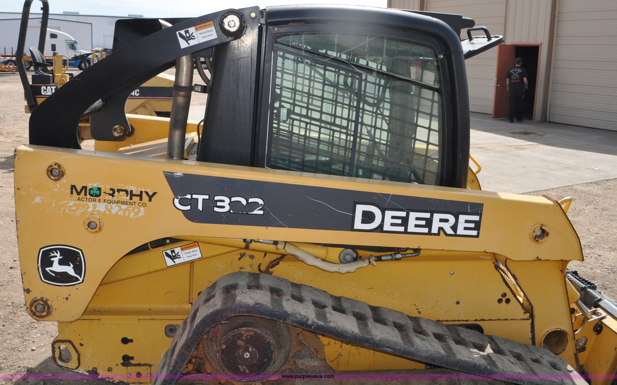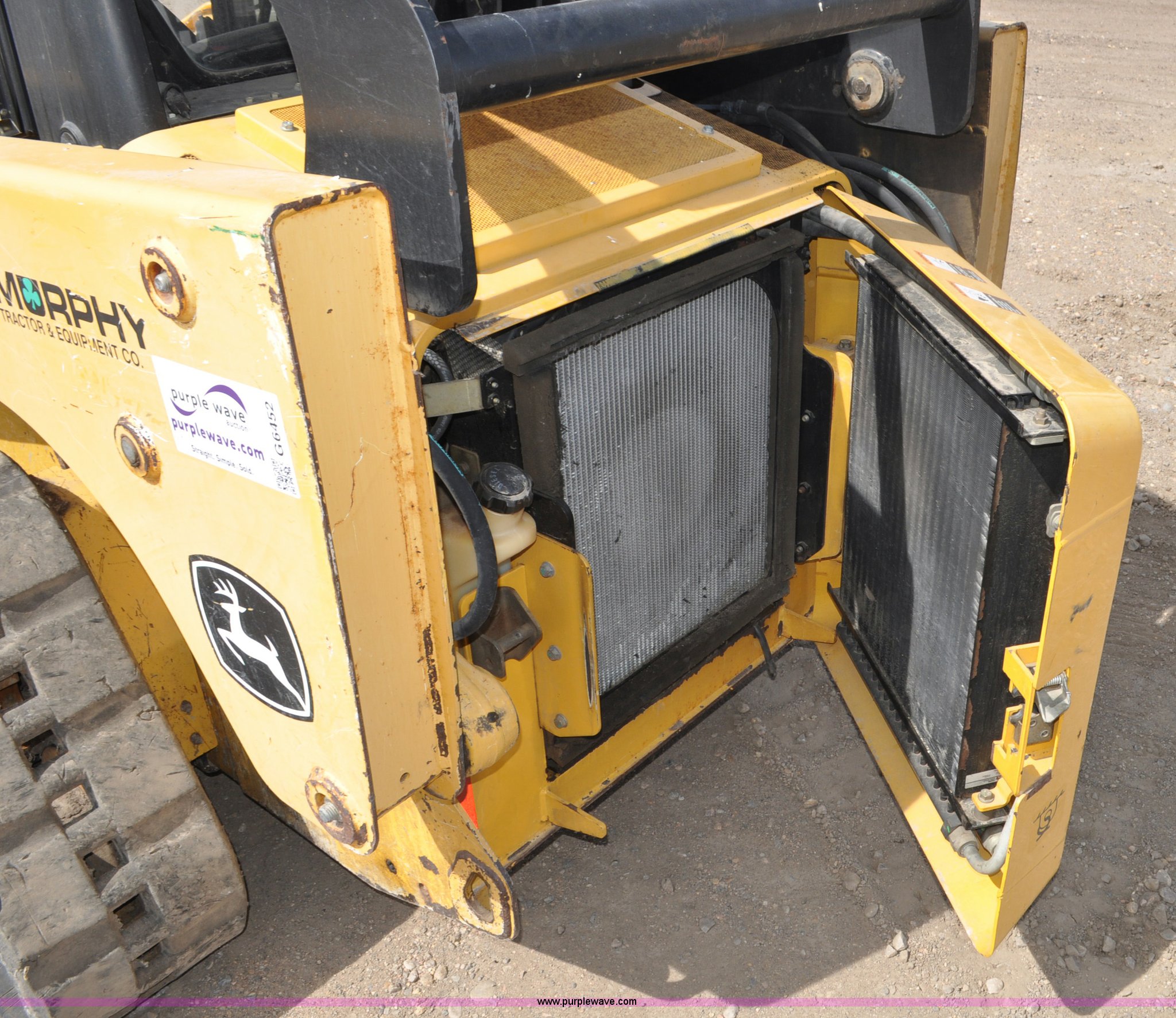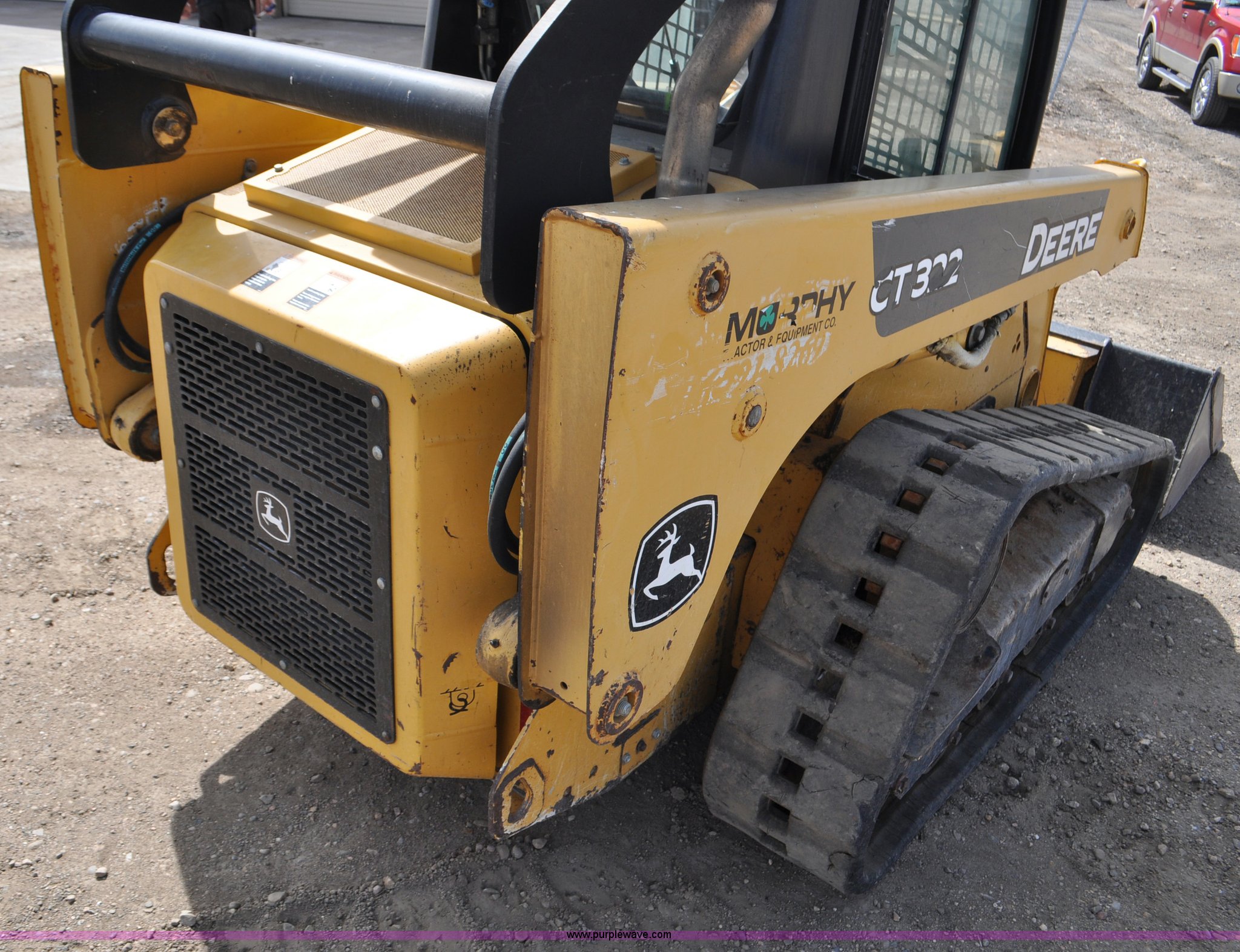 Purple Wave is selling a used Tracked Skid Steer Loader in Colorado. This item is a 2009 John Deere CT322 skid steer with the following: 1,746 hours on meter, John Deere 4024T four cylinder turbo diesel engine, 66 HP, Hydrostatic transmission, Enclosed cab, AC and heat, Wipers, Joystick bucket controls, Spring suspension seat, Auxiliary hydraulics, John Deere C72 Worksite 70"W bucket, Bolt-on cutting edge, Front and rear work lights, Four bottom rollers, 12"W track pads, Serial T0322TB116613