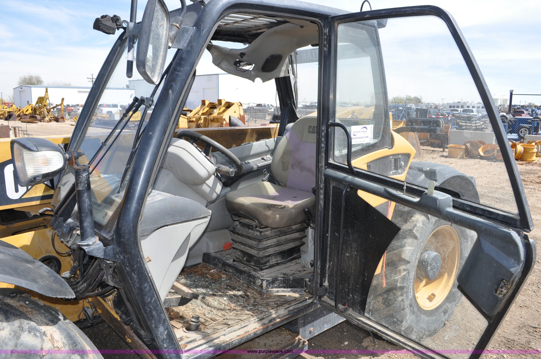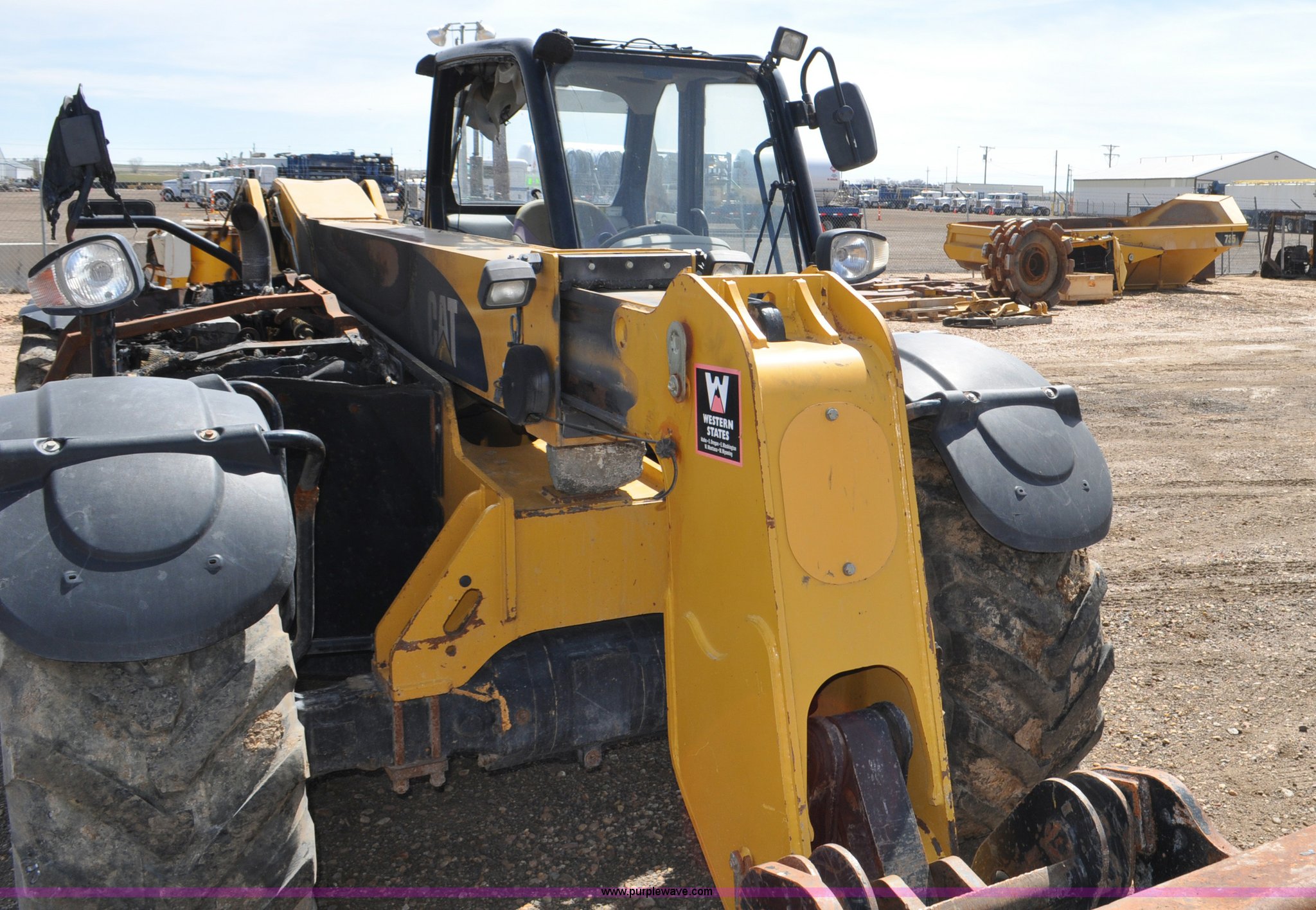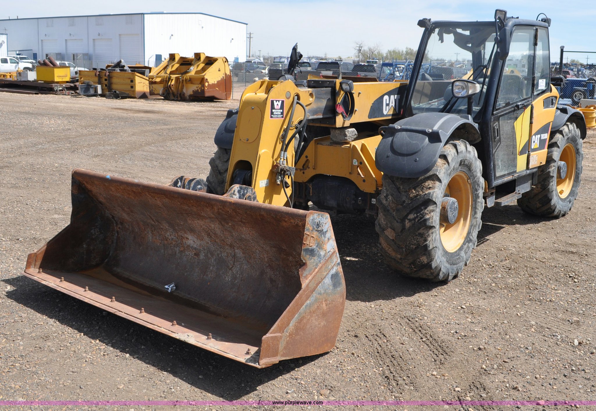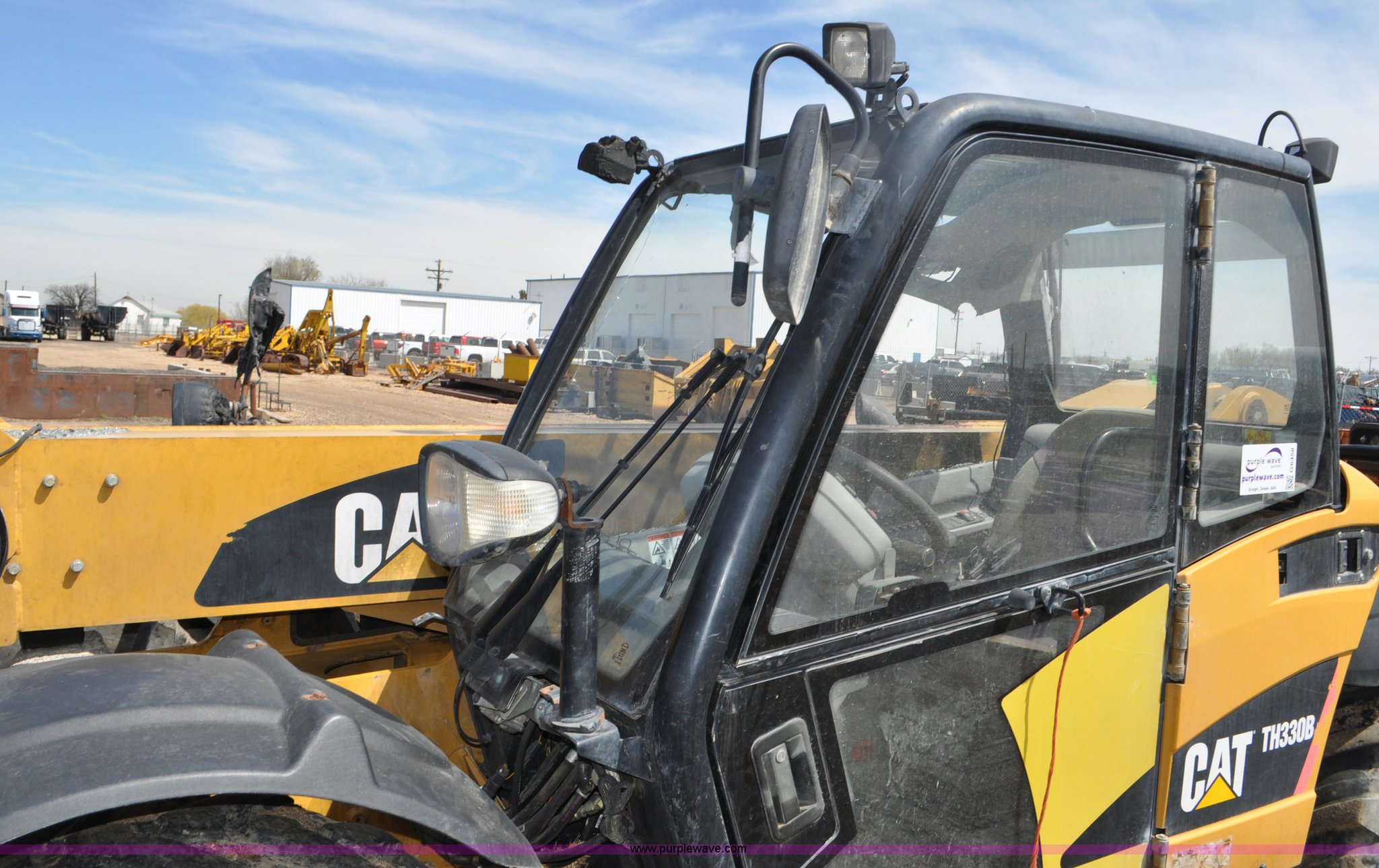 Purple Wave is selling a used Telehandler in Colorado. This item is a 2007 Caterpillar TH330B telehandler with the following: Approximately 2,000 hours, Caterpillar 3054E four cylinder diesel engine, Powershift transmission, 4F-3R gears, Four wheel drive, Locking differential, Cab, AC and heat, Air suspension seat, Crab steer, Circle steer, 7,000 lbs maximum lift capacity, 12.5' maximum reach, Single boom section, 92"W bucket, Bolt-on cutting edge, Quick attach, 160/70R24 tires, Engine burnt, Serial TBG00558