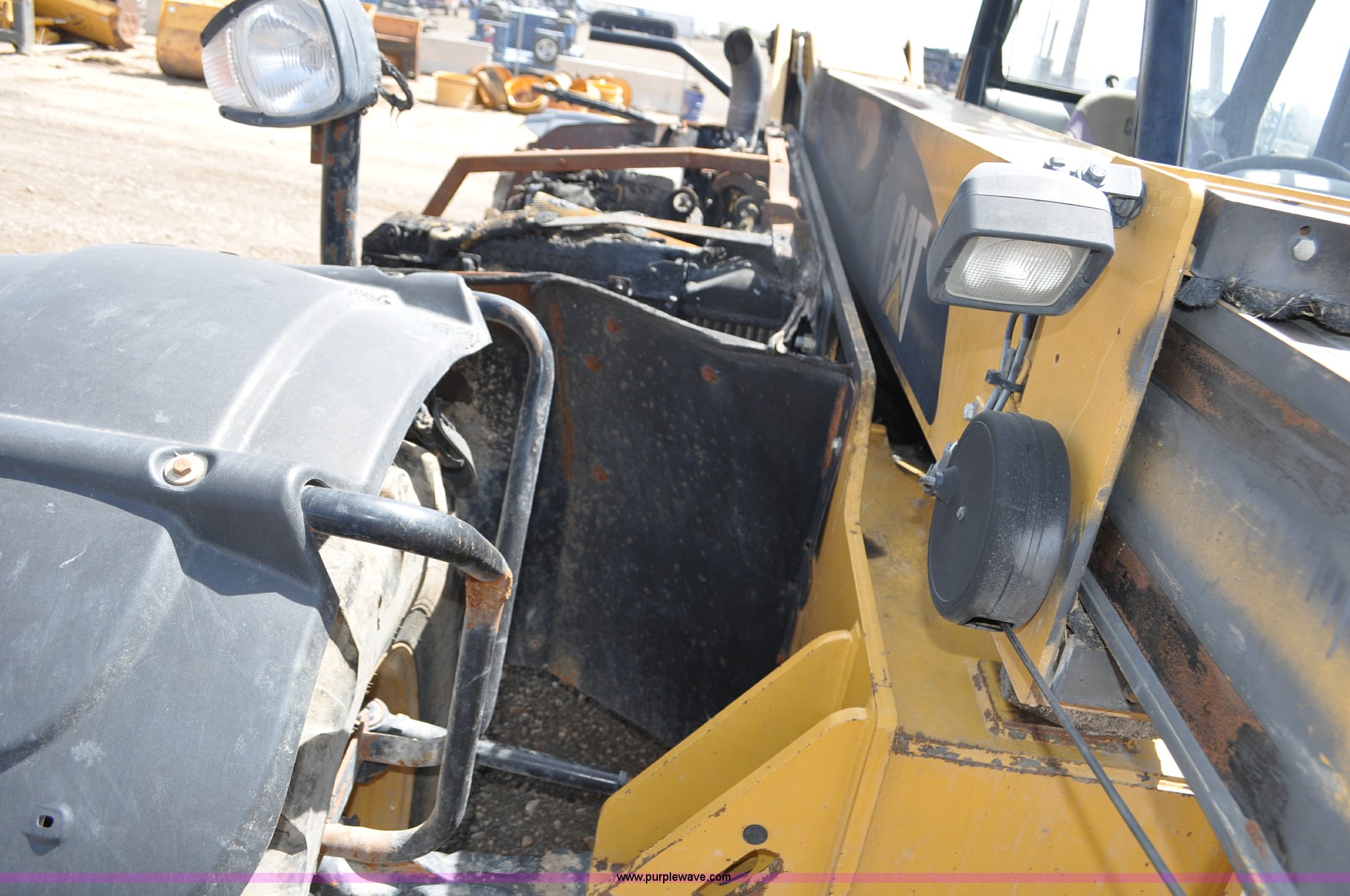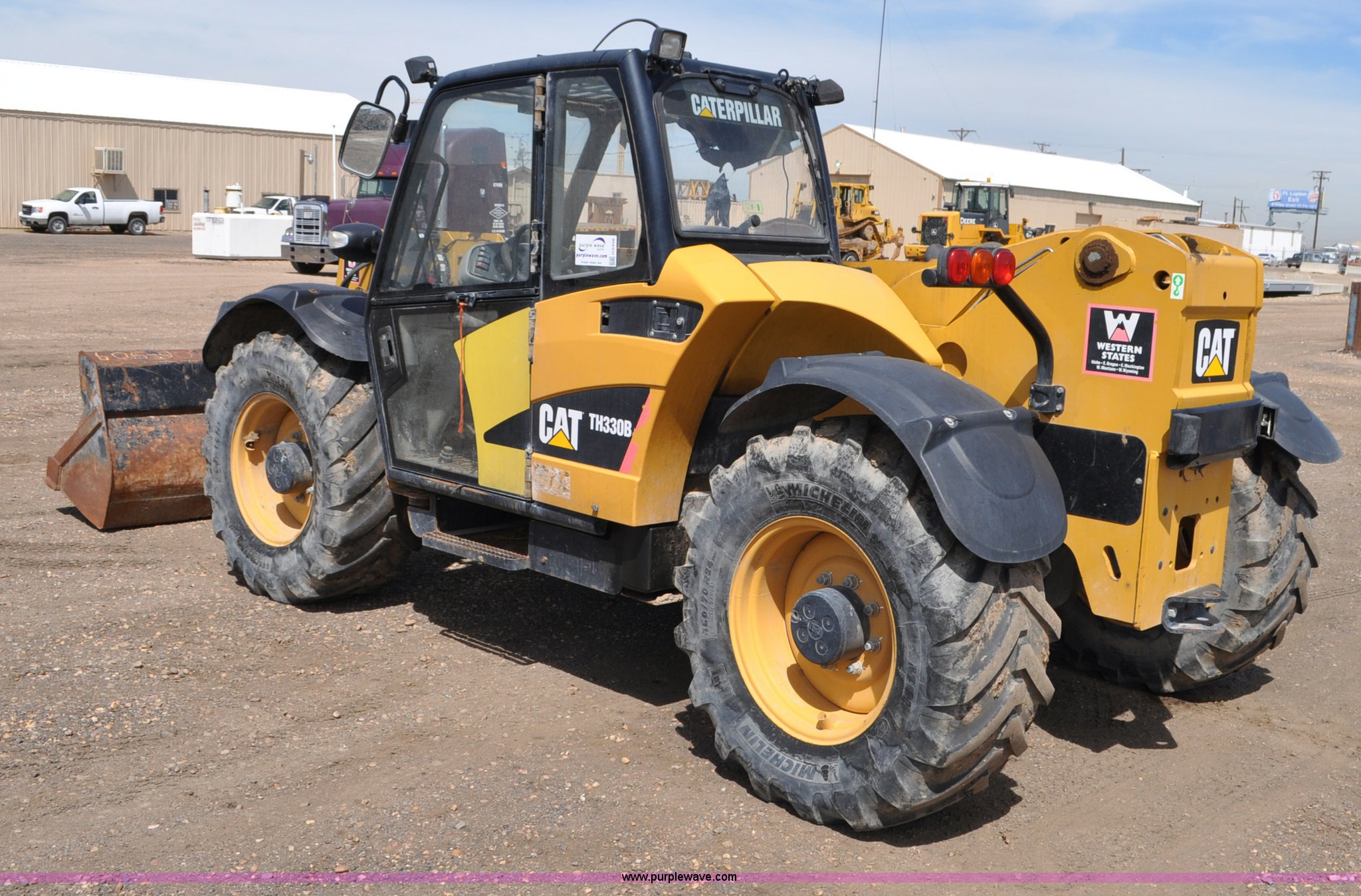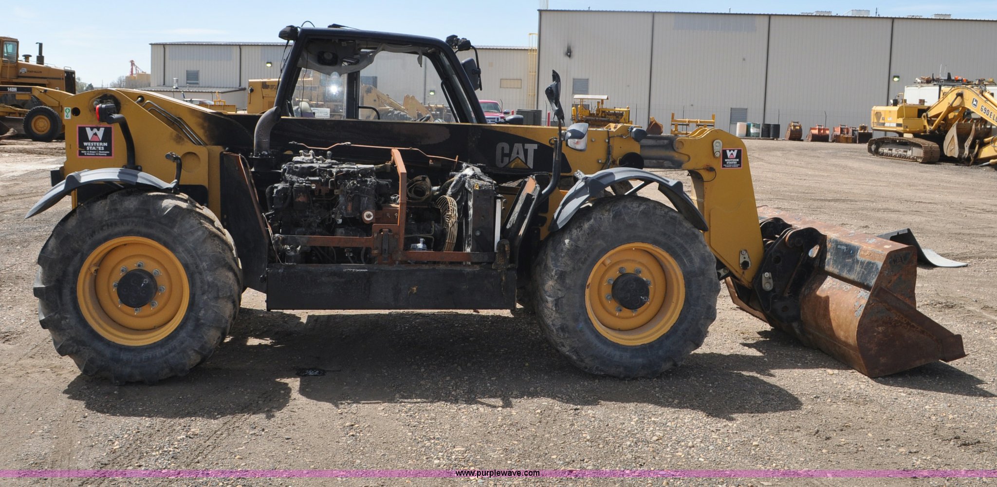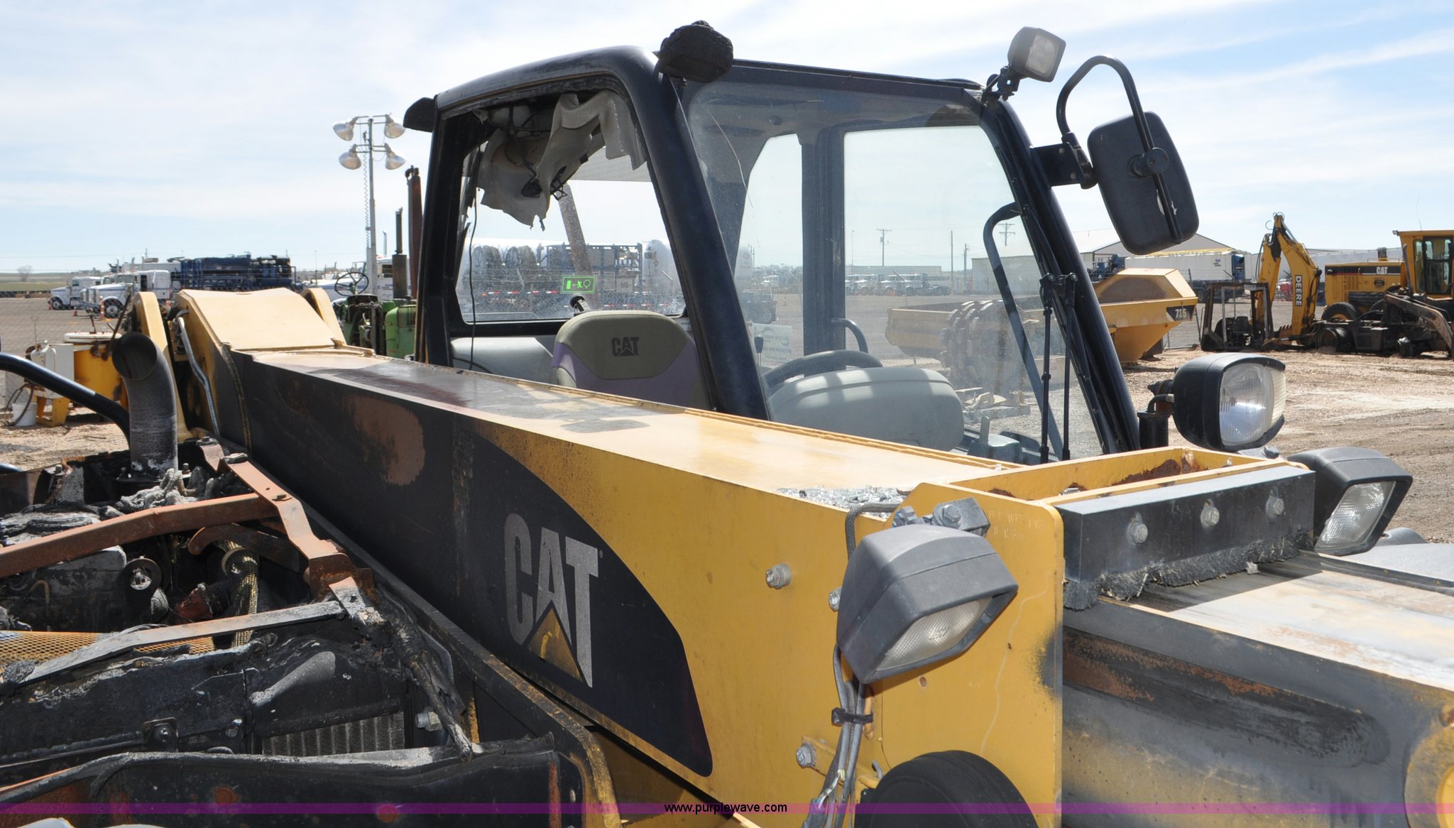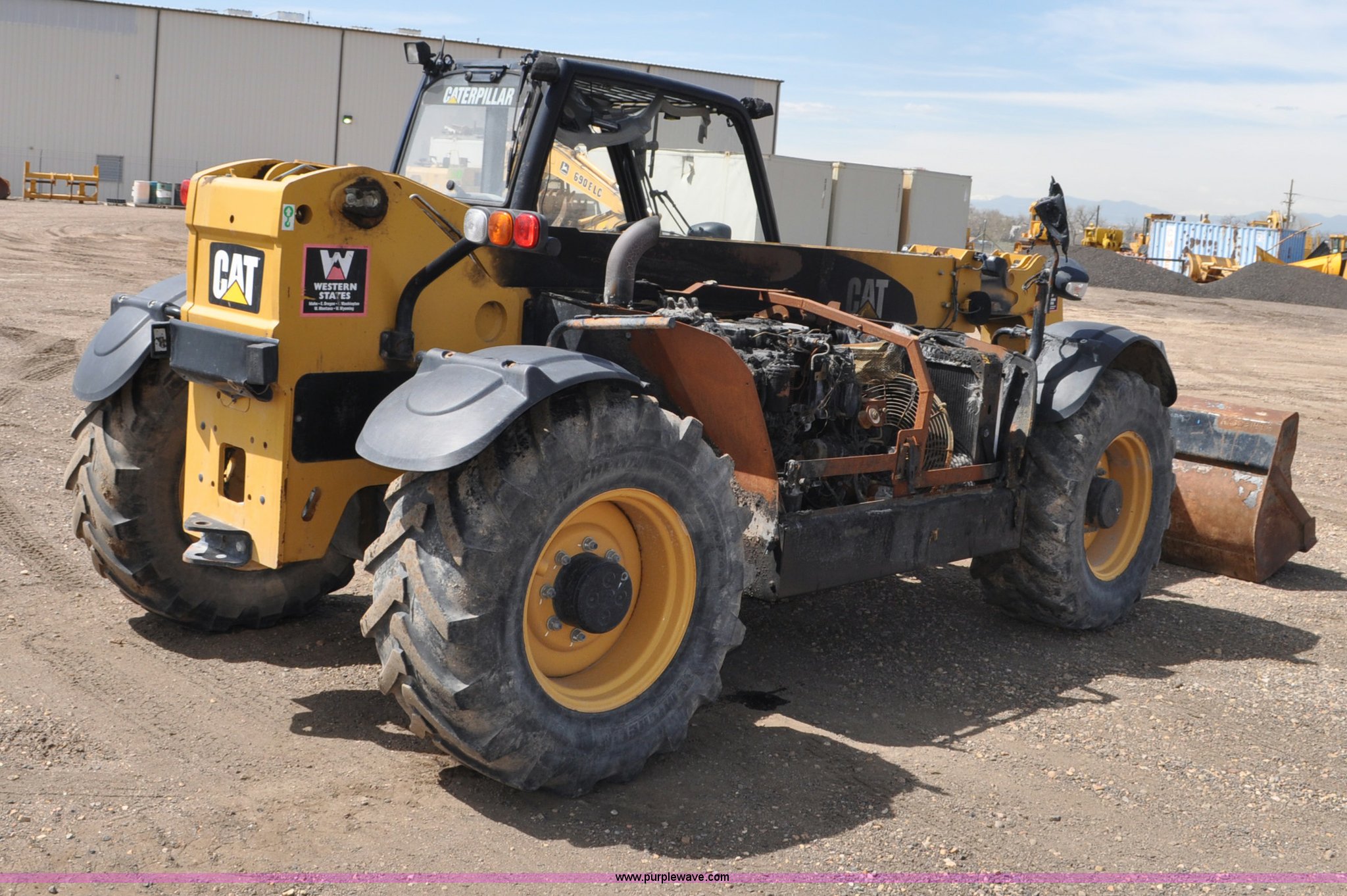 Purple Wave is selling a used Telehandler in Colorado. This item is a 2007 Caterpillar TH330B telehandler with the following: Approximately 2,000 hours, Caterpillar 3054E four cylinder diesel engine, Powershift transmission, 4F-3R gears, Four wheel drive, Locking differential, Cab, AC and heat, Air suspension seat, Crab steer, Circle steer, 7,000 lbs maximum lift capacity, 12.5' maximum reach, Single boom section, 92"W bucket, Bolt-on cutting edge, Quick attach, 160/70R24 tires, Engine burnt, Serial TBG00558