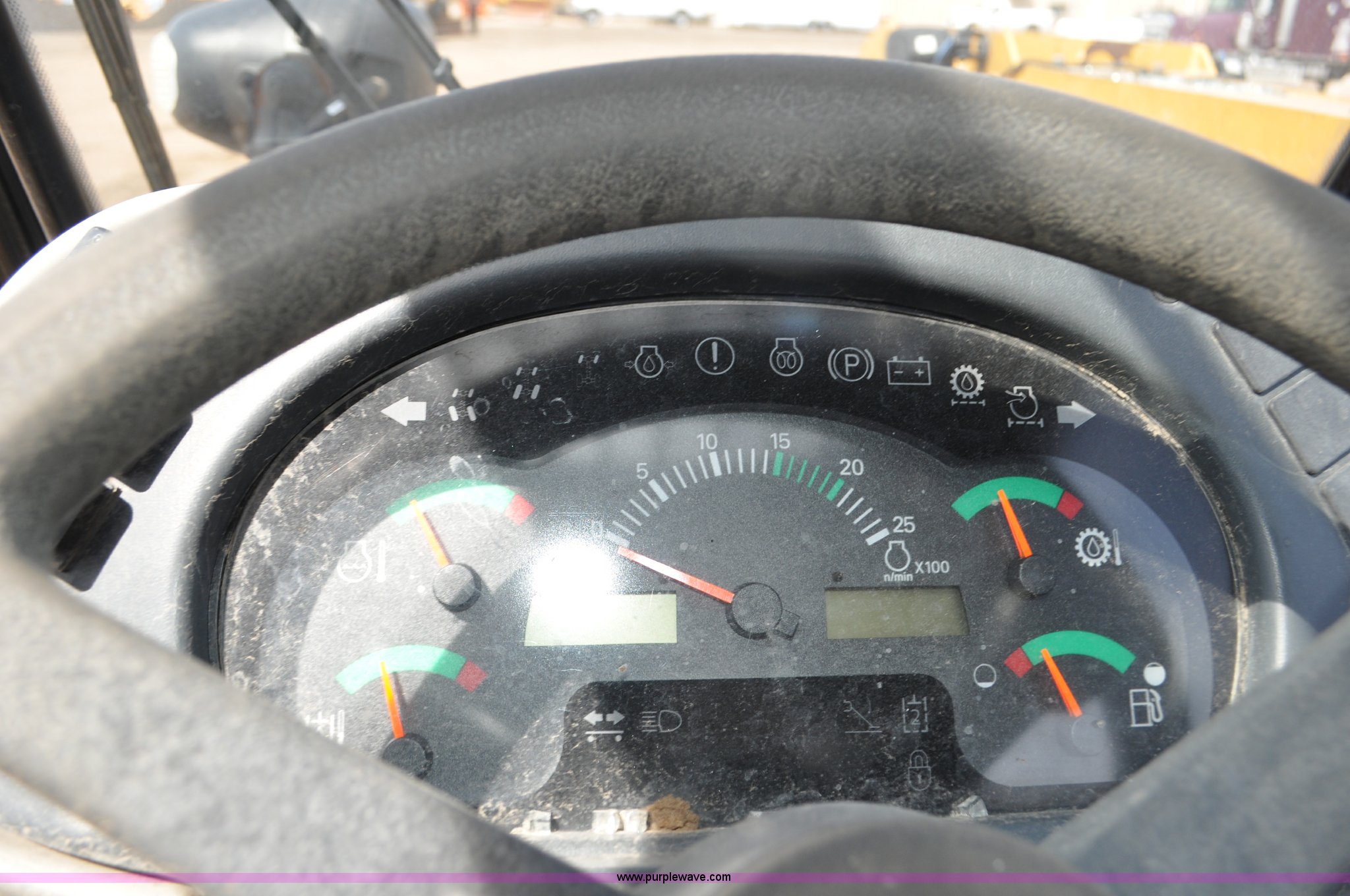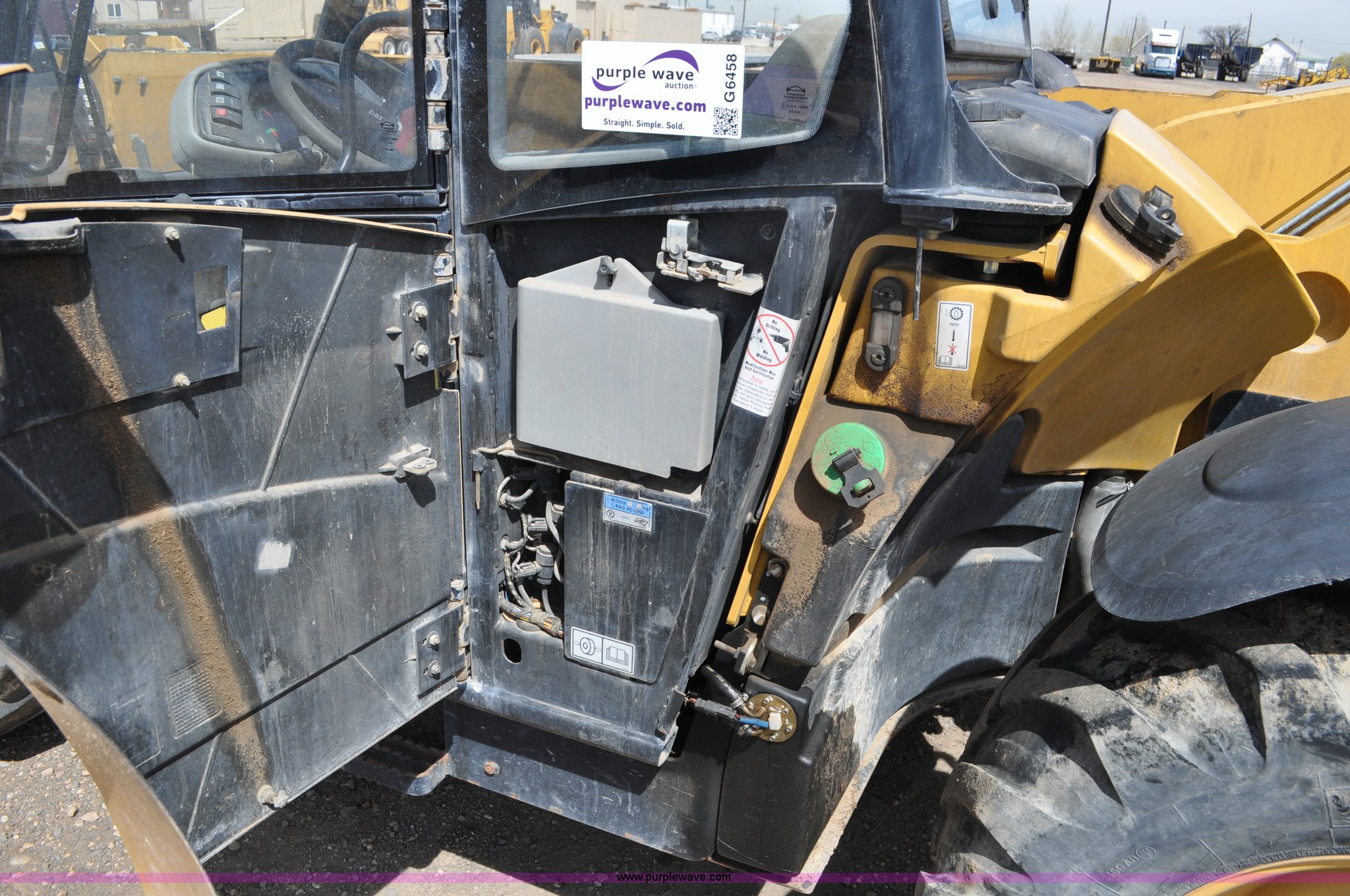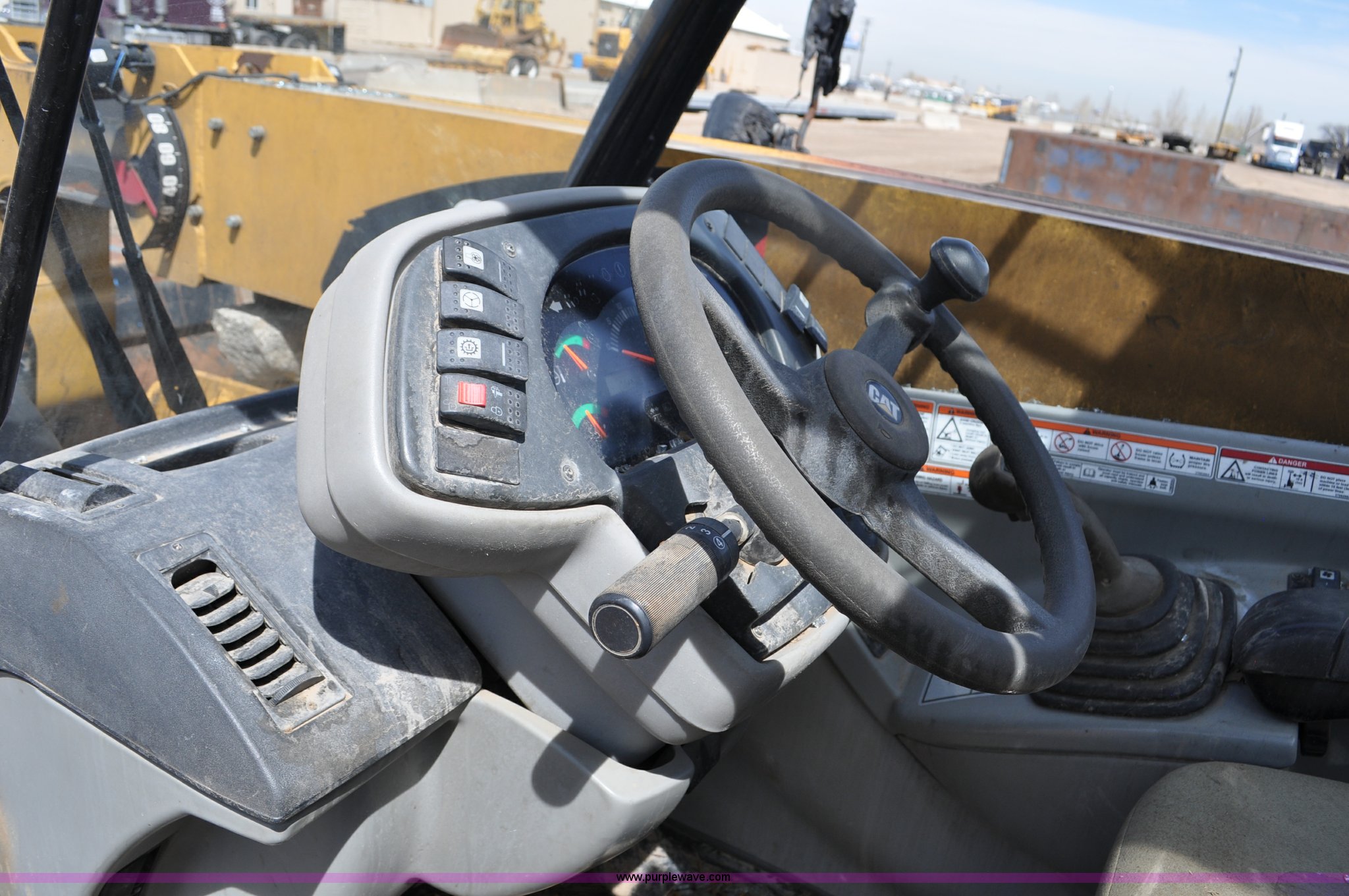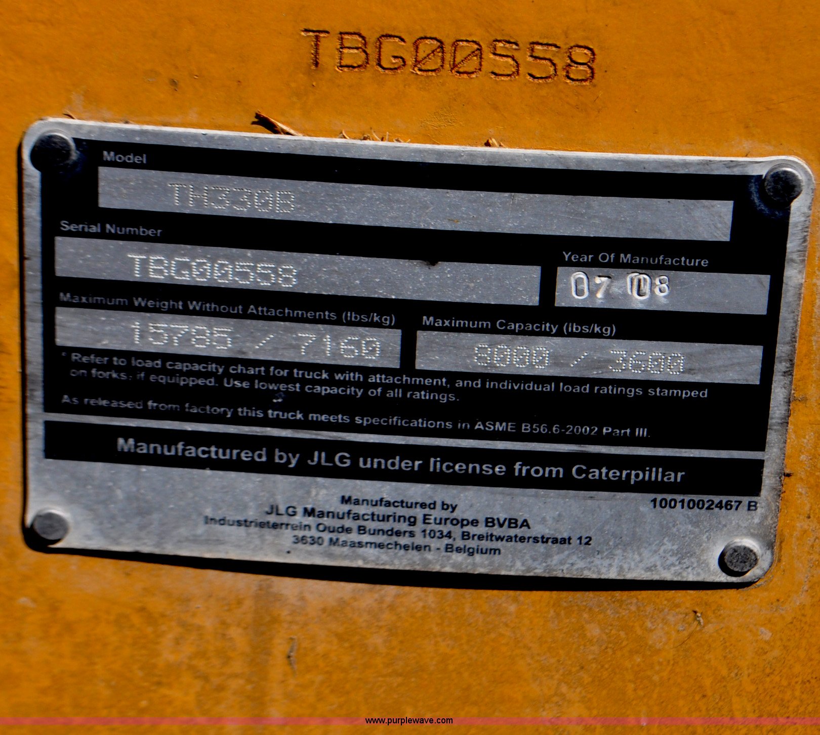 Purple Wave is selling a used Telehandler in Colorado. This item is a 2007 Caterpillar TH330B telehandler with the following: Approximately 2,000 hours, Caterpillar 3054E four cylinder diesel engine, Powershift transmission, 4F-3R gears, Four wheel drive, Locking differential, Cab, AC and heat, Air suspension seat, Crab steer, Circle steer, 7,000 lbs maximum lift capacity, 12.5' maximum reach, Single boom section, 92"W bucket, Bolt-on cutting edge, Quick attach, 160/70R24 tires, Engine burnt, Serial TBG00558