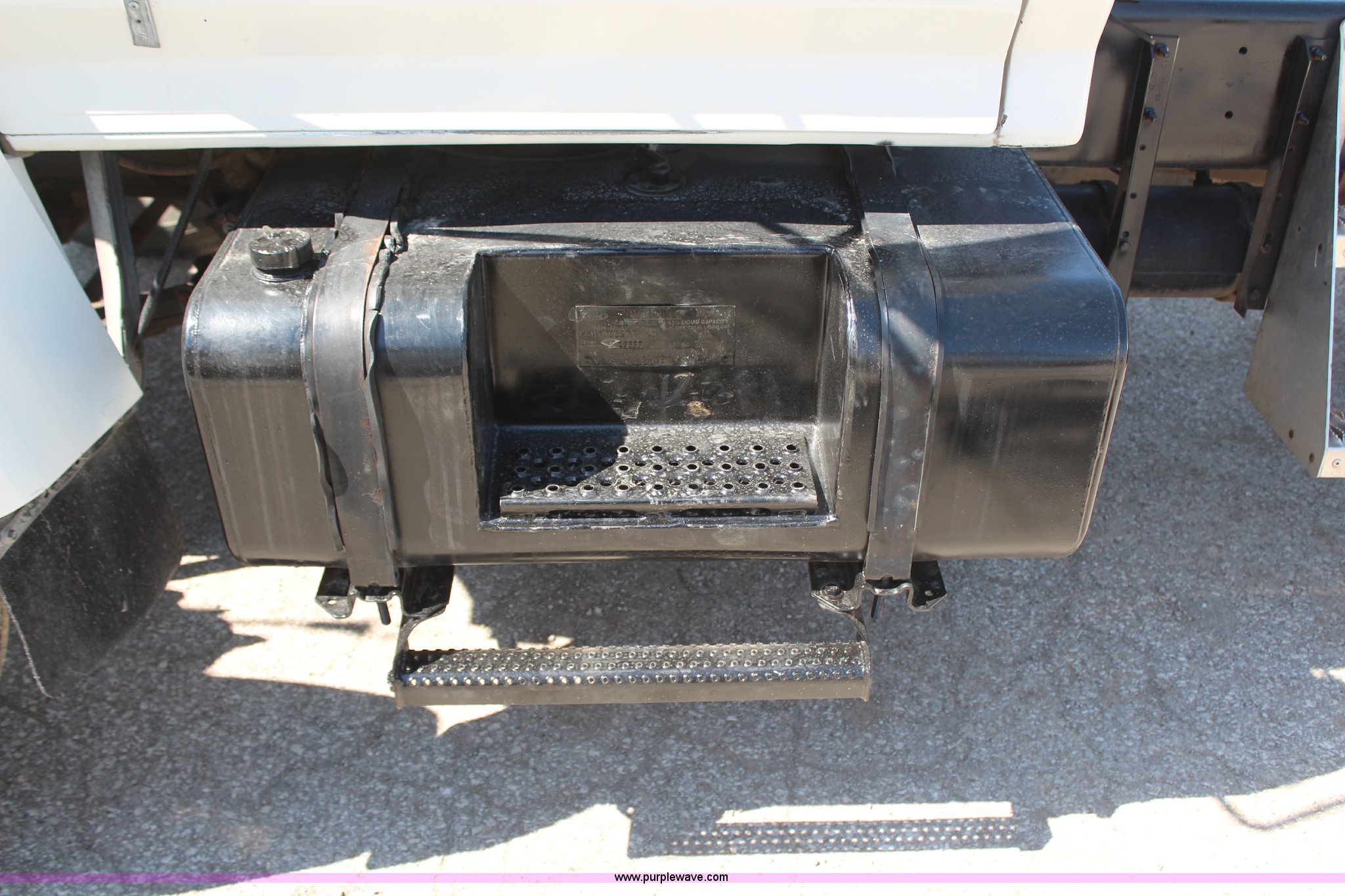 1995 Ford F800 semi truck. 56,920 miles on odometer, Cummins ISC 8.3L L6 turbo diesel engine, Road Ranger nine speed manual transmission, AC and heat, Air suspension seat, Chrome bumper, Dual 50 gallon fuel tanks, Aluminum deck plate, Stainless steel quarter fenders, Spring suspension, Air brakes, Aluminum wheels, 11R22.5 tires, GVWR 31,000 lbs, FAWR 10,000 lbs, RAWR 21,000 lbs, Seat torn. 1FTXF80EXSVA42348. 3701 E 23rd St. Lawrence, KS 66046