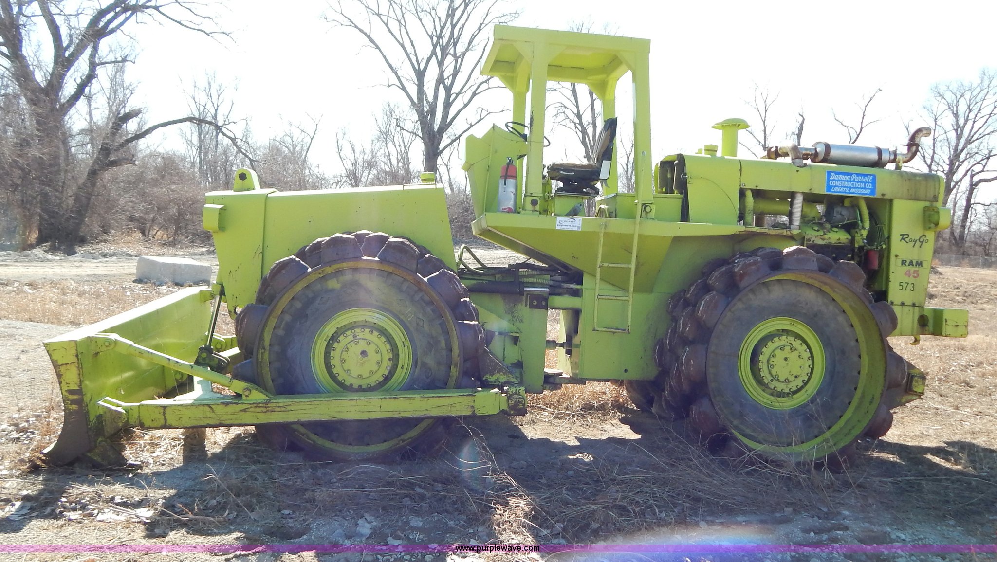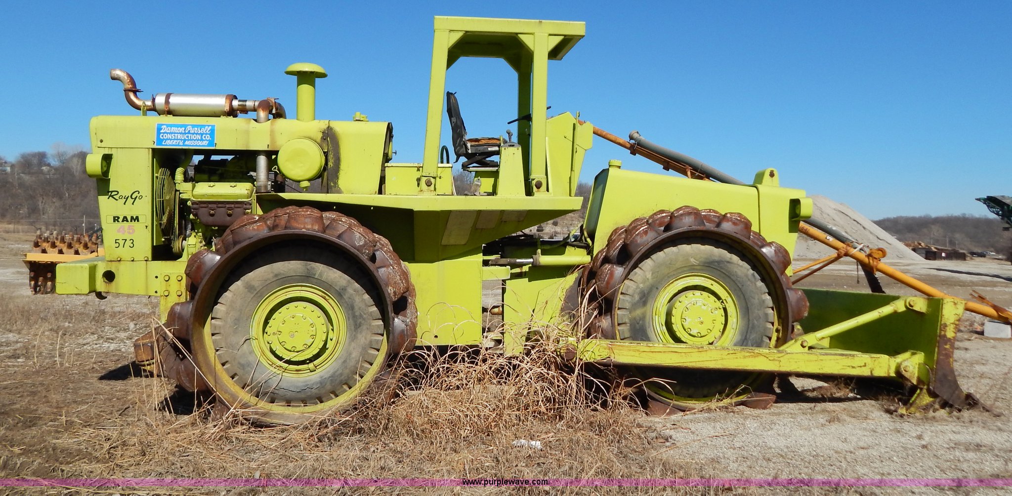 Raygo Ram 45 articulated compactor. 1,538 hours on meter, Detroit Diesel 6-V71 six cylinder diesel engine, Automatic transmission, OROPS, Light kit, 11'W push blade, 5' diameter compaction wheels 8" padfeet, Batteries need replaced, Serial 0730227, Unit# 573. Damon Pursell Construction. 6305 NW River Park Drive. Riverside, MO 64150