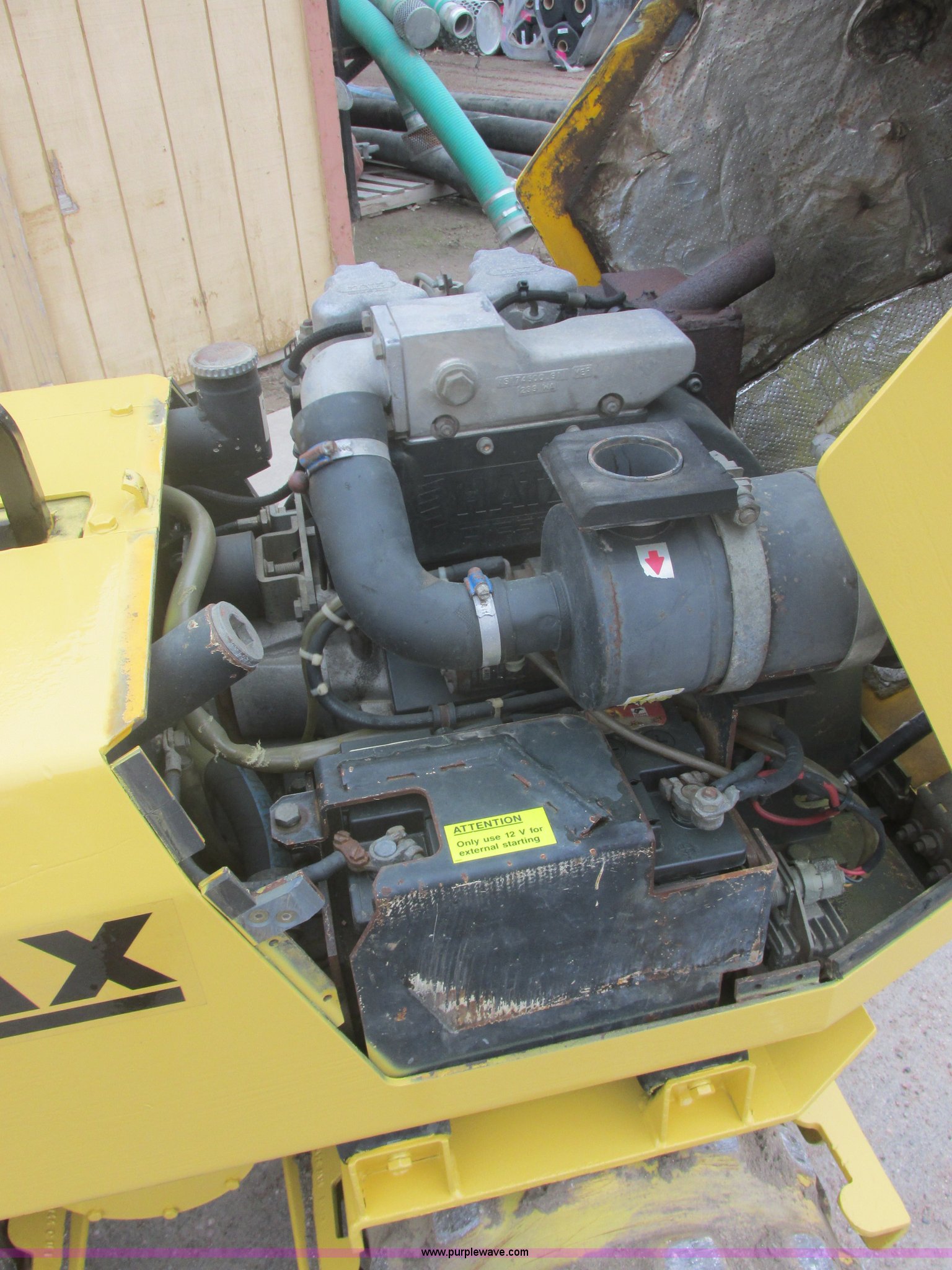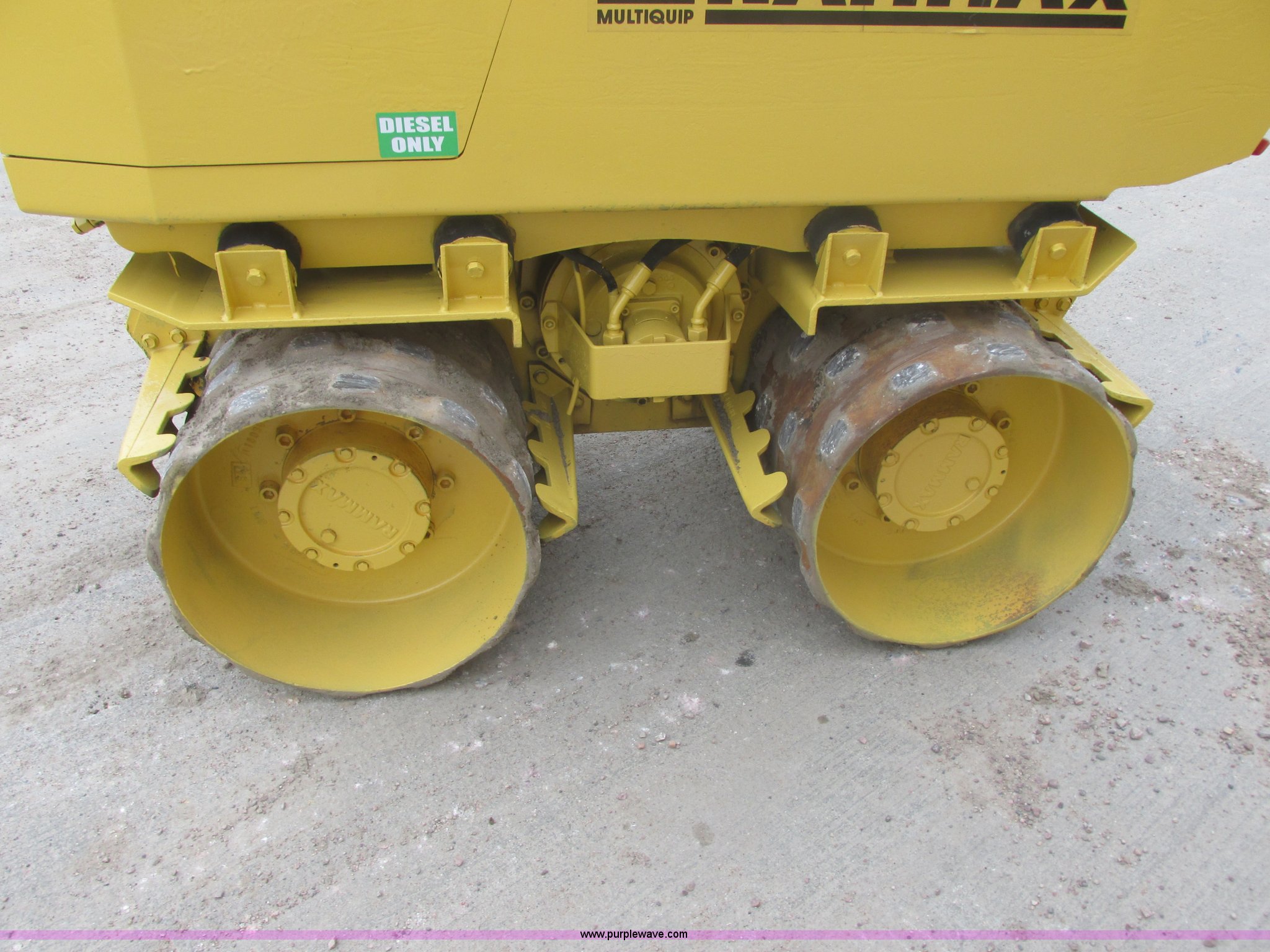 Purple Wave is selling a used Walk Behind Compactor in South Dakota. This item is a 2003 Multiquip Rammax trench compactor with the following: 374 hours on meter, Hatz two cylinder diesel engine, 18.5 HP, Electric start, 33" total width, (4) 16"W x 18" diameter roller drums, Cleaners, Top lift hook, 1,480 kg base operating weight, Type P33/24HHM, Serial 1534490