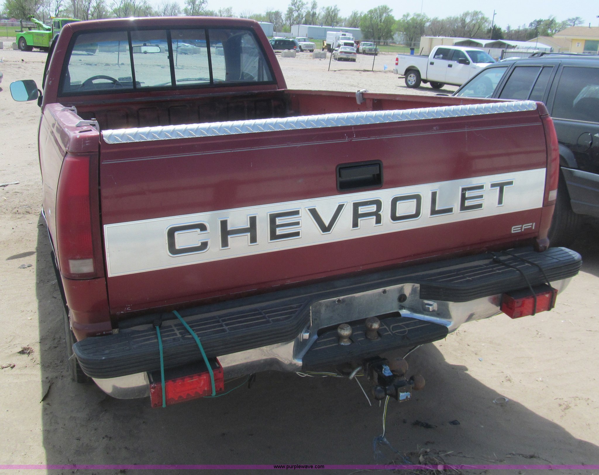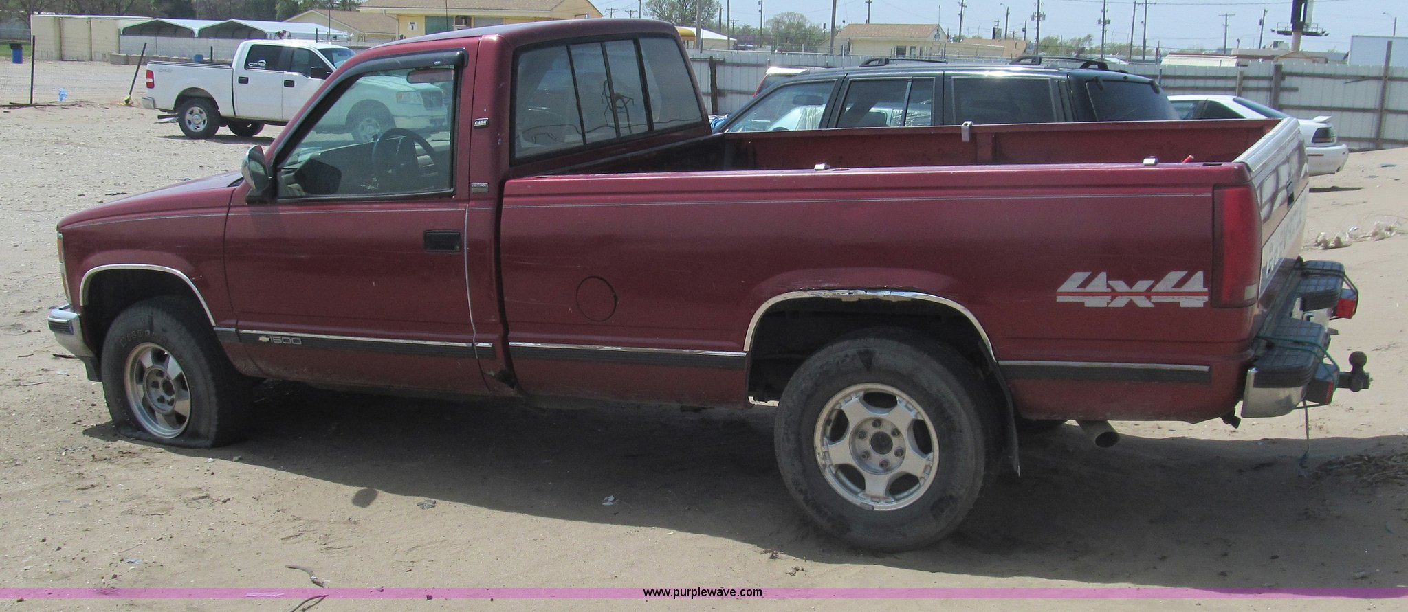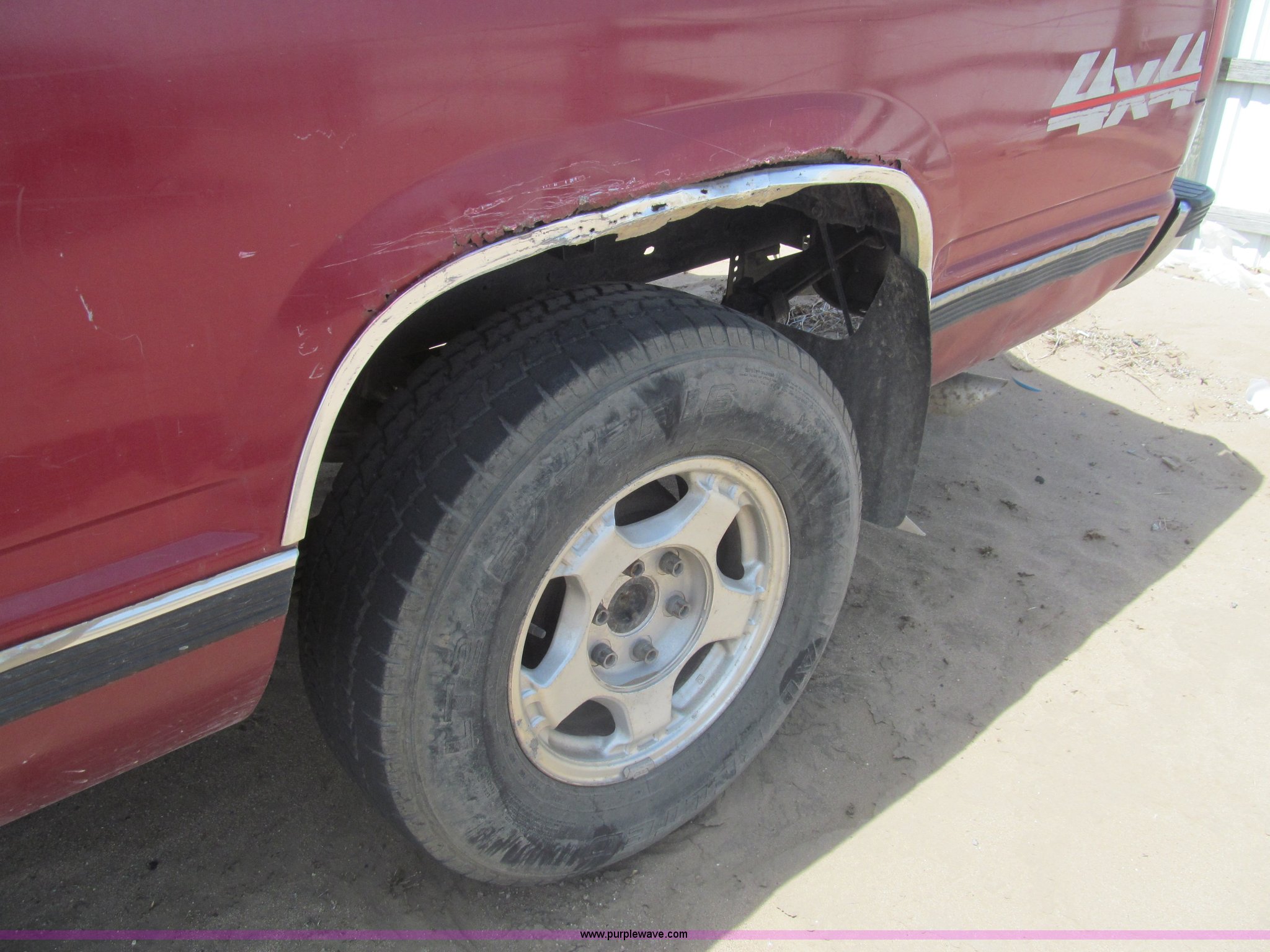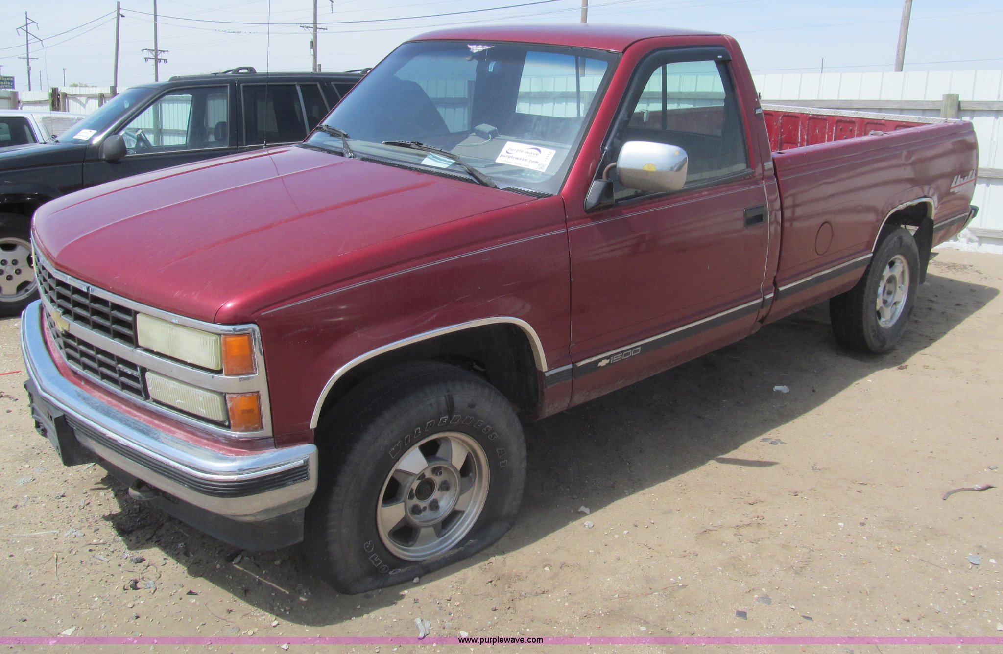 Purple Wave is selling a used Wrecked and Abandoned in Kansas. This item is a 1990 Chevrolet 1500 pickup truck with the following: 344,946 miles on odometer, 5.7L V8 OHV 16V gas engine, Automatic transmission, Four wheel drive, AC and heat, AM/FM, Power windows and locks, Cloth interior, Receiver hitch, Trailer wiring, 265/75R16 tires, One flat tire, Dents, Rust, Case# 13C54246