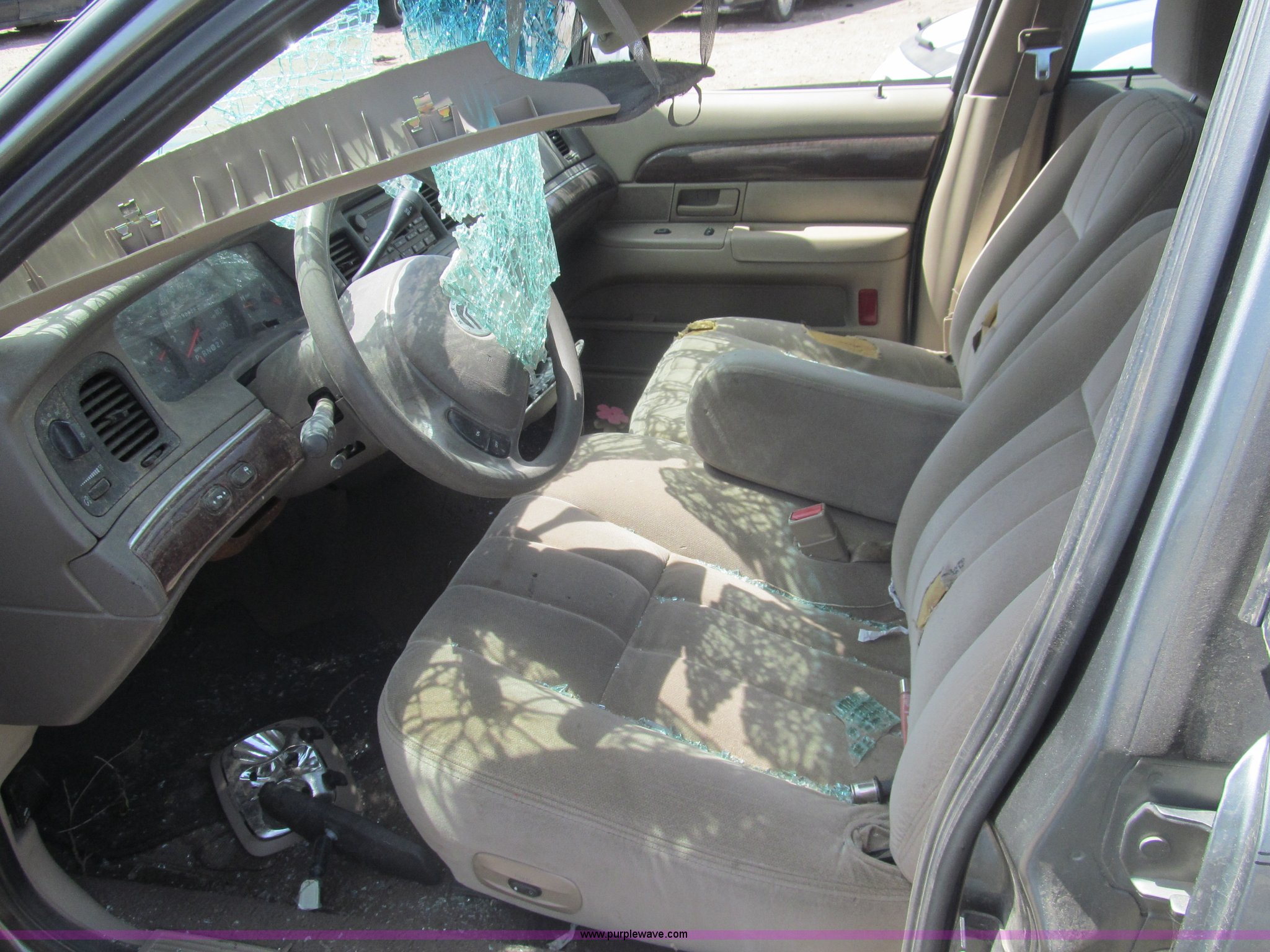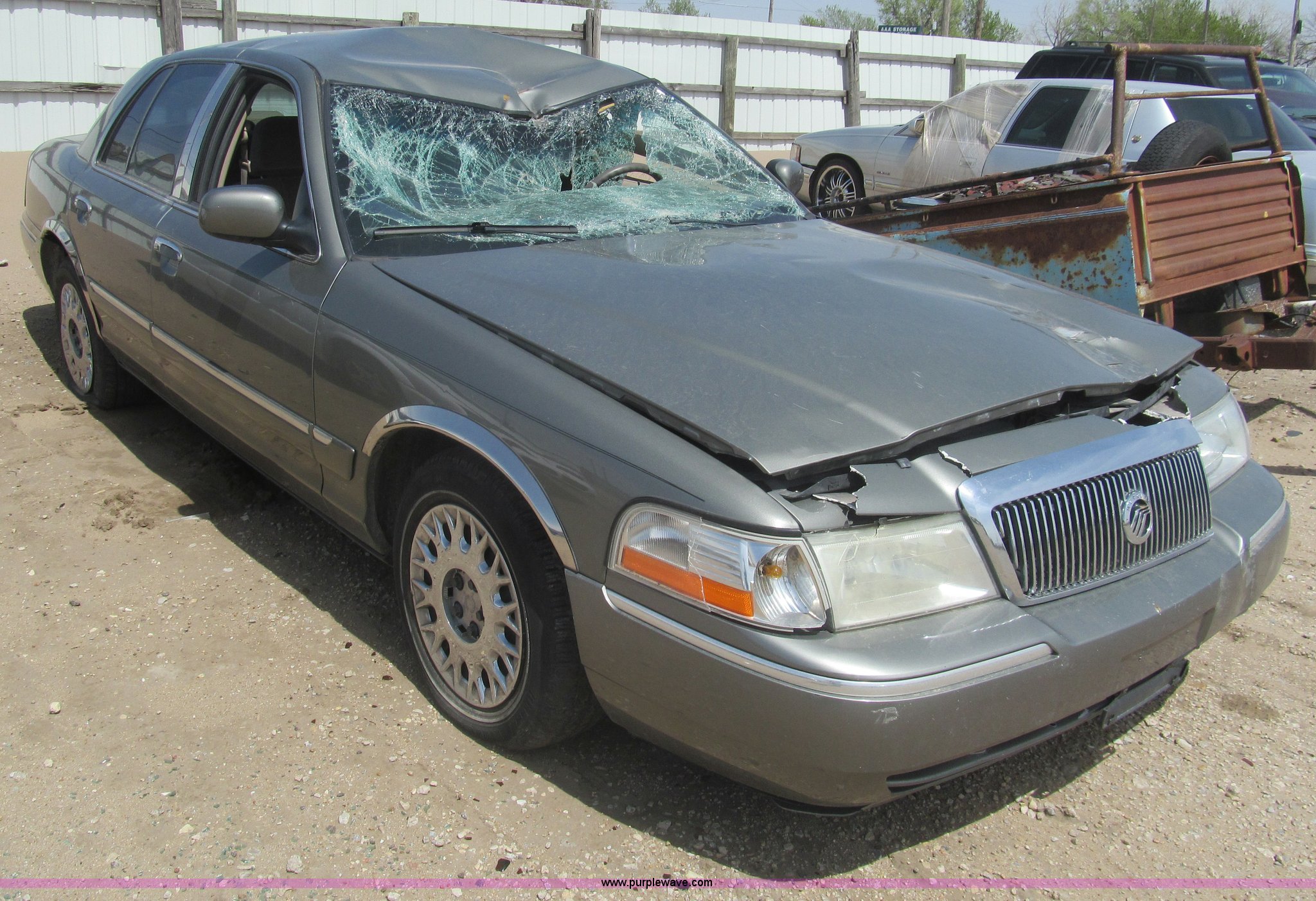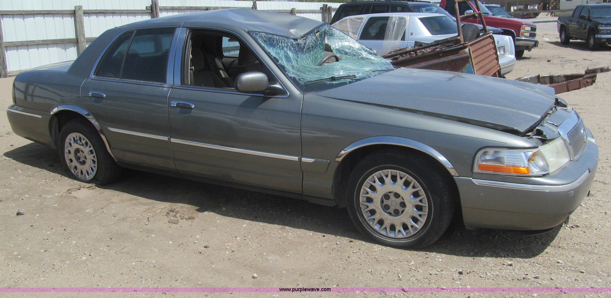 Purple Wave is selling a used Wrecked and Abandoned in Kansas. This item is a 2003 Mercury Grand Marquis GS with the following: 190,826 miles on odometer, 4.6L V8 SOHC 16V gas engine, Automatic transmission, AC and heat, Tilt, Cruise, AM/FM/cassette, Power windows, locks, mirrors, and seats, Cloth interior, 225/60R16 tires, Windshield broken, Hood and roof damaged, Case# 13C043576