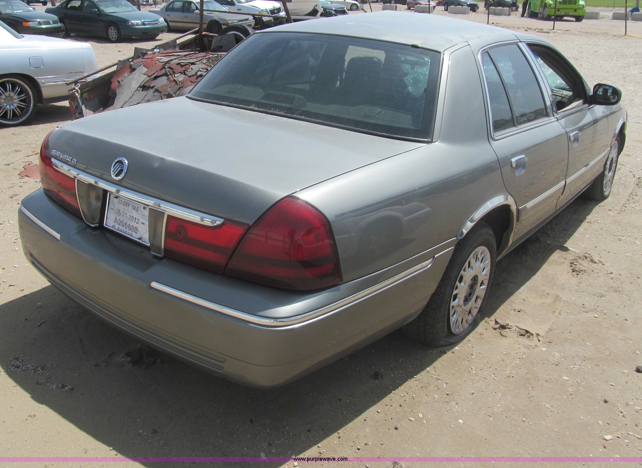 2003 Mercury Grand Marquis GS. 190,826 miles on odometer, 4.6L V8 SOHC 16V gas engine, Automatic transmission, AC and heat, Tilt, Cruise, AM/FM/cassette, Power windows, locks, mirrors, and seats, Cloth interior, 225/60R16 tires, Windshield broken, Hood and roof damaged, Case# 13C043576. Vehicle is abandoned. No additional information is available. Vehicle does not have keys unless notated otherwise in the item listing.. View City Of Wichita Terms for title acquisition and item removal requirements.. 2MEFM74W03X659934. Arrow Wrecker Service. 531 E MacArthur. Wichita, KS 67216