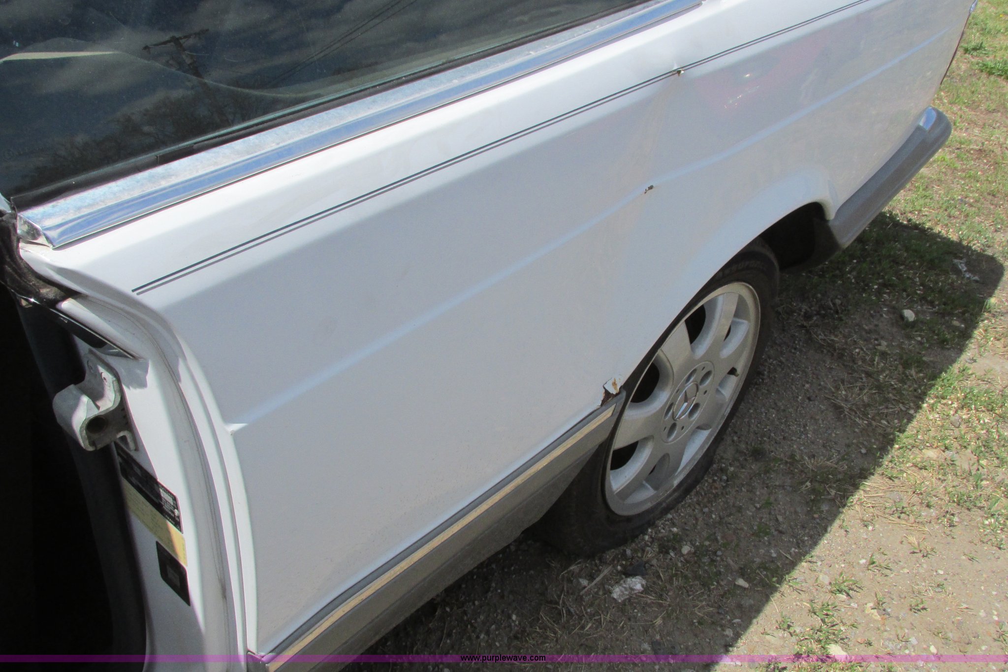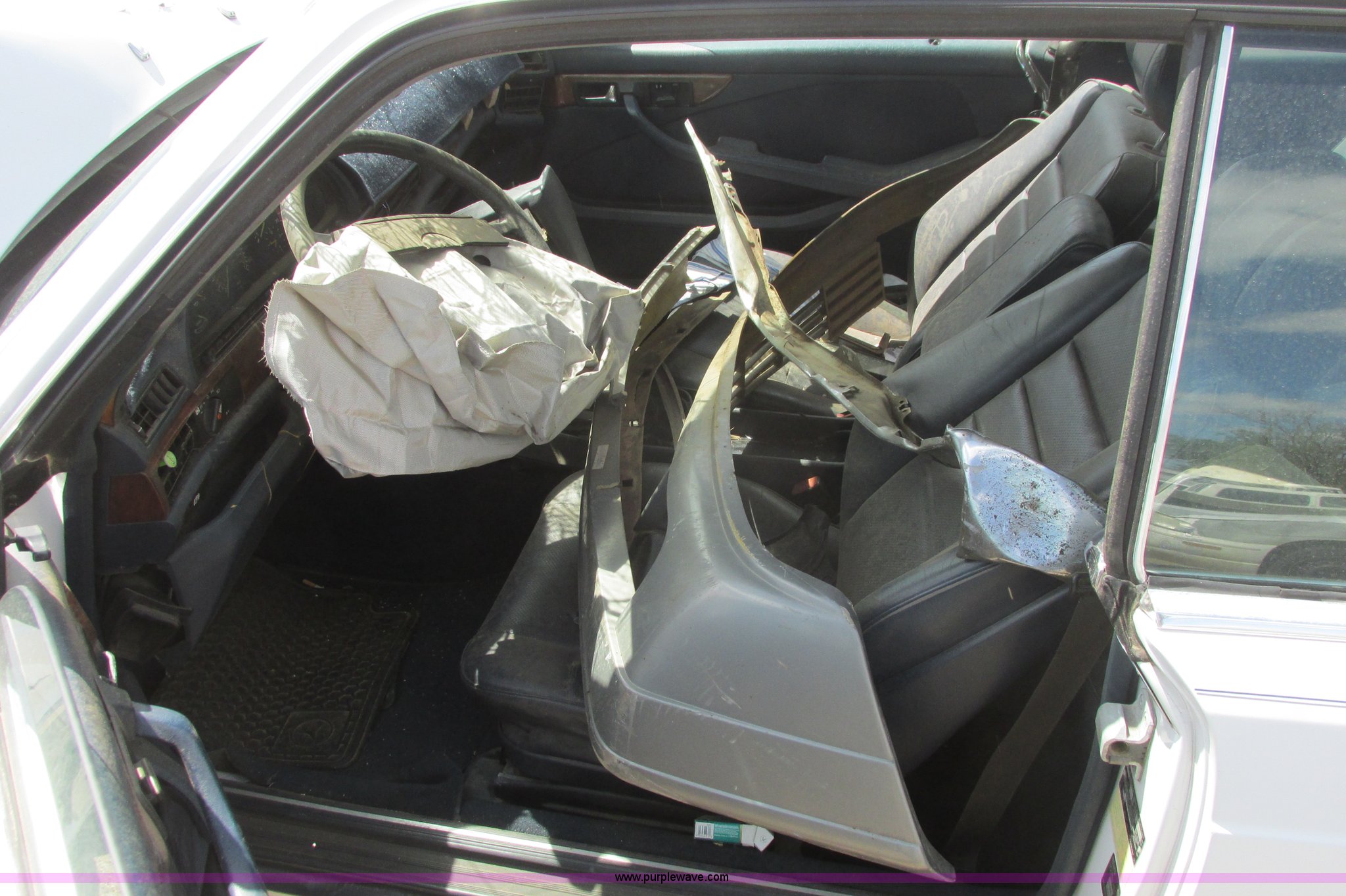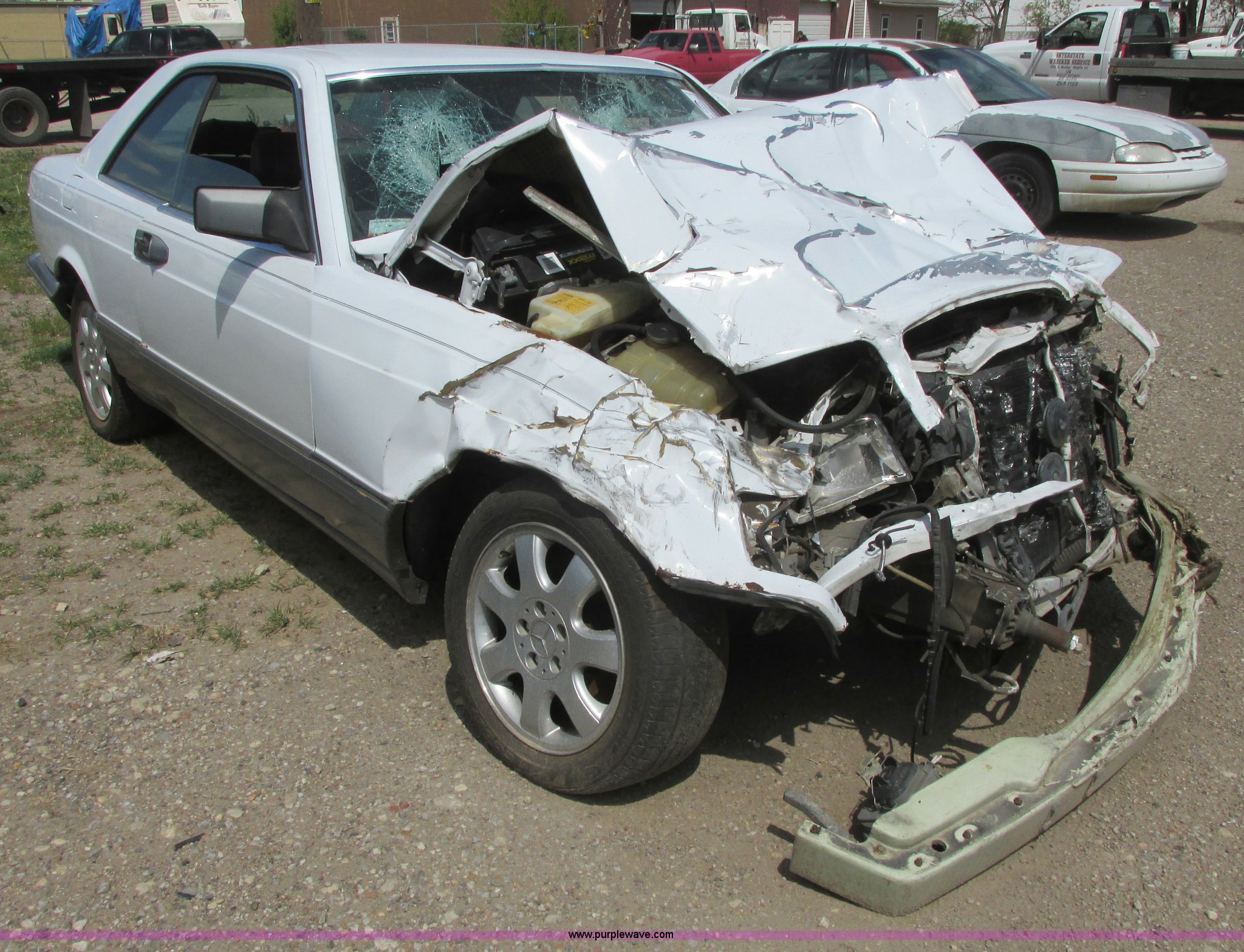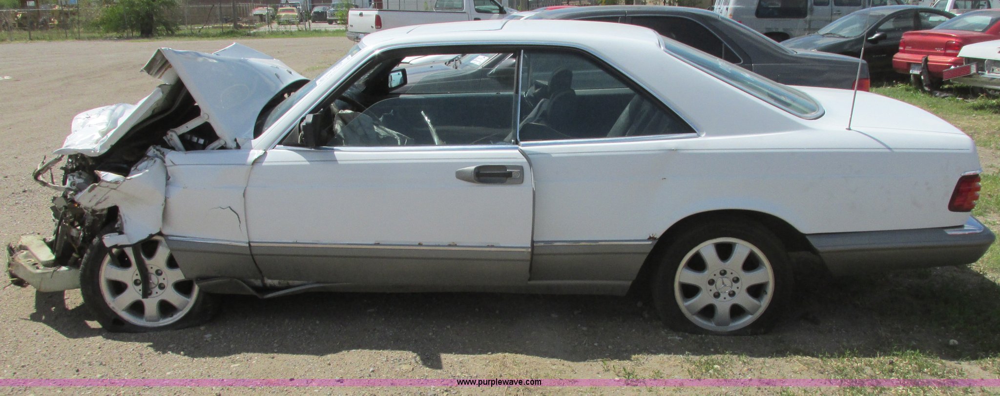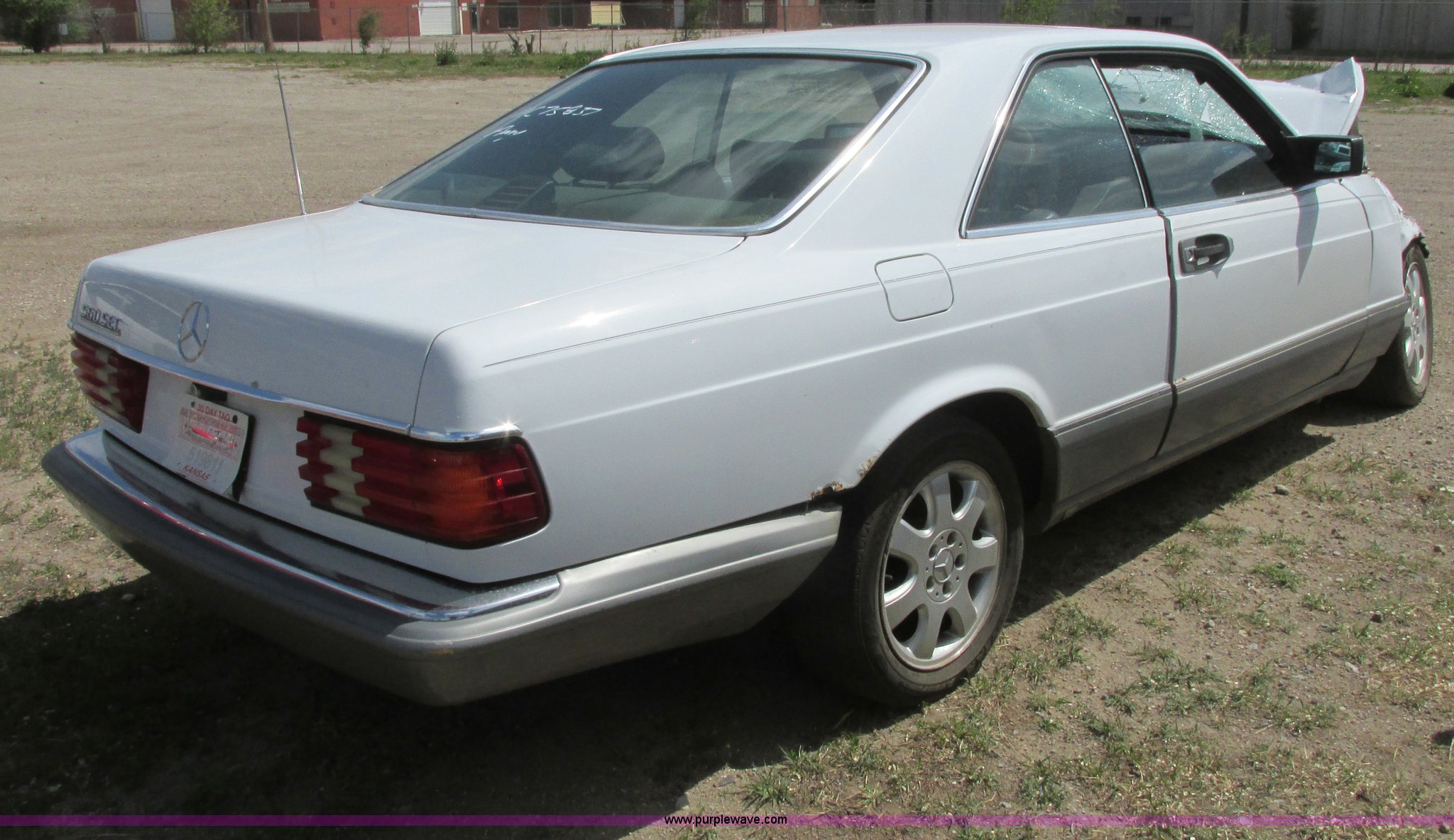 Purple Wave is selling a used Wrecked and Abandoned in Kansas. This item is a 1988 Mercedes Benz 560 SEC with the following: 269,113 miles on odometer, 5.6L V8 SOHC 16V gas engine, Automatic transmission, AC and heat, AM/FM/CD, Power windows, locks, and seats, Leather interior, Sunroof, 205/55R16 tires, Key is stuck in the ignition, Major front end collision damage, Interior damaged, Windshield broken, Structural damage, Rust, Keys, Case# 11C75837