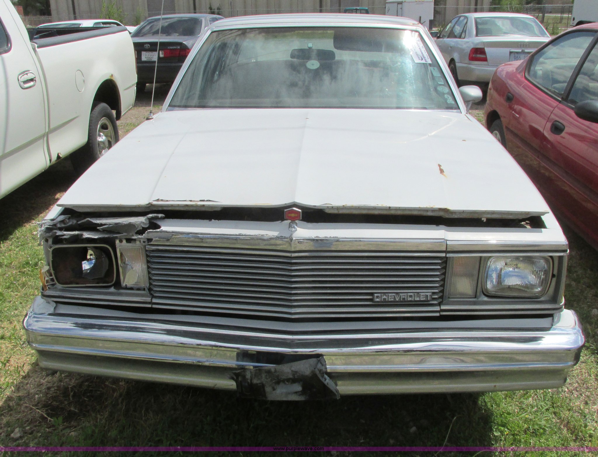 Purple Wave is selling a used Wrecked and Abandoned in Kansas. This item is a 1981 Chevrolet Malibu Classic with the following: 84,404 miles on odometer, 3.8L V6 OHV 12V gas engine, Automatic transmission, AC and heat, Aftermarket AM/FM/CD, Manual windows, Cloth interior, P195/75R14 tires, Major collision damage, Left taillight damaged, Trunk lock missing, Right front door lock drilled out, Right front headlight broken, Dash cracked, Rust, Interior/exterior cosmetic damage, Case# 14C11591