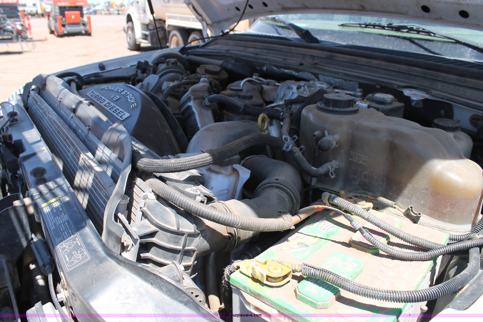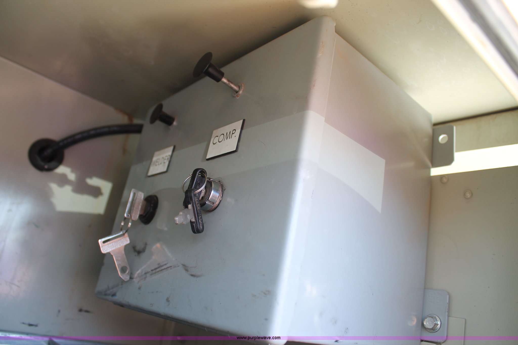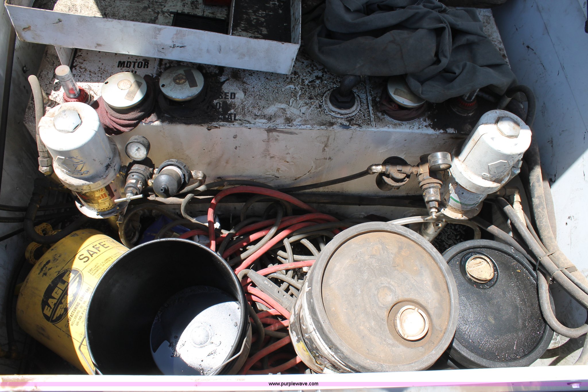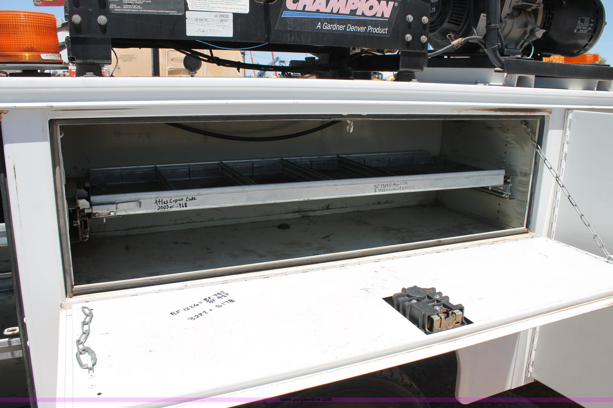 Purple Wave is selling a used Service Truck in Texas. This item is a 2008 Ford F550 utility truck with the following: 148,126 actual miles, 6.4L V8 OHV 32V turbo diesel engine, 325 HP, Automatic transmission, AC and heat, Tilt, Cruise, AM/FM/CD, Manual windows and locks, Vinyl interior, Front and rear work lights, Amber strobe lighting, Utility bed, (8) side compartments, Toolbox, Sliding drawers, RKI box, Miller BlueStar 185 welder/generator, 71.2 hours, Electric start, 6,000 watt, Champion air compressor, Honda GX270 engine, Electric start, Stellar 3315 crane, 3,200 lbs capacity, Current inspection valid through November 2014, Serial KCW07770, Oil storage tank, Plumbed with hose, reels, and pump, Filter drain rack, Air hose and reel, Battery jump plug mounted on front, Rear mounted vise, Receiver hitch, Trailer wiring, 225/70R19.5 tires, Engine needs repaired, EIN 739486RA