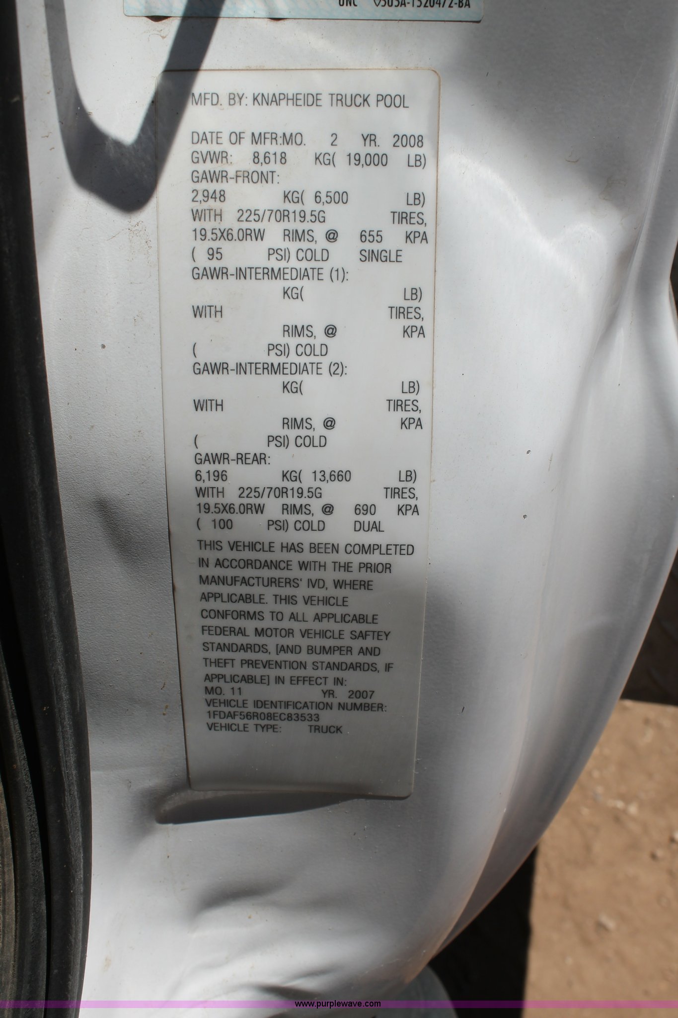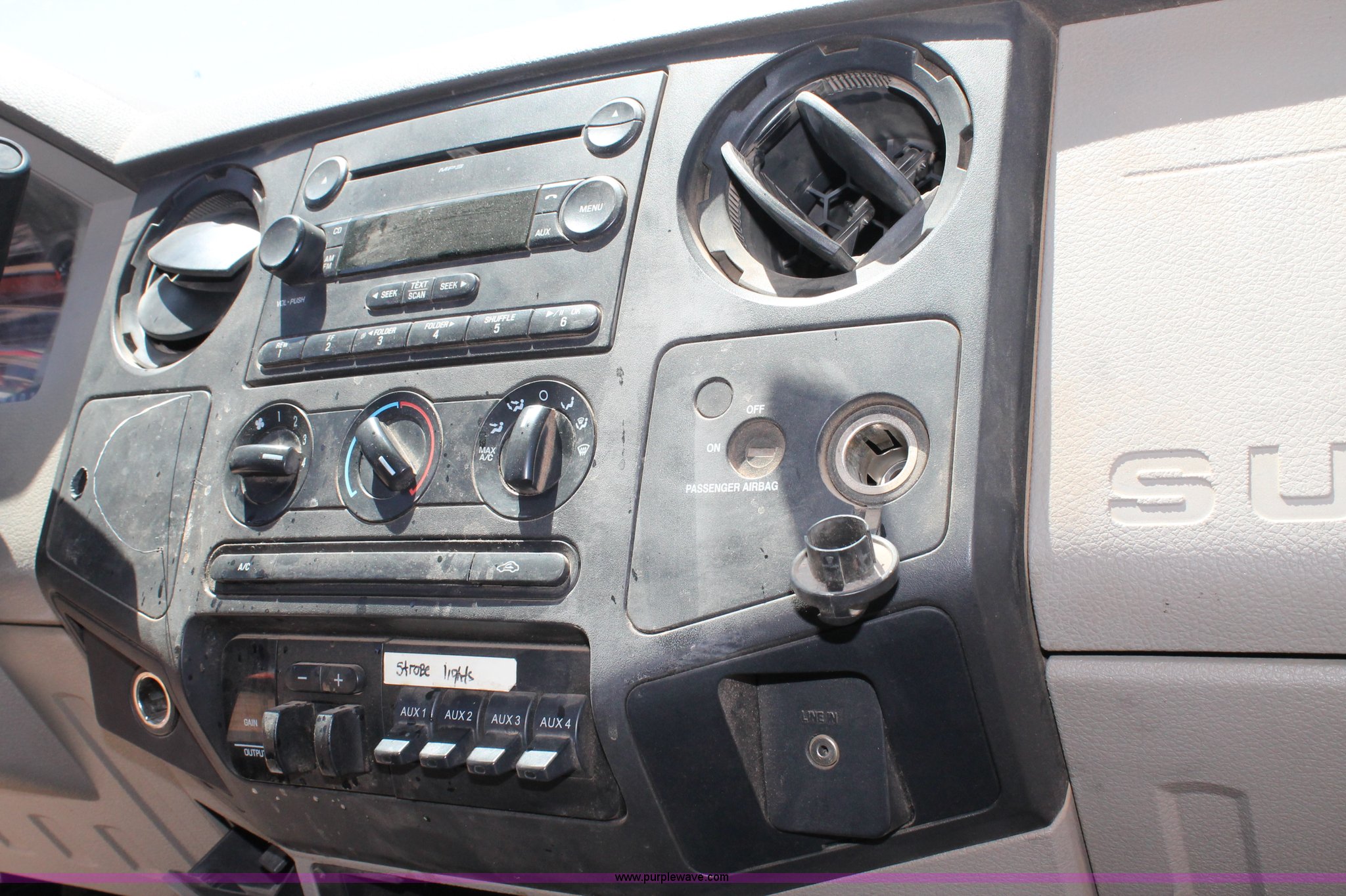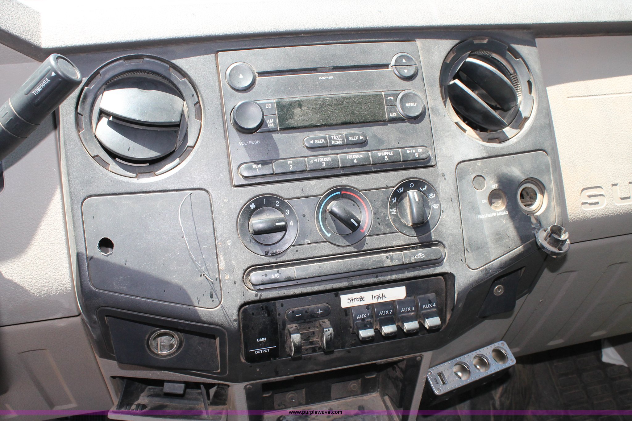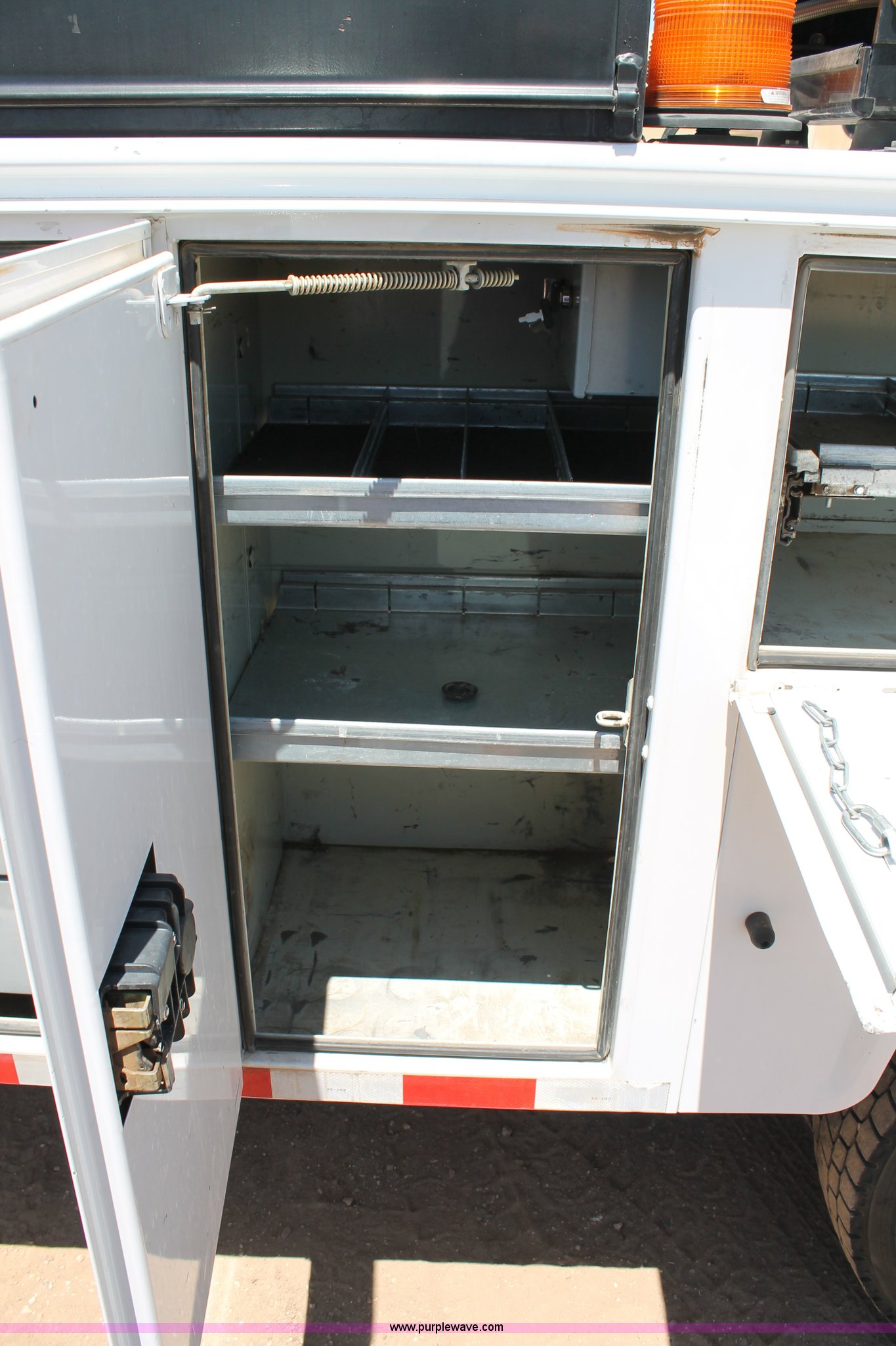 Purple Wave is selling a used Service Truck in Texas. This item is a 2008 Ford F550 utility truck with the following: 148,126 actual miles, 6.4L V8 OHV 32V turbo diesel engine, 325 HP, Automatic transmission, AC and heat, Tilt, Cruise, AM/FM/CD, Manual windows and locks, Vinyl interior, Front and rear work lights, Amber strobe lighting, Utility bed, (8) side compartments, Toolbox, Sliding drawers, RKI box, Miller BlueStar 185 welder/generator, 71.2 hours, Electric start, 6,000 watt, Champion air compressor, Honda GX270 engine, Electric start, Stellar 3315 crane, 3,200 lbs capacity, Current inspection valid through November 2014, Serial KCW07770, Oil storage tank, Plumbed with hose, reels, and pump, Filter drain rack, Air hose and reel, Battery jump plug mounted on front, Rear mounted vise, Receiver hitch, Trailer wiring, 225/70R19.5 tires, Engine needs repaired, EIN 739486RA