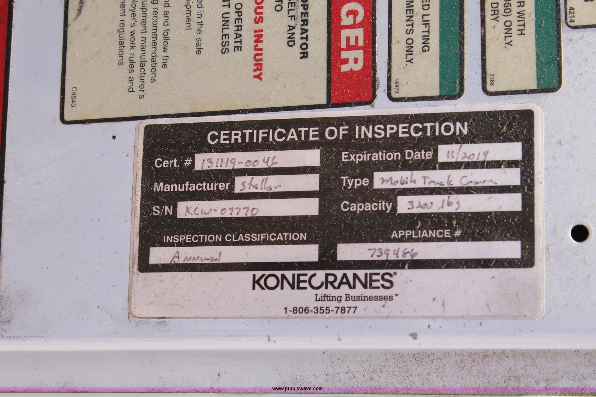 • Current inspection valid through November 2014