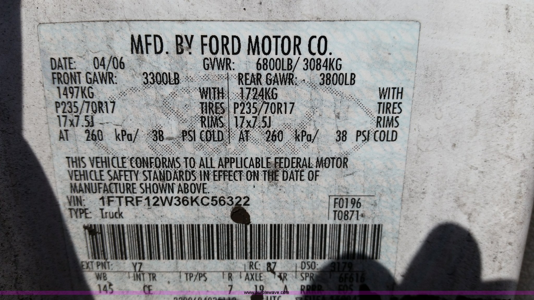 2006 Ford F150 XL pickup truck. Unknown miles on odometer, 4.6L V8 SOHC 16V gas engine, Automatic transmission, AC and heat, Tilt, AM/FM, Manual windows and locks, Cloth interior, Bed liner, Long bed, Receiver hitch, Trailer wiring, LT245/70R17 tires, Interior/exterior cosmetic damage, Damage to passenger door, Transmission and tail shaft issues, EIN 995114. View item removal requirement and like-kind exchange information. 1FTRF12W36KC56322. United Rentals - East Chicago. 300 W Chicago Ave. East Chicago, IN 46312