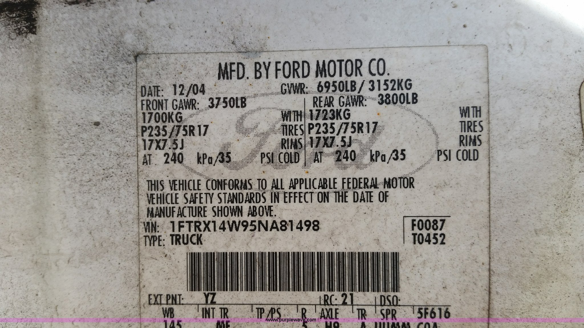 2005 Ford F150 XLT SuperCab pickup truck. 181,392 miles on odometer, 4.6L V8 SOHC 16V gas engine, Automatic transmission, Four wheel drive, AC and heat, Tilt, Cruise, AM/FM/CD, Power windows, locks, and mirrors, Cloth interior, Spray-in bed liner, Receiver hitch, Trailer wiring, P265/70R17 tires, Torn driver's seat, Grill broken, Left front wheel bearing needs replaced, Driver's door sprung, EIN 539970RA. View item removal requirement and like-kind exchange information. 1FTRX14W95NA81498. United Rentals - Channahon. 22634 S Frontage Rd West. Channahon, IL 60410