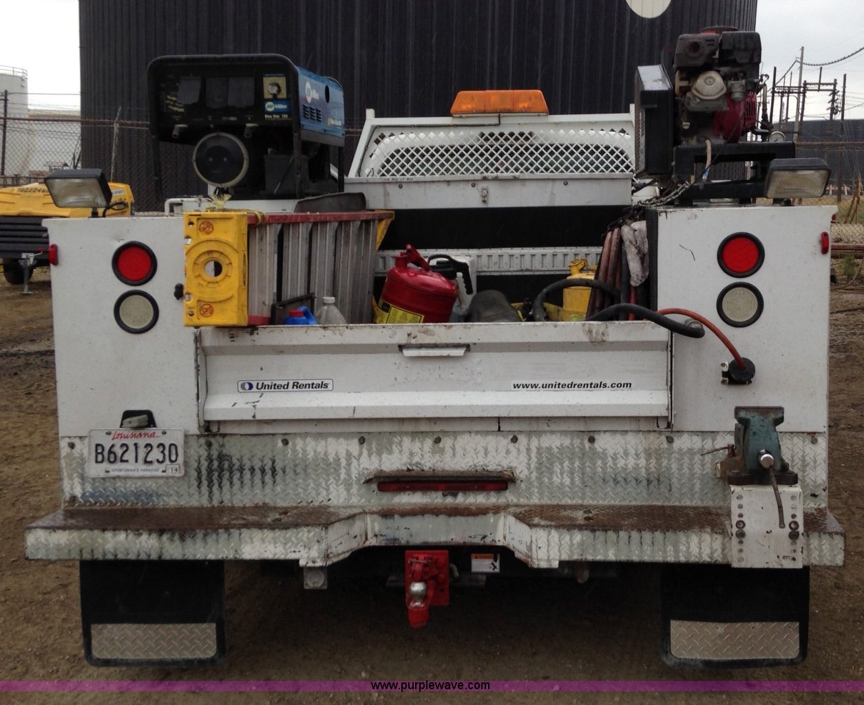 2008 Ford F350 Super Duty XL service truck. 55,194 miles on odometer, 6.4L V8 OHV 32V turbo diesel engine, Automatic transmission, AC and heat, Tilt, AM/FM/CD, Manual windows and locks, Vinyl interior, Running boards, Auxiliary switches, Front tow hooks, Front auxiliary power outlet, Work lights, Knapheide 9' utility bed (6) storage compartments, Amber light bar, American Eagle tool case, Mounted vise, Miller BlueStar 185 generator/welder Kohler Welder 12.75 HP gas engine, 6,000 watt generator, CC/DC welder, (4) 120V outlets, 240V outlet, Champion air compressor Honda 9.0 HP gas engine, 175 max psi , Hose, reel, and nozzle assembly, Graco oil, lube, and grease system Motor, hydraulic, and recovery reservoir, Graco Fireball pumps, Hose, reel, and nozzle assembly, Pintle hitch, Receiver hitch, Trailer wiring, LT245/75R17 tires, Filters and tools not included, Minor oil leak in engine, EIN 710338RA. View item removal requirement and like-kind exchange information. 1FDWF36R88EB86199. United Rentals - Beaumont. 1795 Burt St (Exxon Refinery). Beaumont, TX 77701
